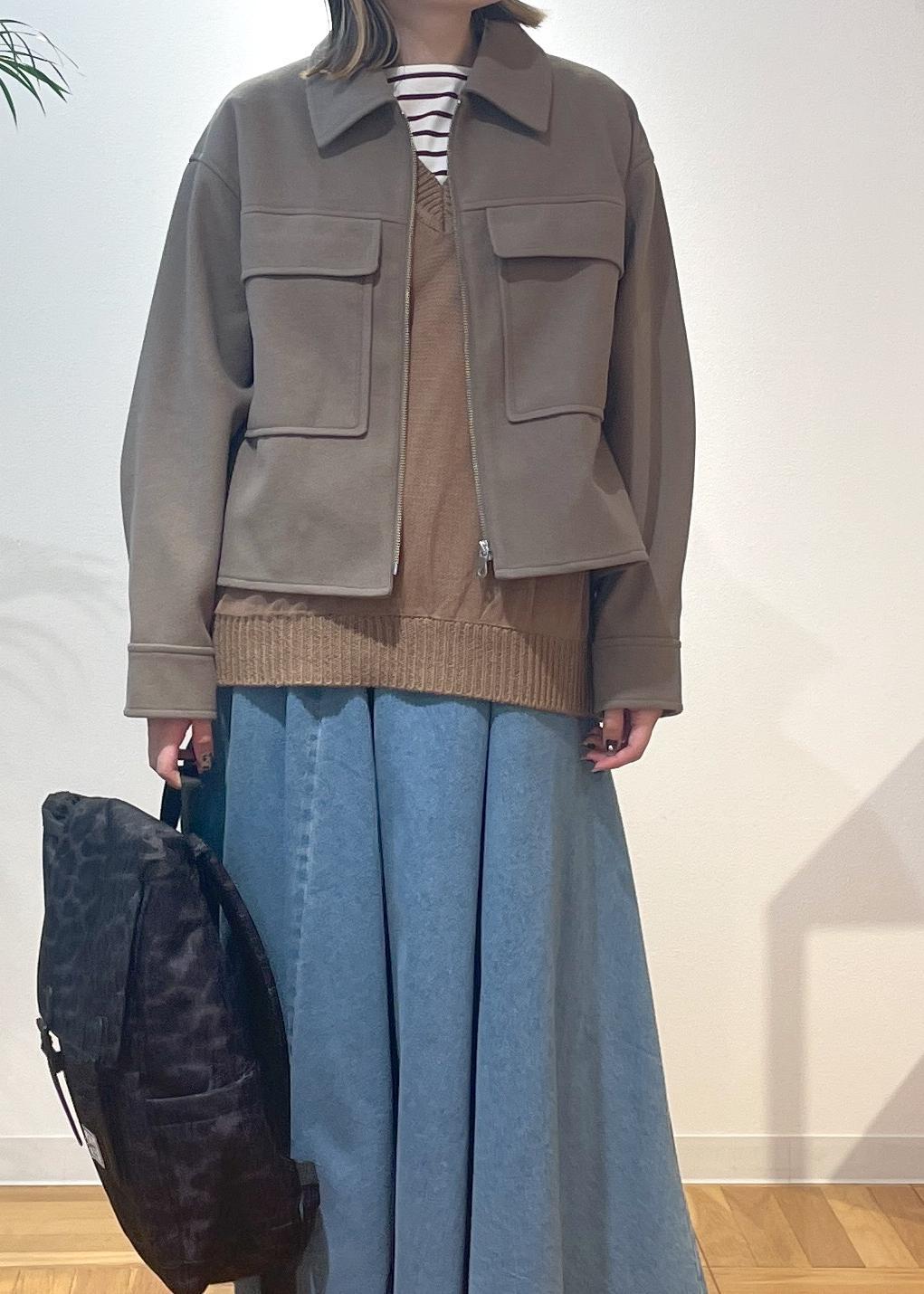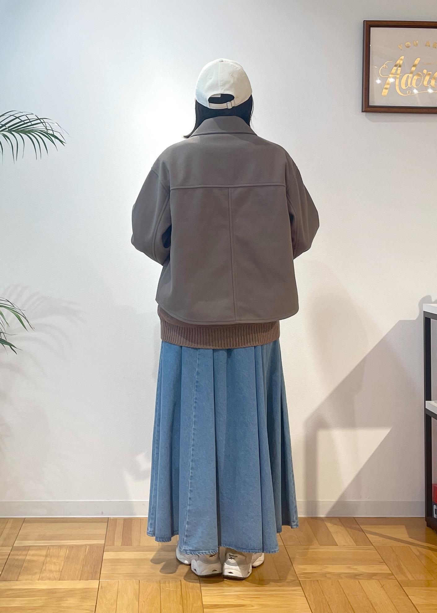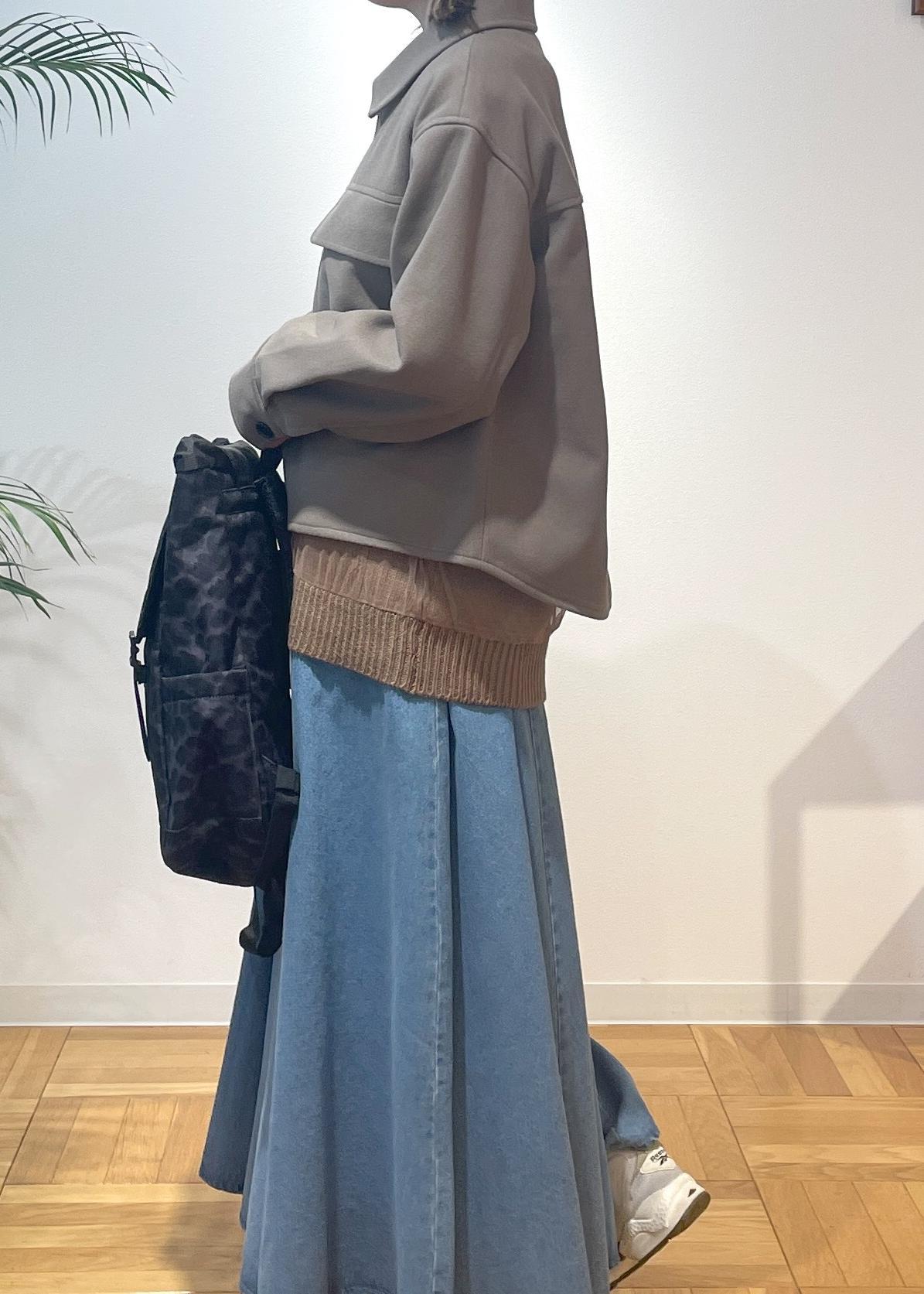 中に分厚めのニットを合わせても、もたつきなく羽織っていただけます◎ -