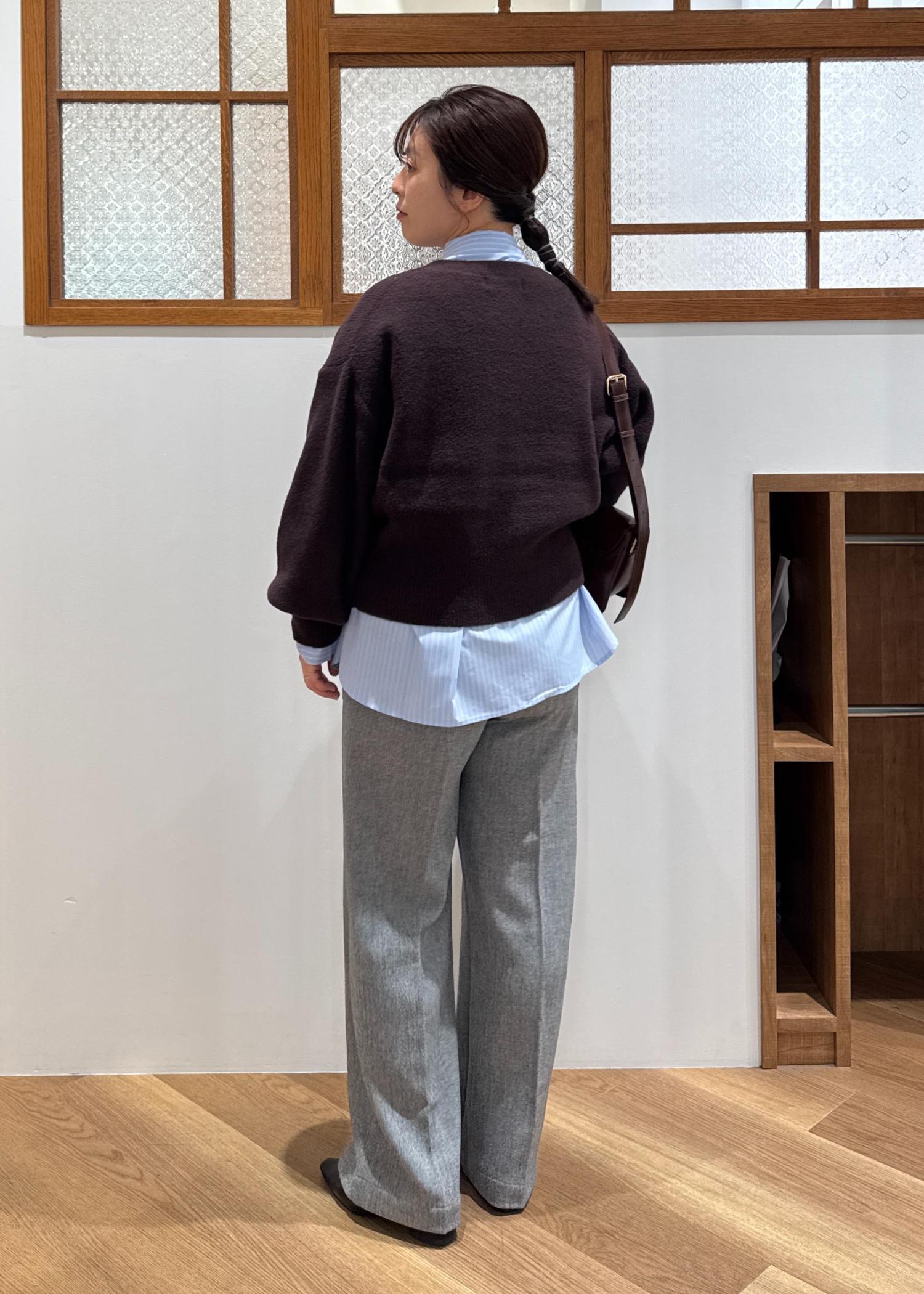 スフレカーデはふわっとしたファーのような表情が大人カジュアルにもきれいさあるスタイリングにも相性◎