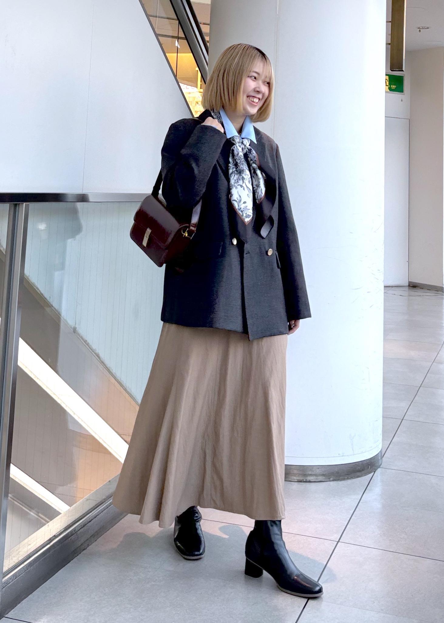 ヒップにかかるくらいの丈感なので、オフィスにはもちろん、普段使いでもかっちりしすぎず着ていただけます。 -