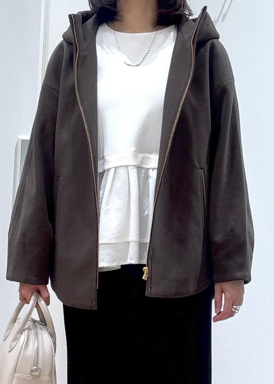 ROPÉ PICNICジャージーメルトンシリーズ ジップアップフーデッドコート/無地・チェック/リンクコーデブラウン / F¥10,989レビューしっかりと厚さがありますが、とても軽く着られる素材です。