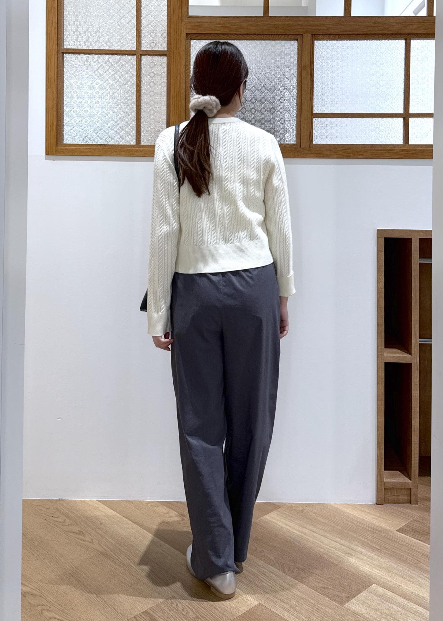 パンツでもスカートでもバランスの取りやすい丈感でサッと羽織るのにも最適です。