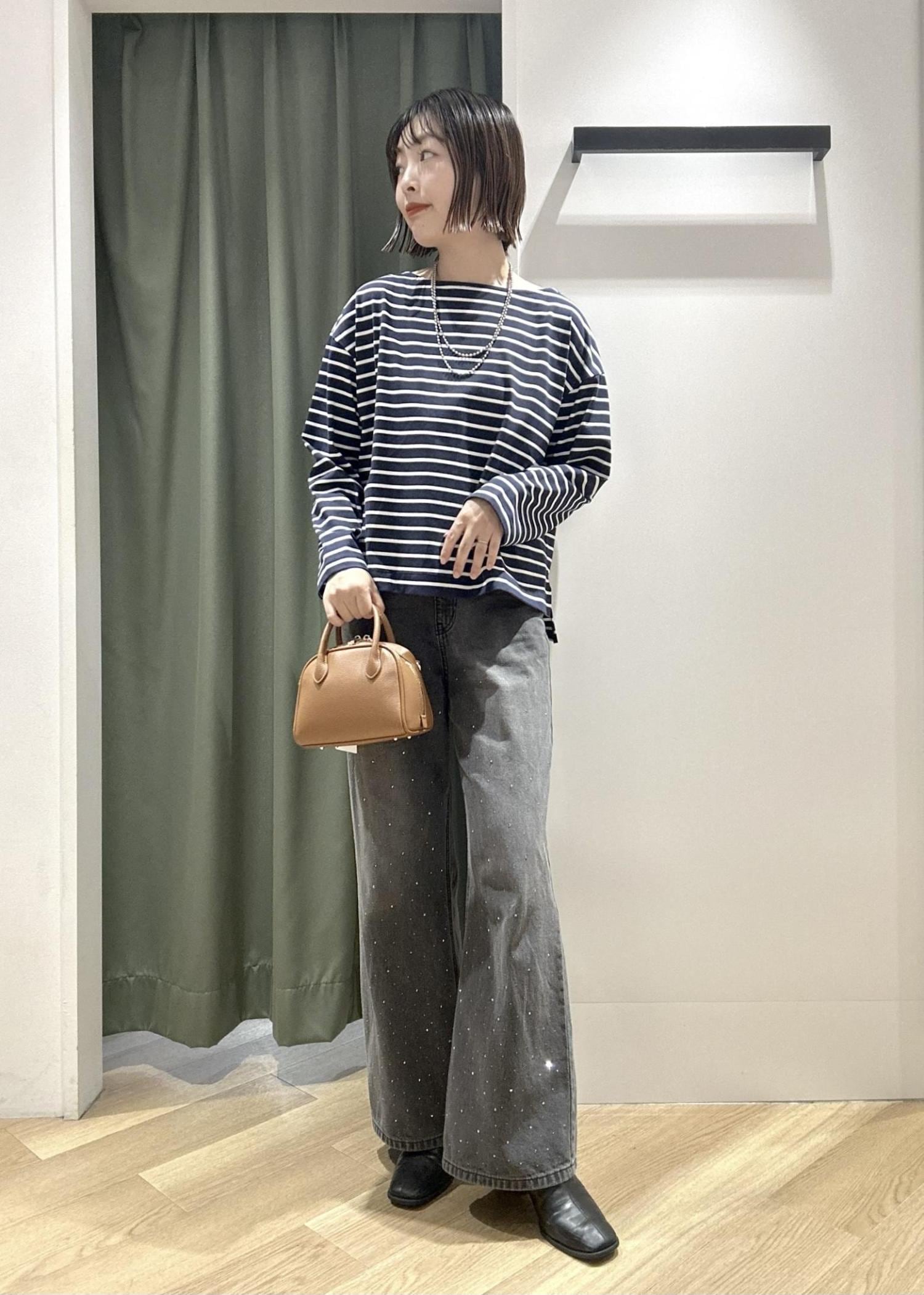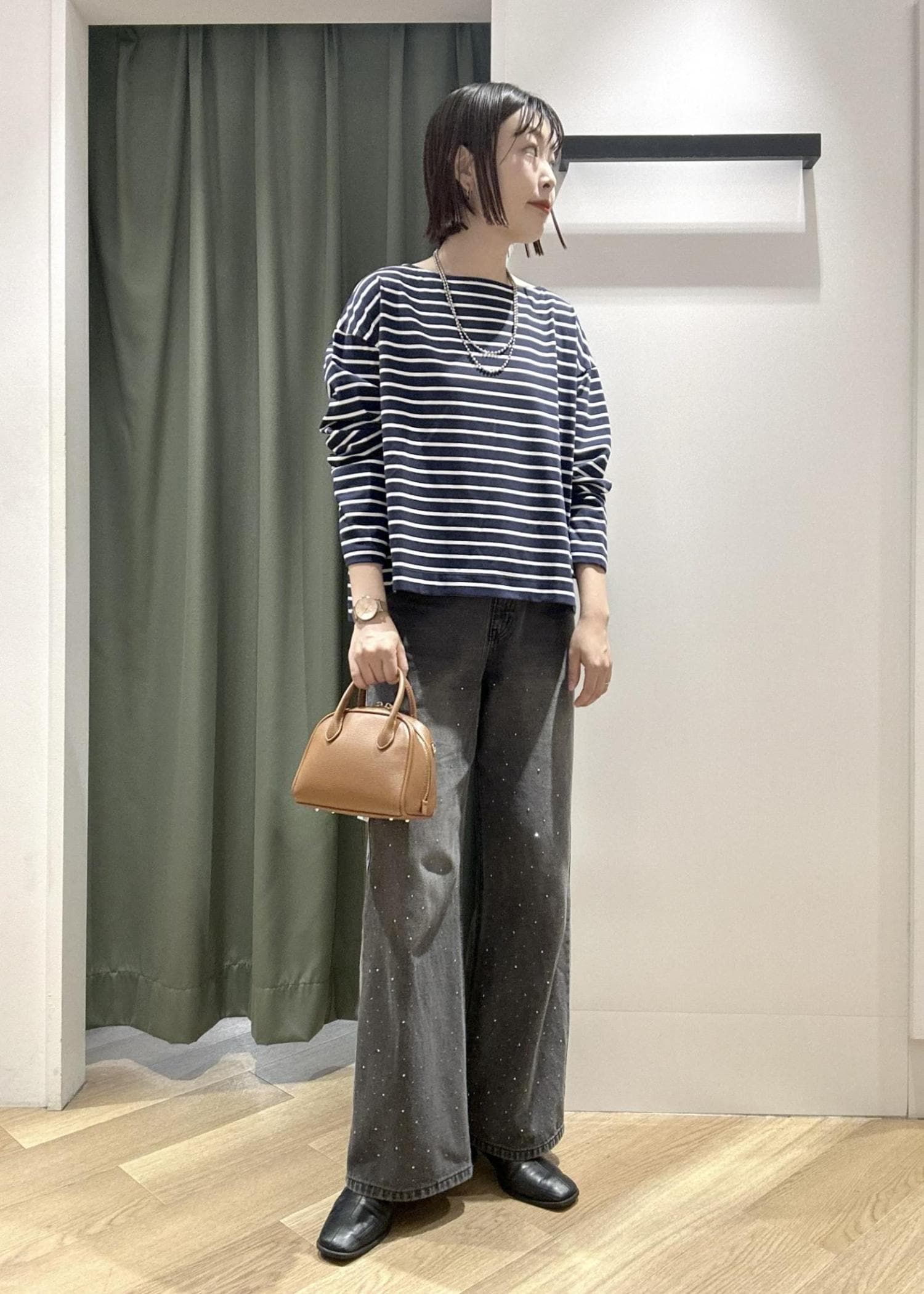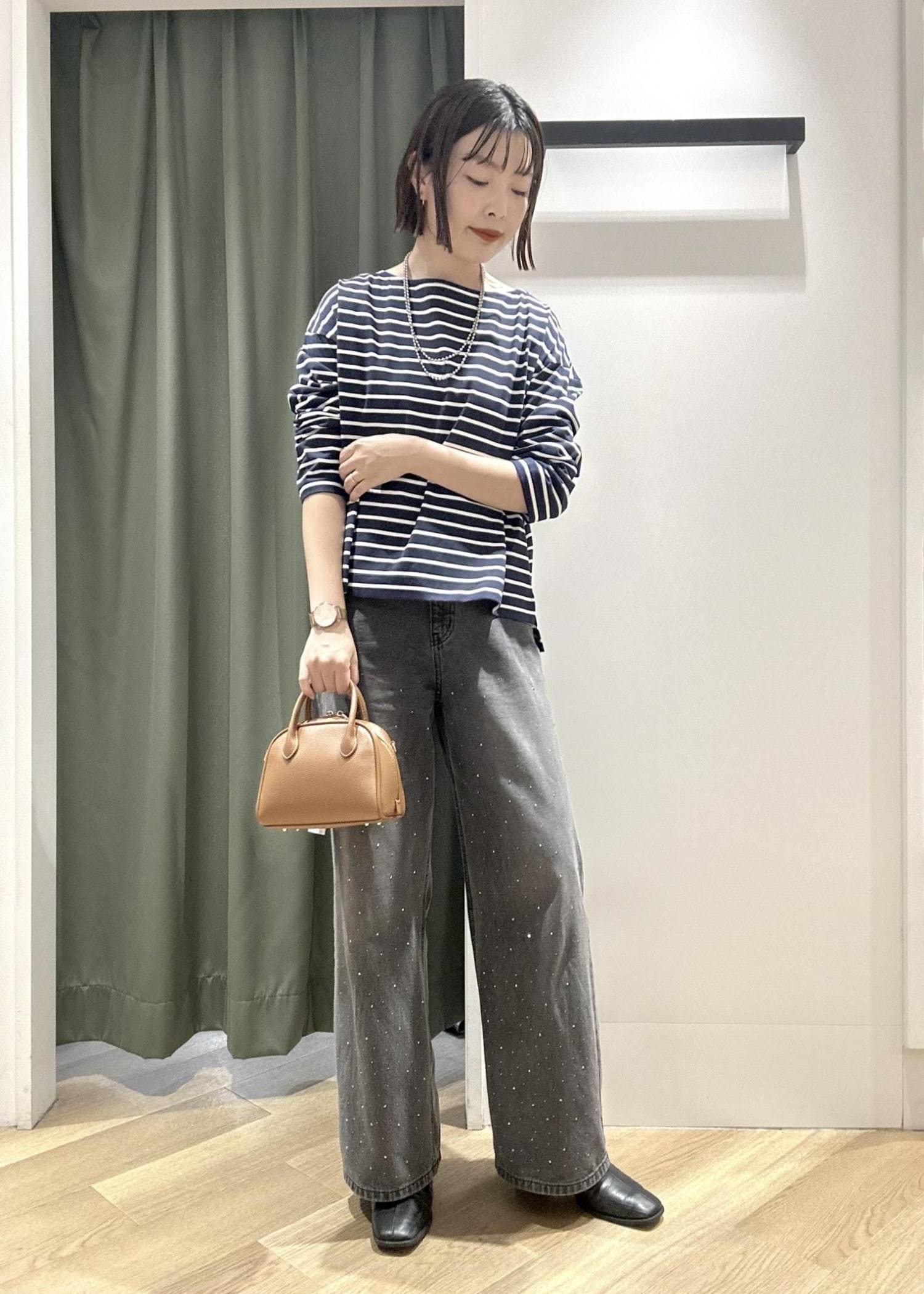 ボーダー×デニムの定番の組み合わせに、ブーツとボストンバッグで大人な雰囲気に♪