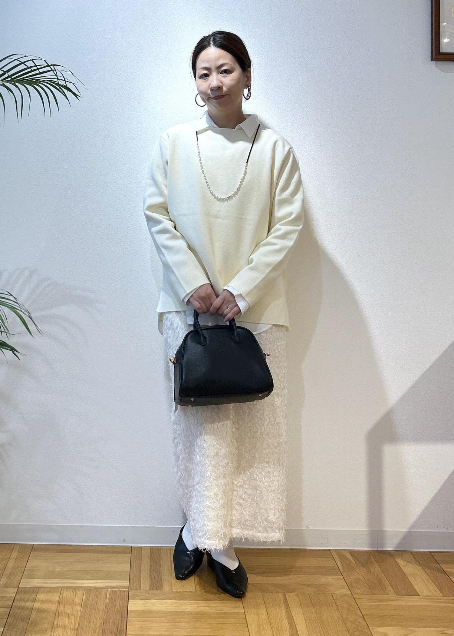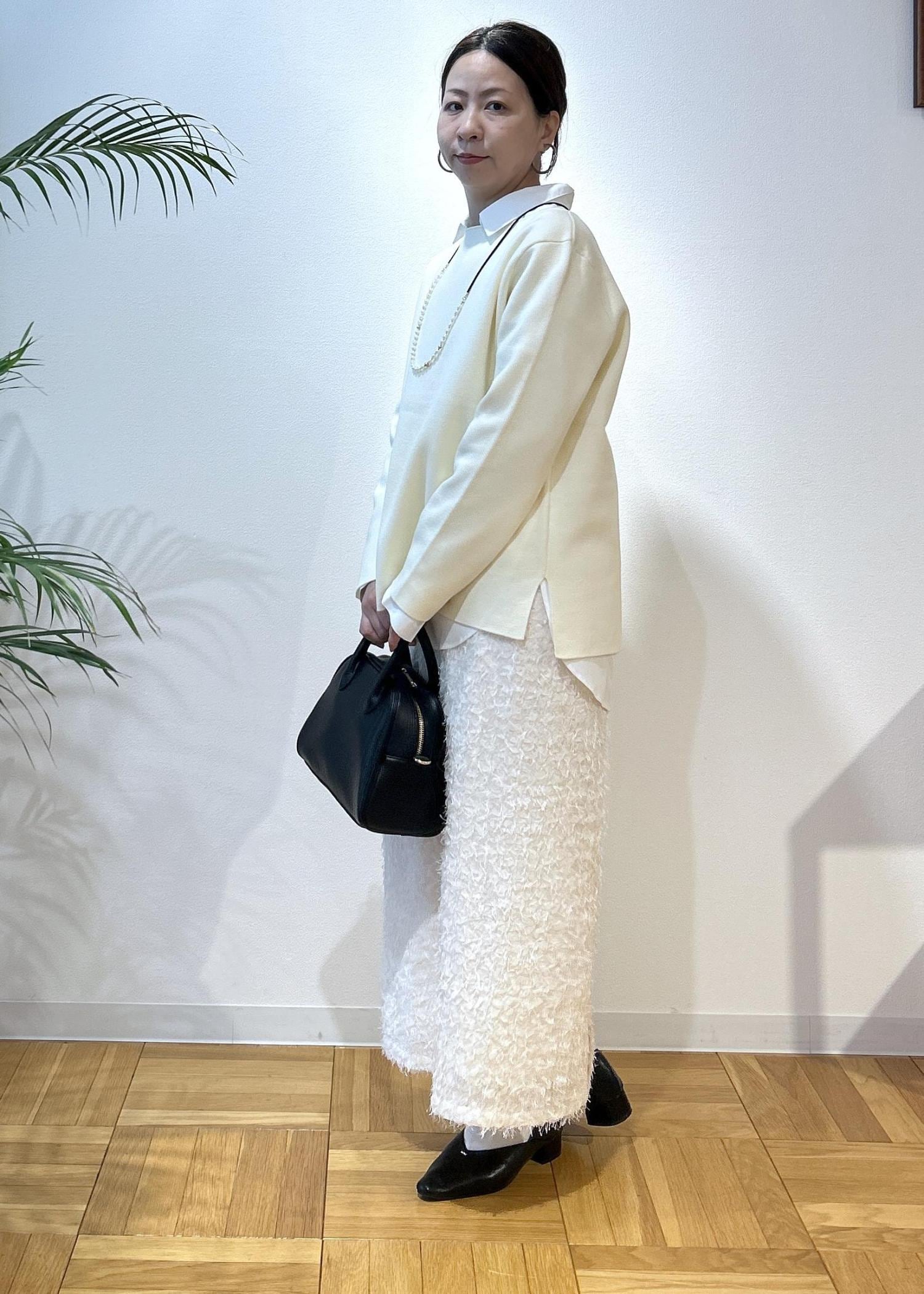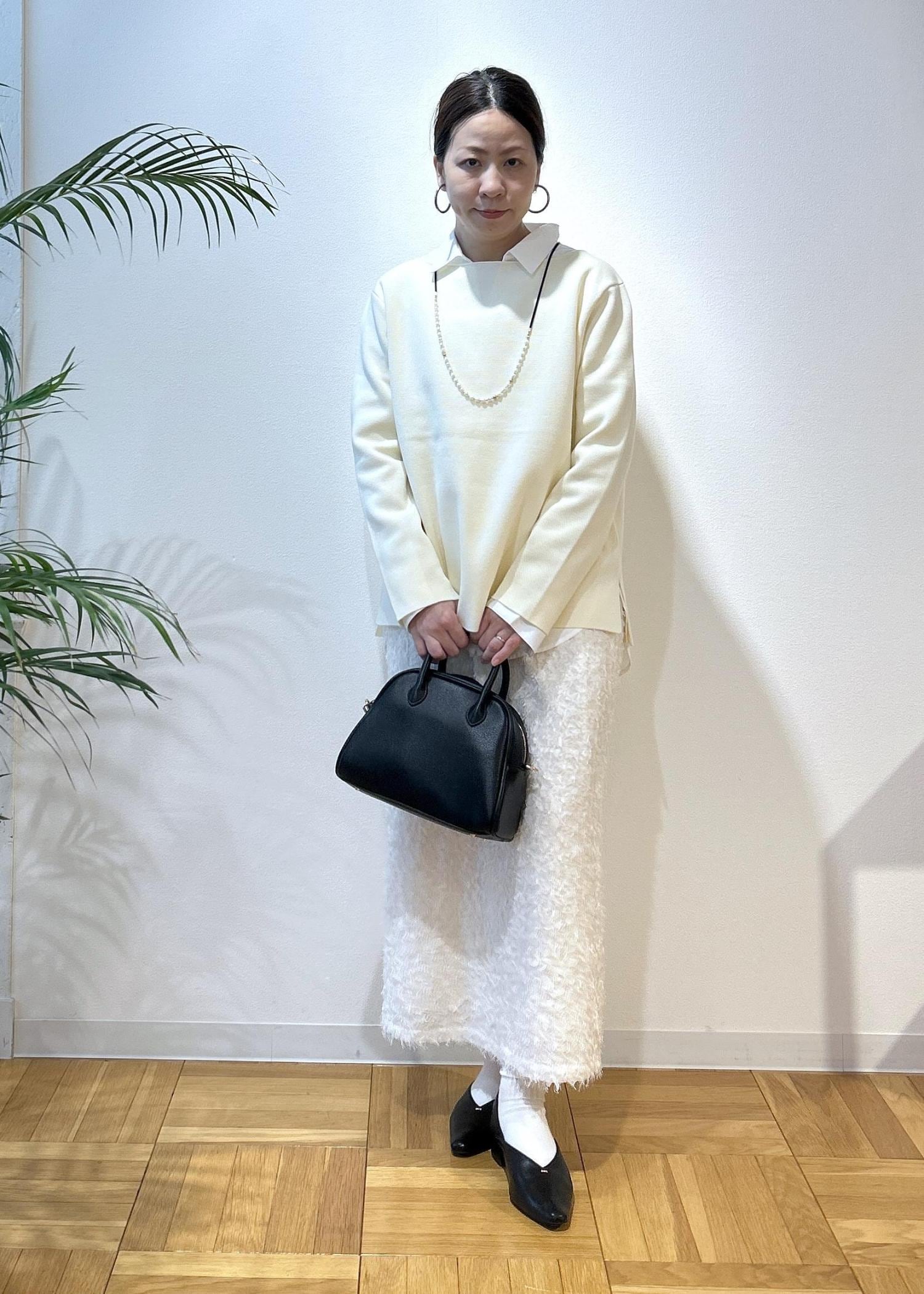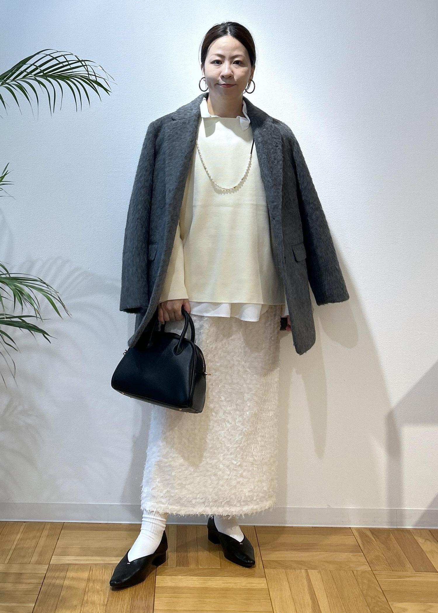 アウターの中は全身白で統一しました。冬の白コーデはやっぱい可愛いですよね。羽織りをグレーにすることがクールさと可愛さをミックスしたスタイルに仕上げました。