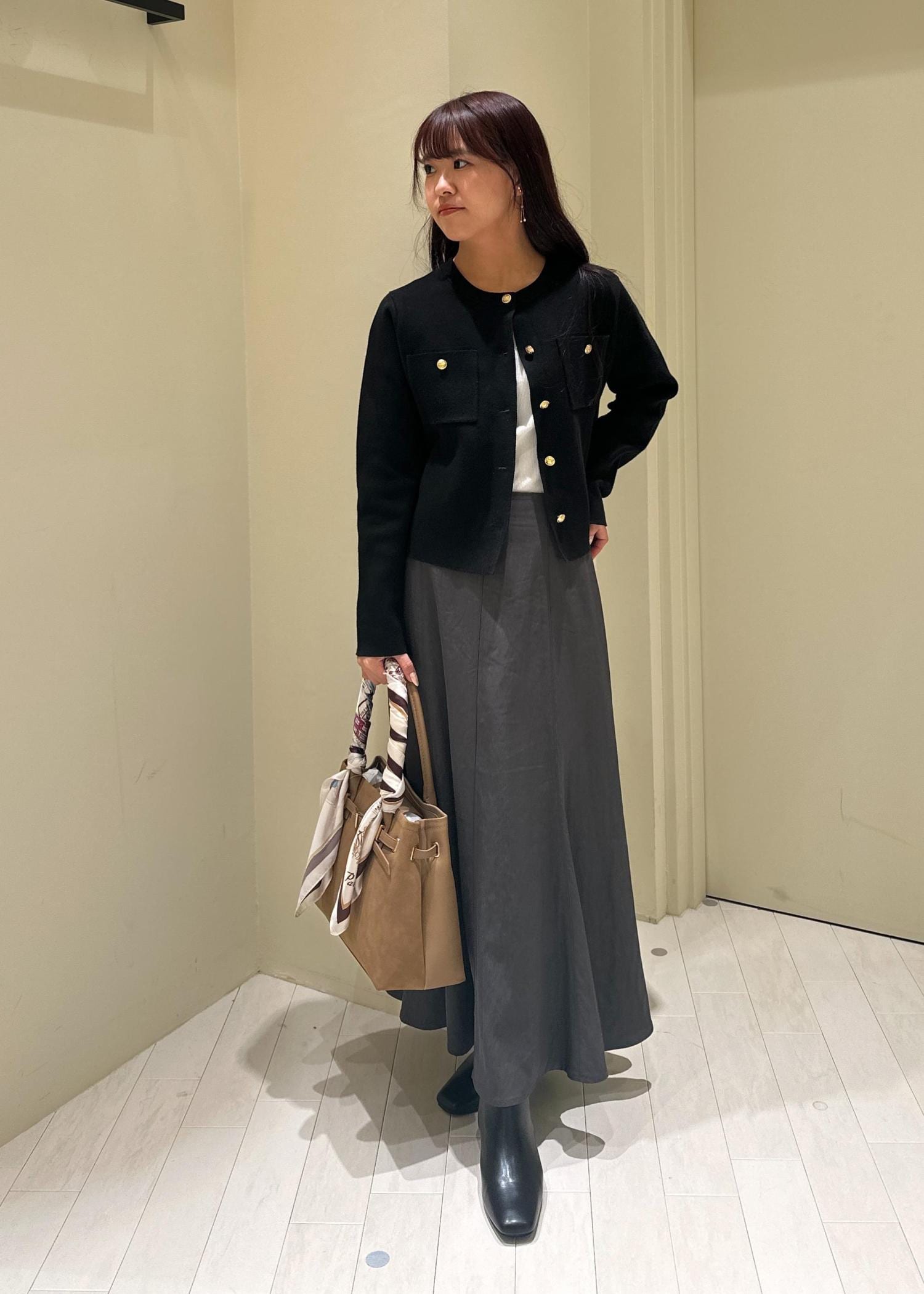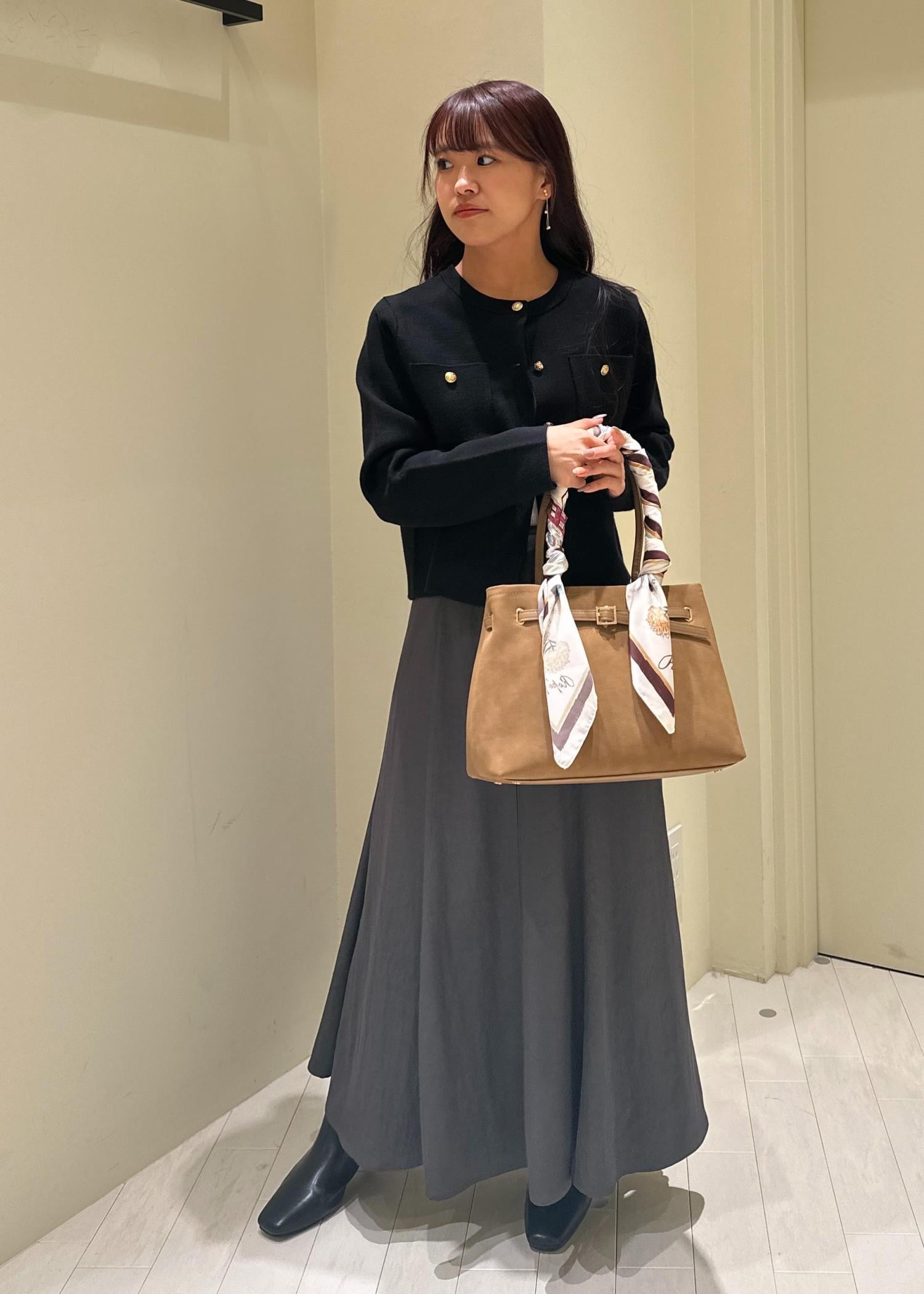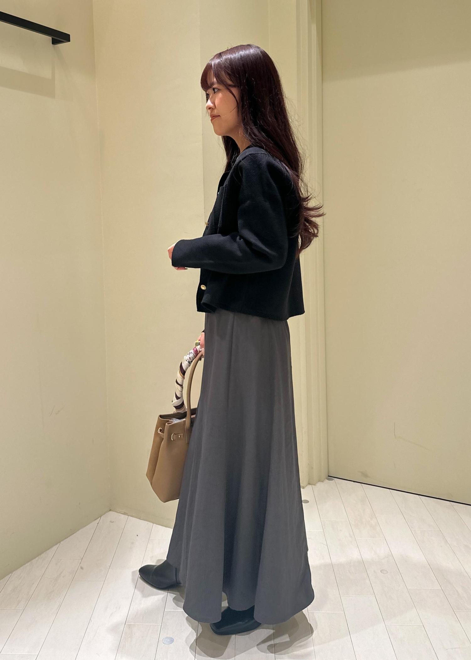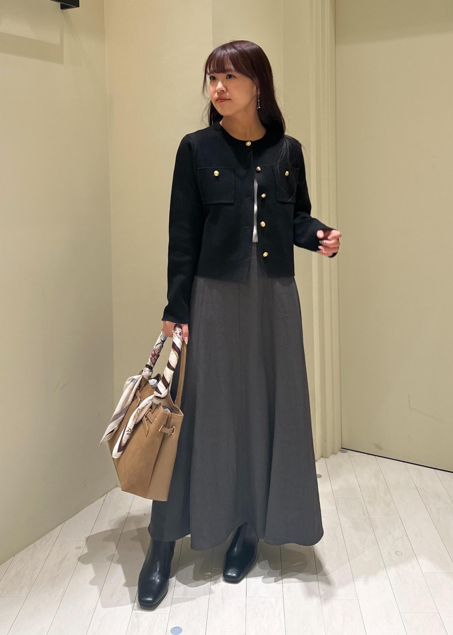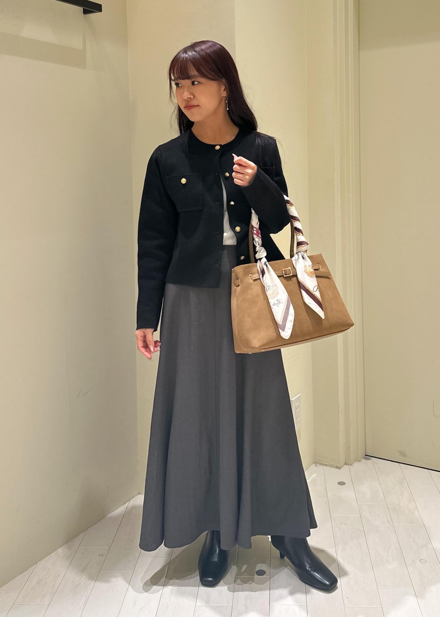 このコーデではブーツで合わせてますが、お仕事スタイルにはパンプスやローファーで合わせてみてください♪