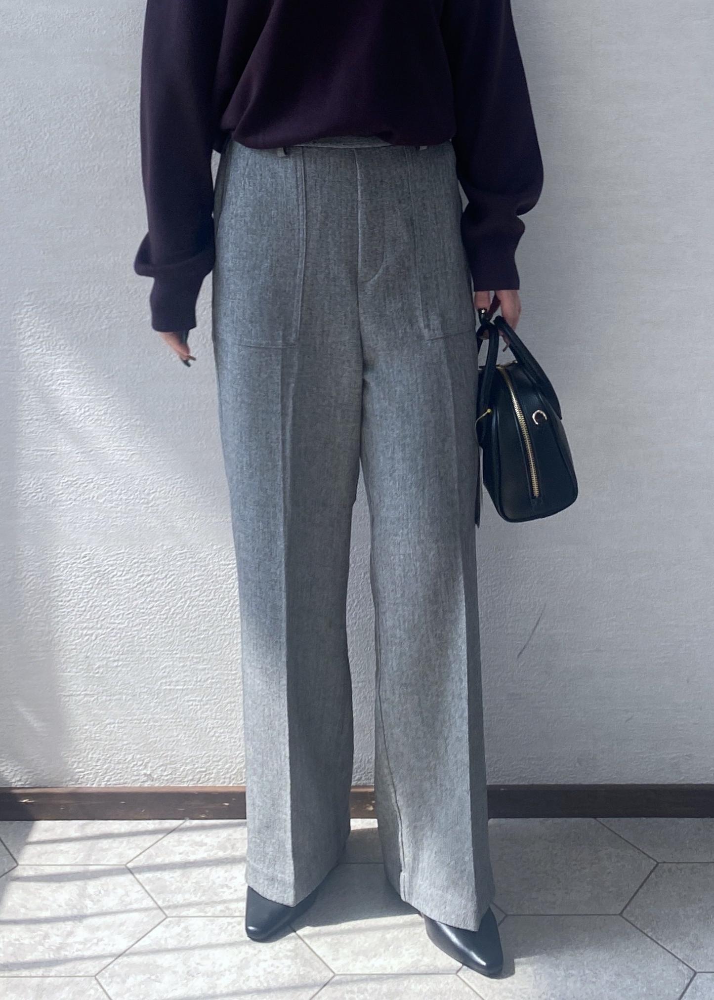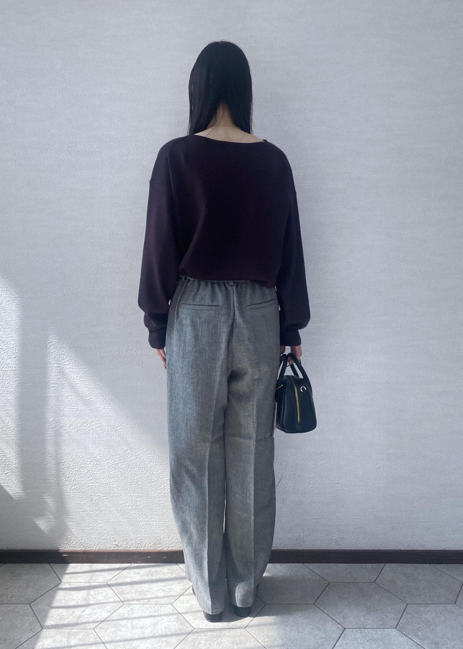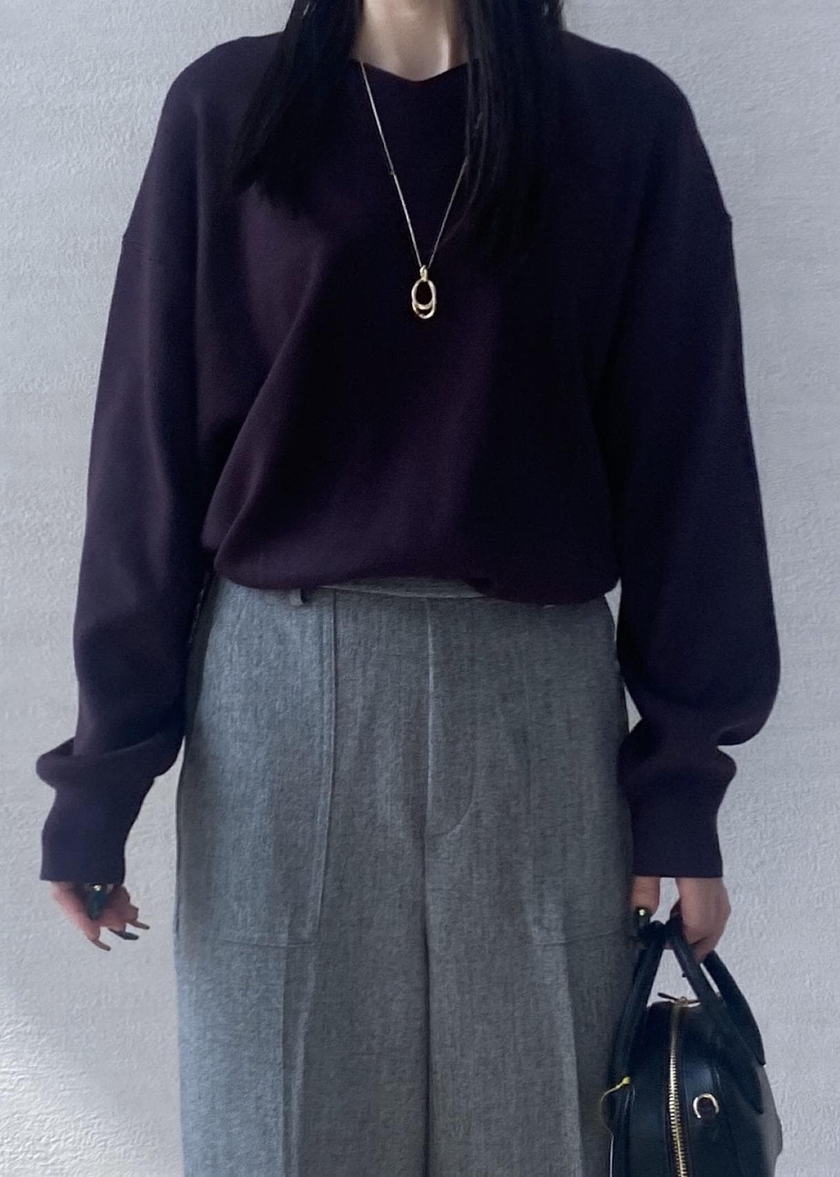 柔らかい素材感のVネックニットにベイカーパンツを合わせたキレイめなコーディネートです。