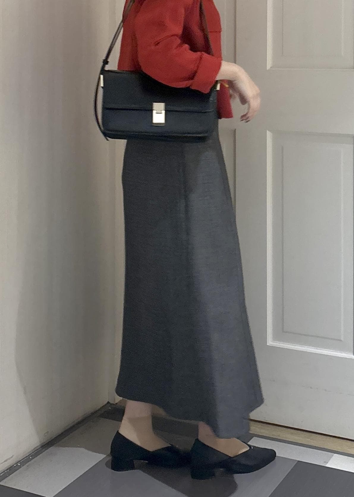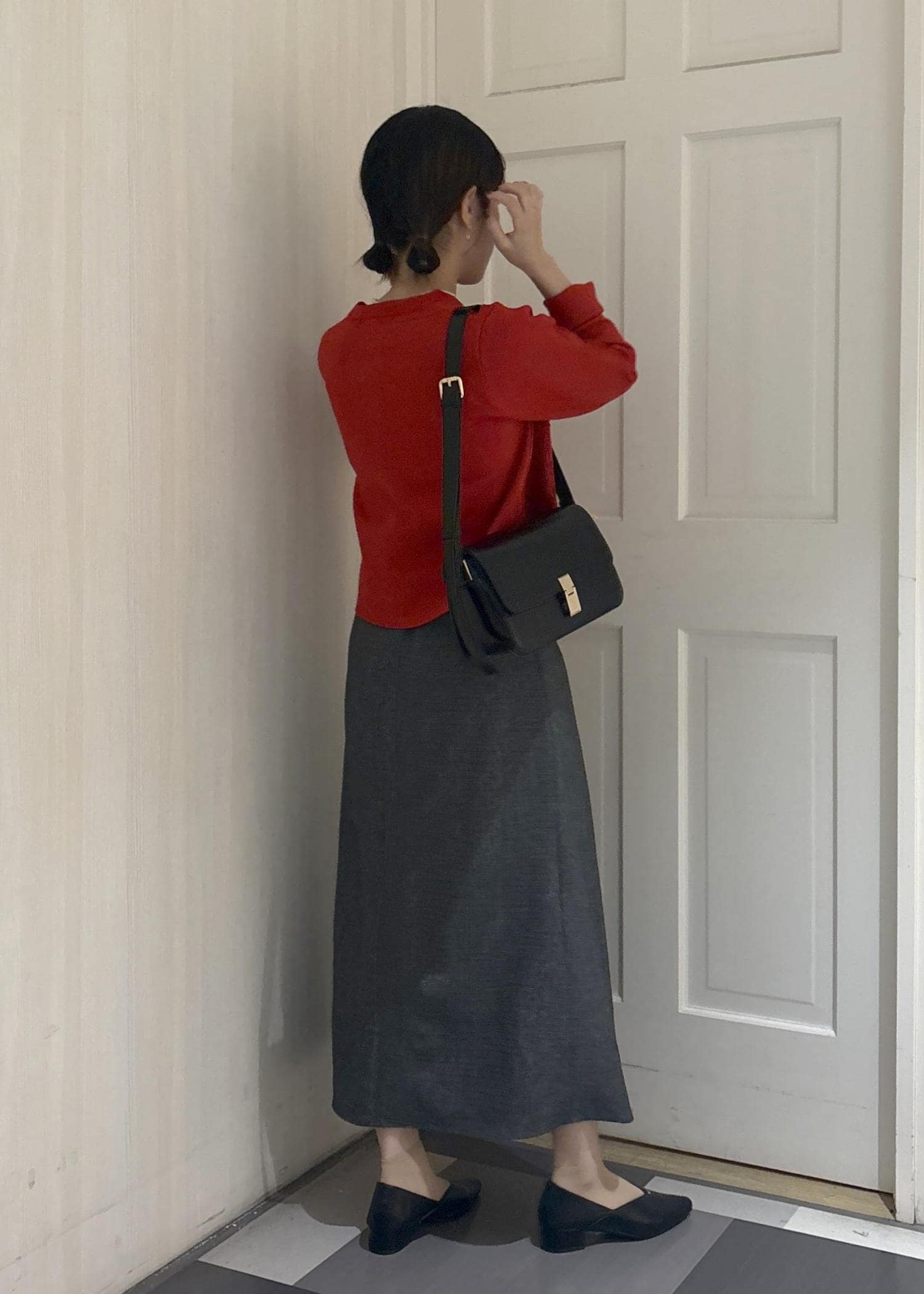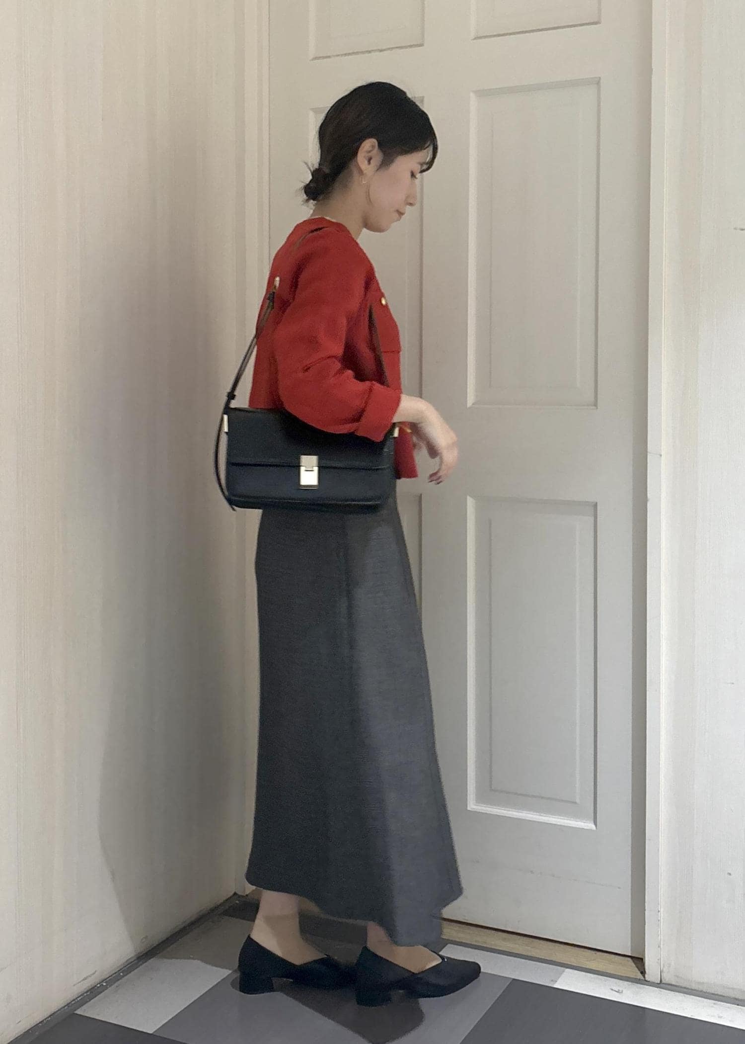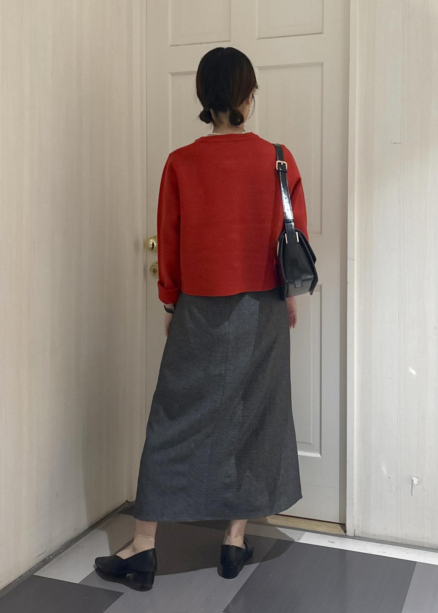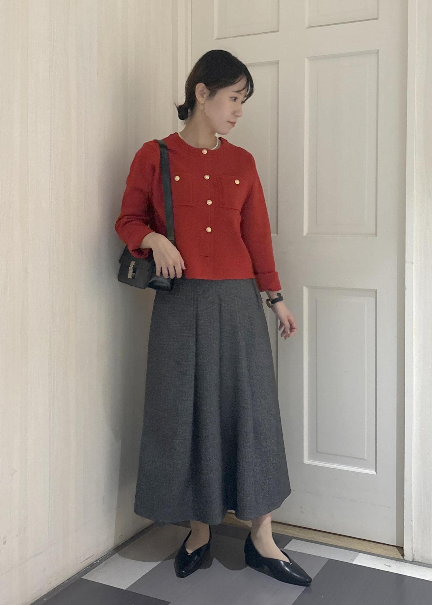 前面にタックが入っているので、綺麗めかつふわっとAラインのシルエットが◎