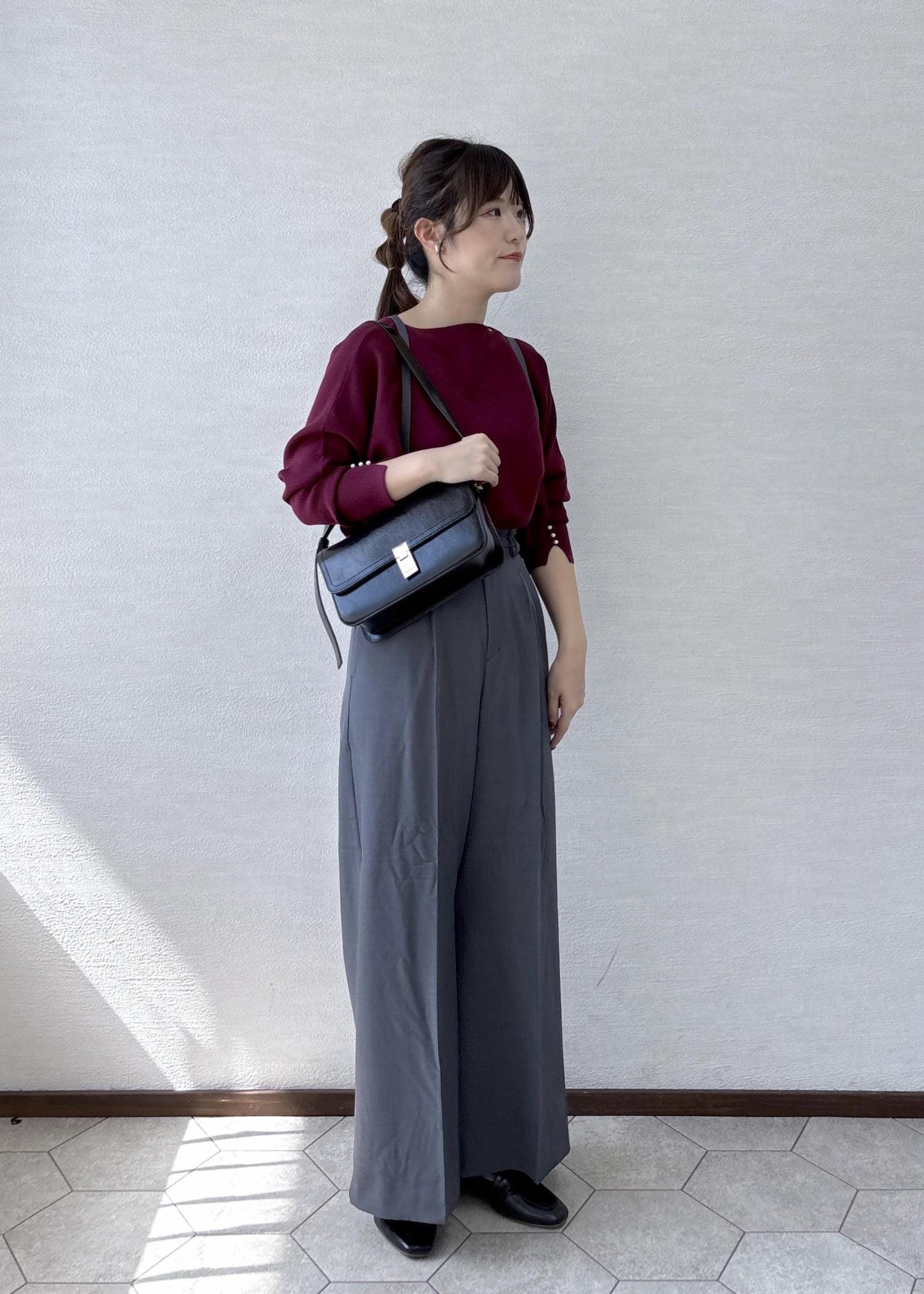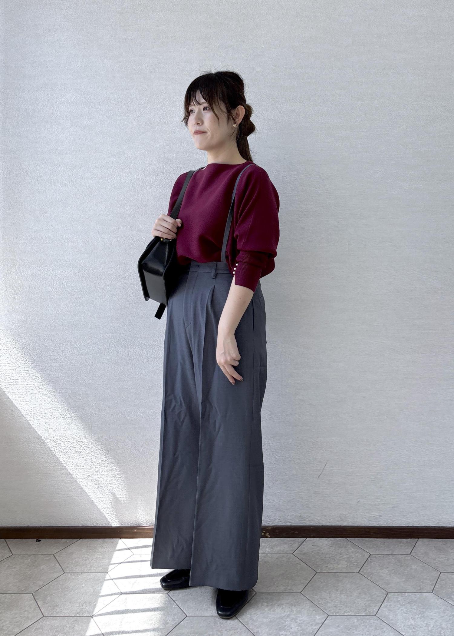 ・落ち感もある生地なので縦長効果でのスタイルアップ -