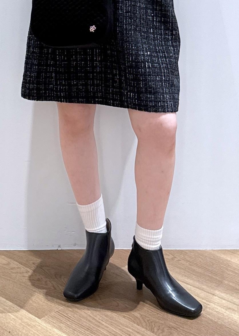 くるぶしくらいのショート丈なので、スカートともパンツともバランスが取りやすいです。 -
