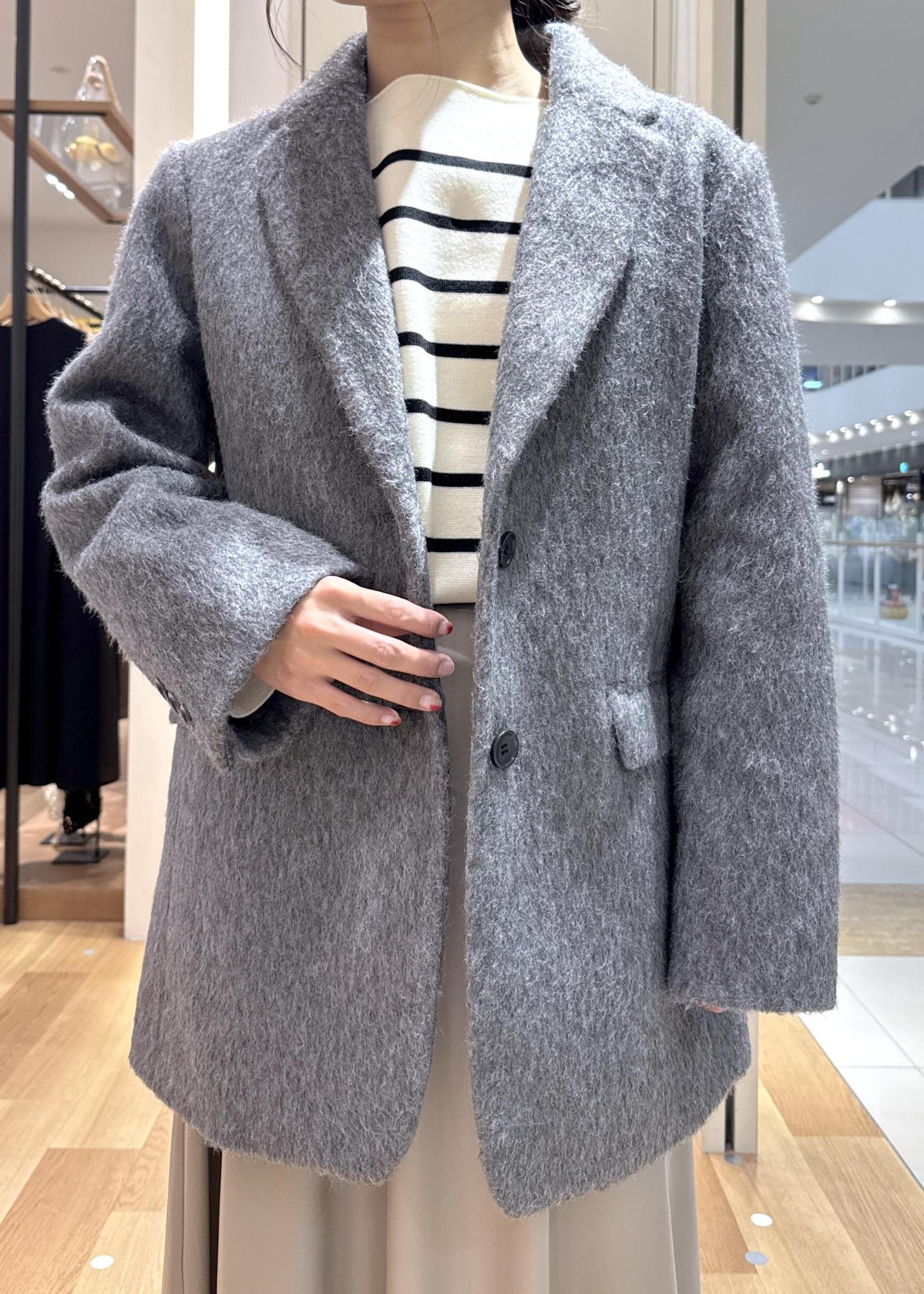 毛足の長いシャギーデザインのジャコットは、羽織るだけで秋冬らしい温かみのあるスタイリングになります!