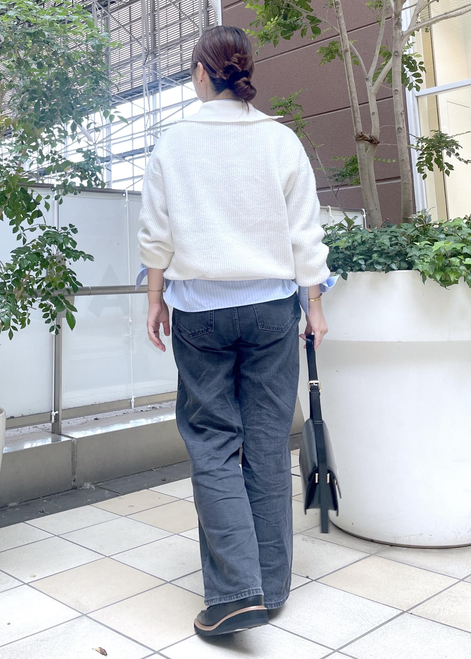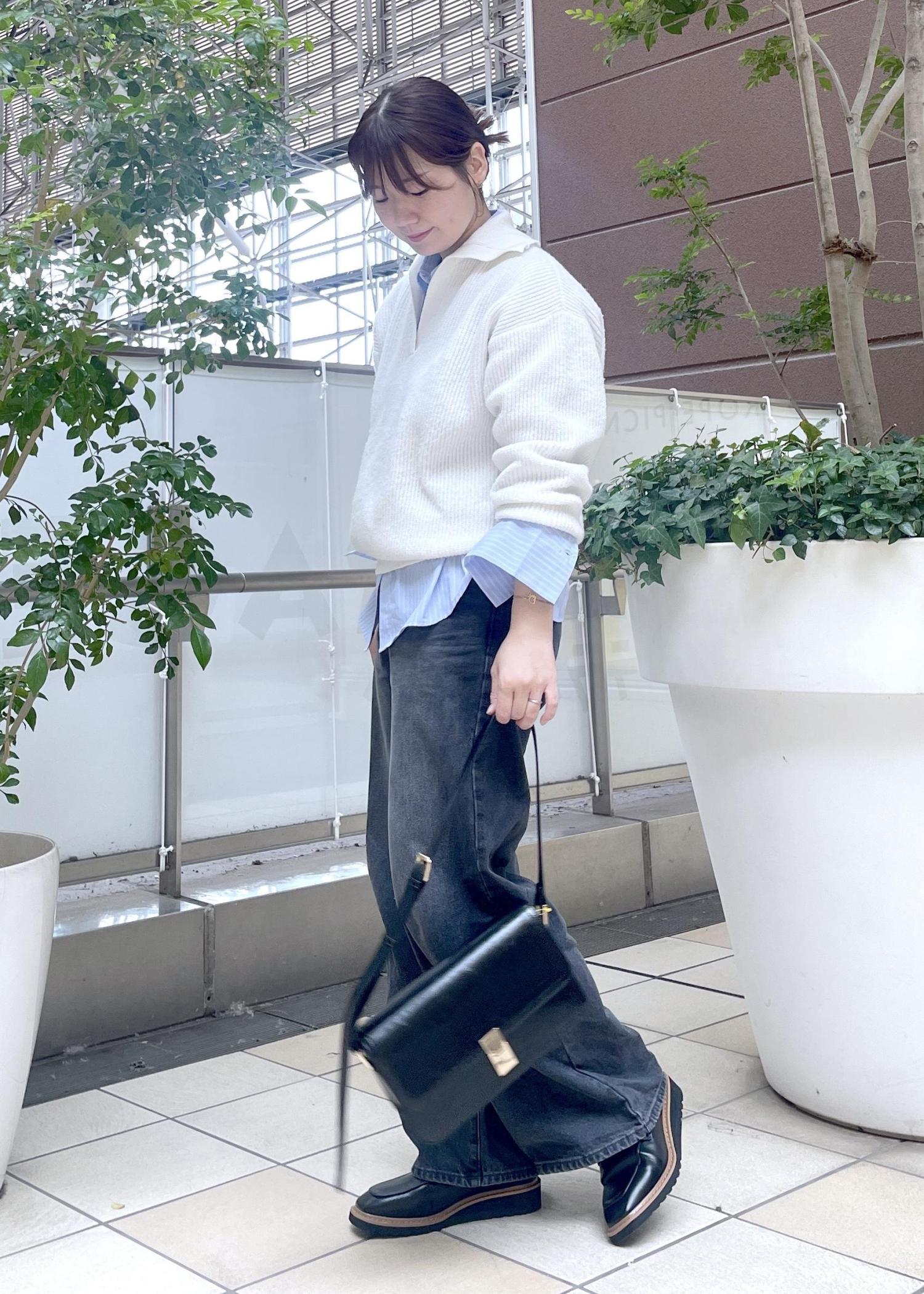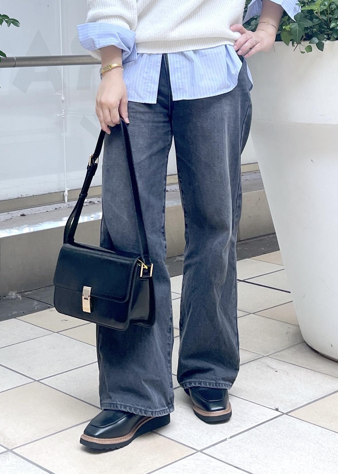カジュアルになり過ぎないよう小物はブラックで統一して大人っぽさをプラスしています。