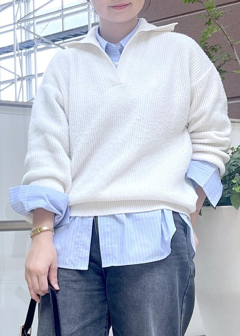 ROPÉ PICNICスキッパーポロニットプルオーバー/イージーケアオフホワイト / F¥4,499レビューゆったりとしたサイズ感なのでシャツやTシャツ等もレイヤードしやすいです。
