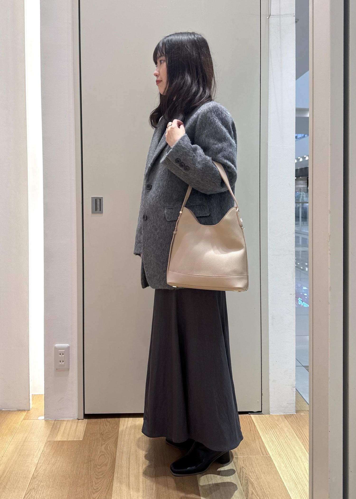 きれいめコーデに仕上げたかったので、小物のレザー素材のものを選びました。