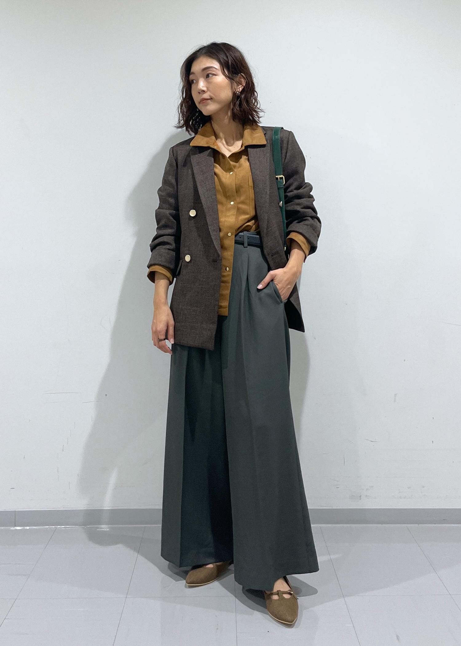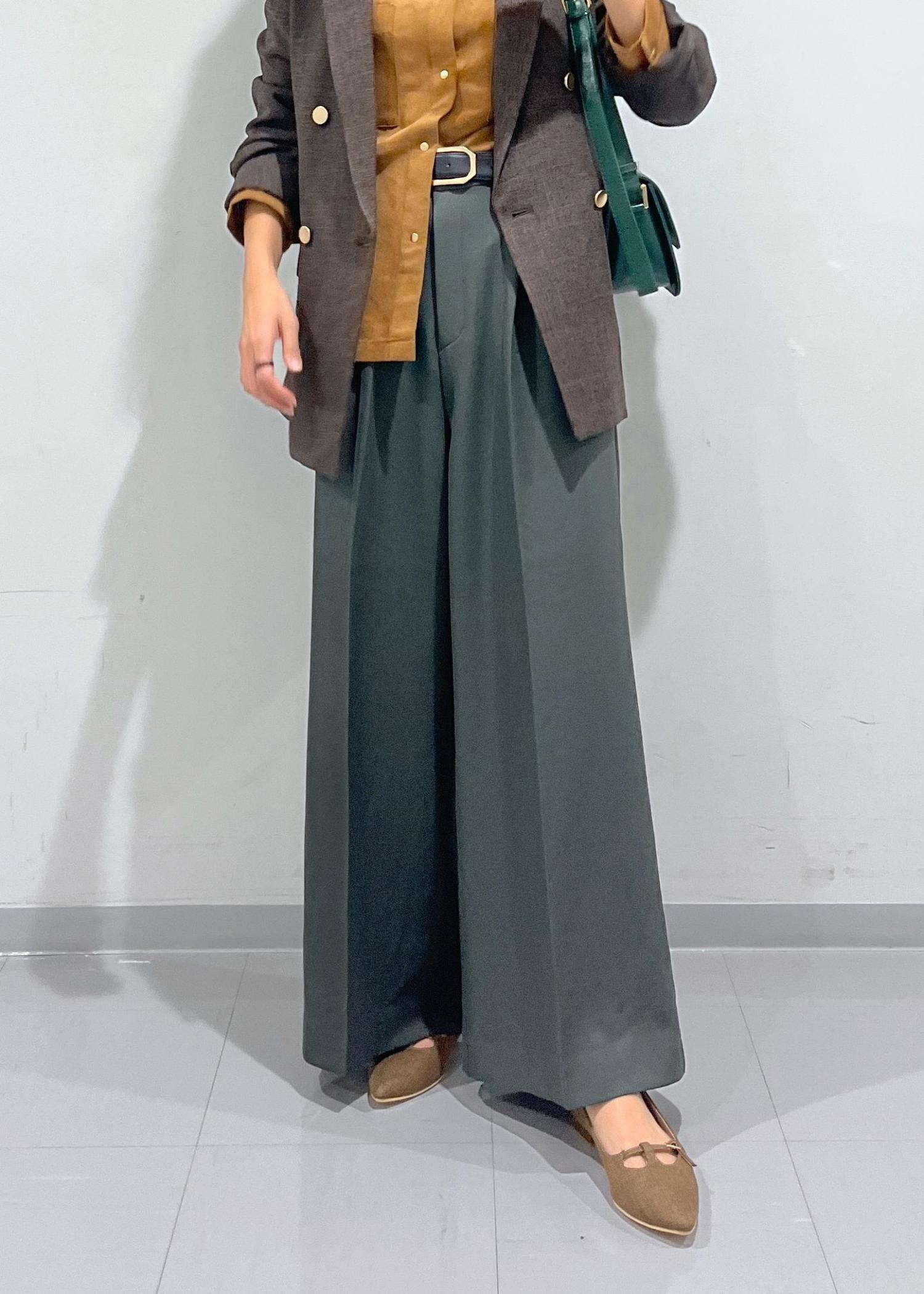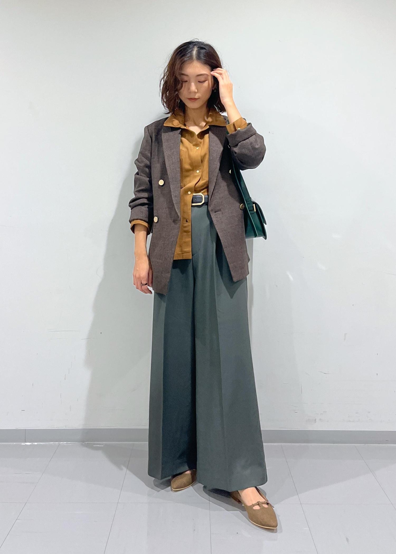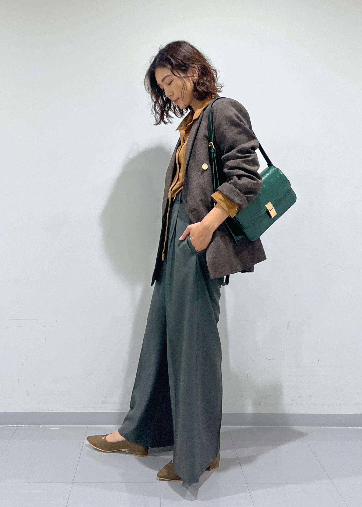 パンツとバッグの深みのあるグリーンがさらに全体の雰囲気を仕上げてくれます。