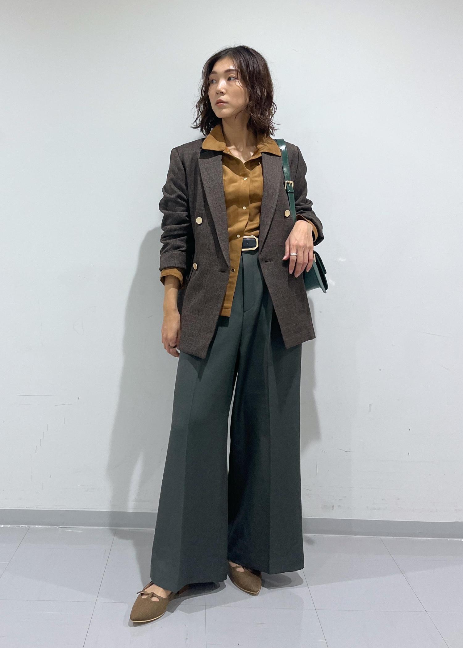 ブラウン系の色合いやシャツ、ジャケットの素材がヴィンテージライクな雰囲気のあるハンサムなスタイリングに。