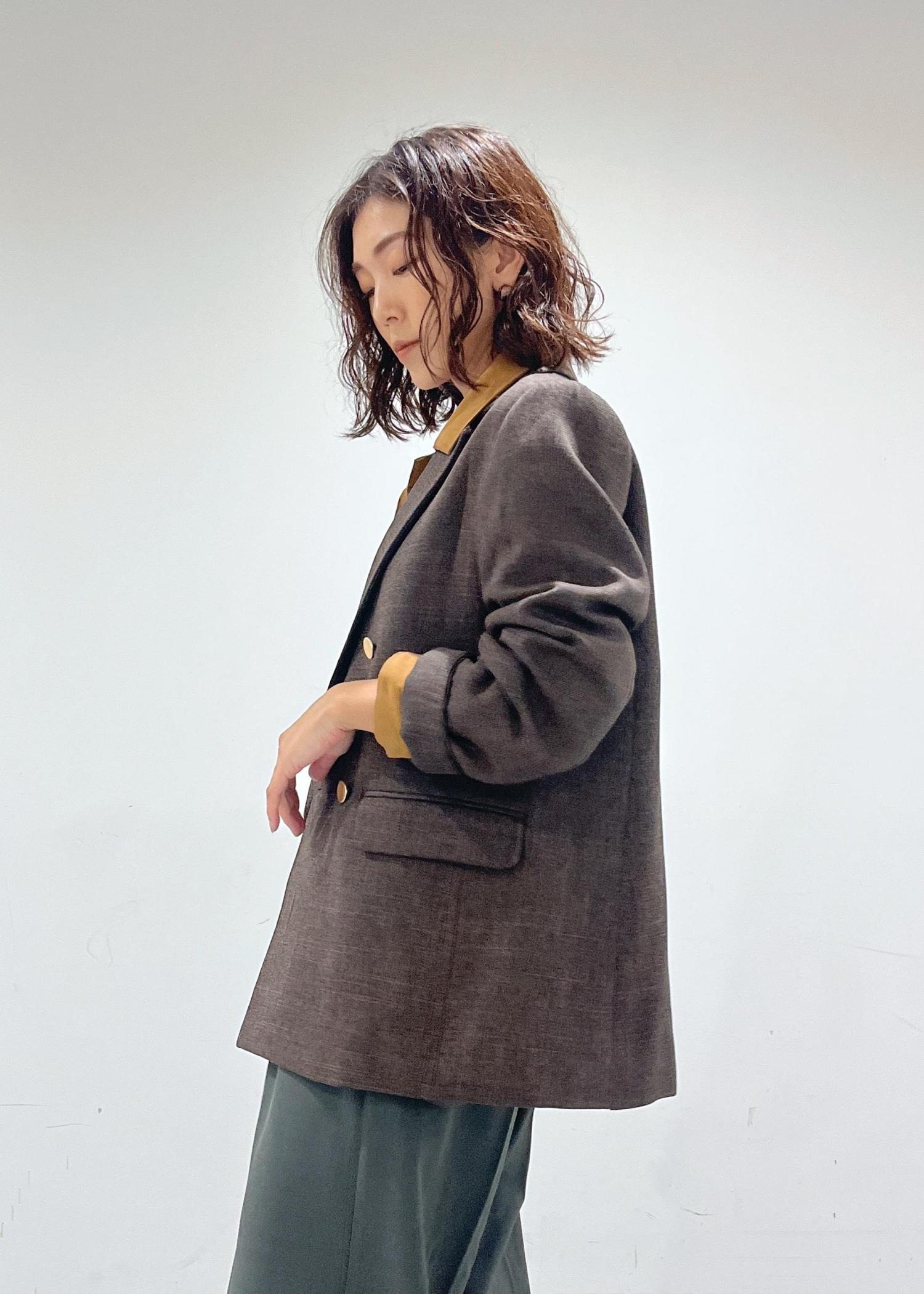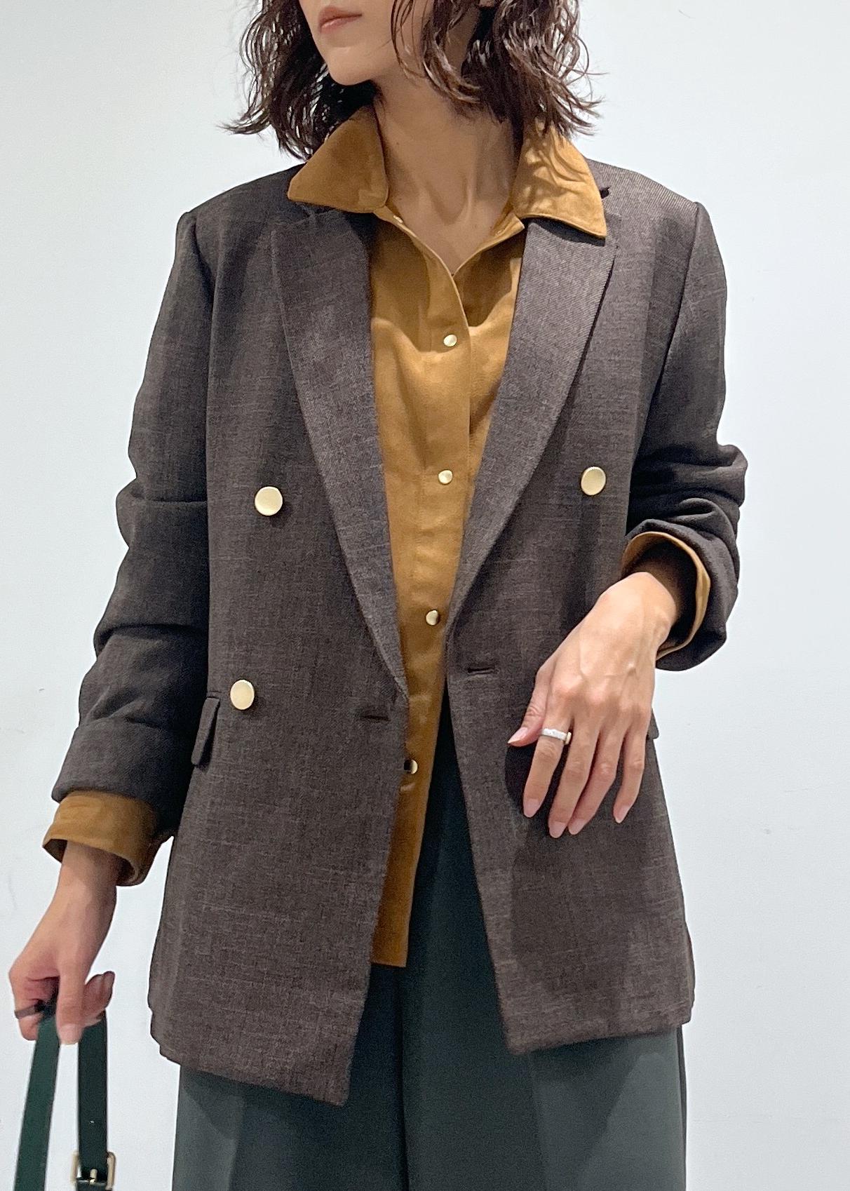 ライトアウターとしても活躍するやや厚手の生地ですが、エアリーな素材なので軽くて暖かさのあるジャケットです。