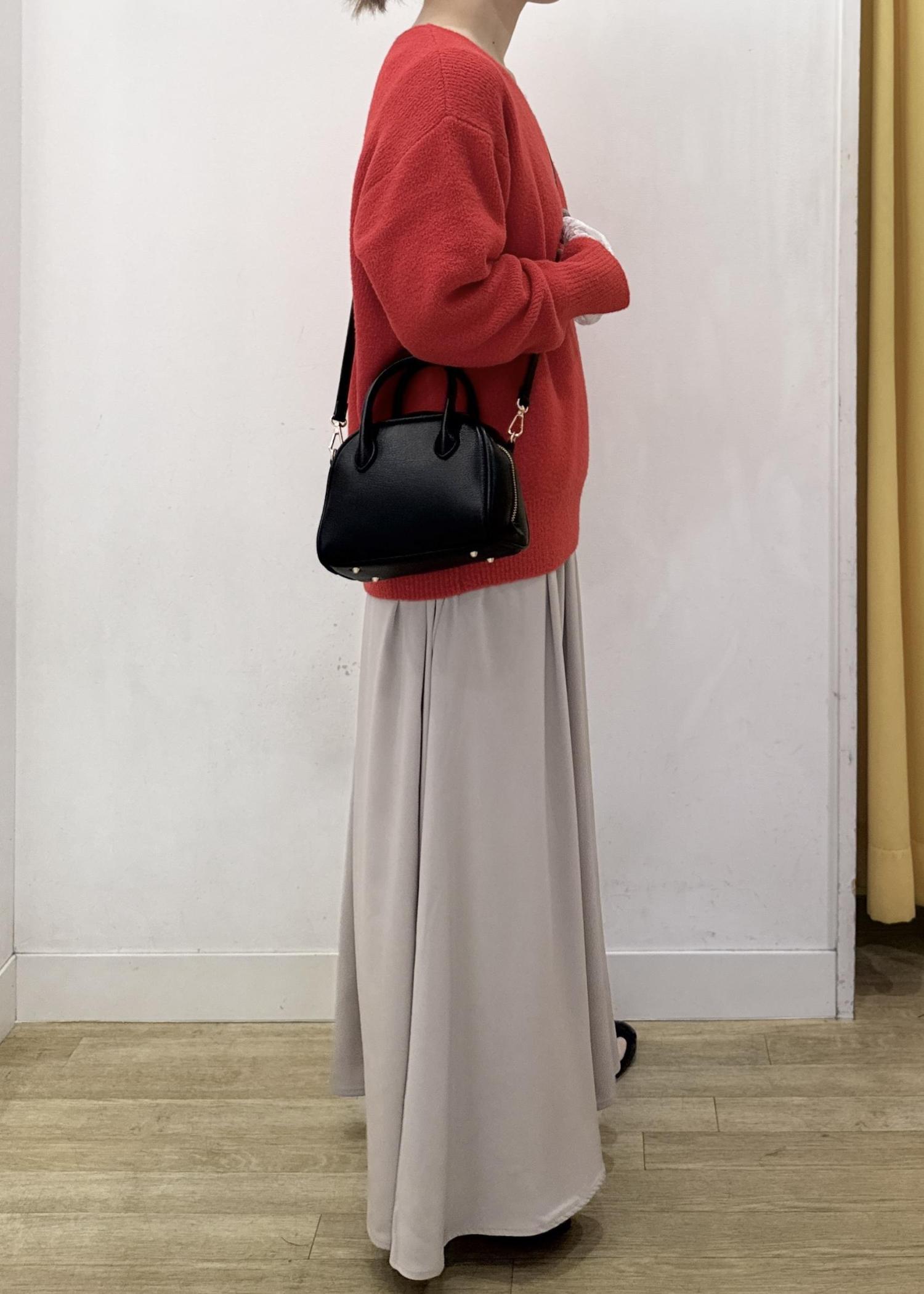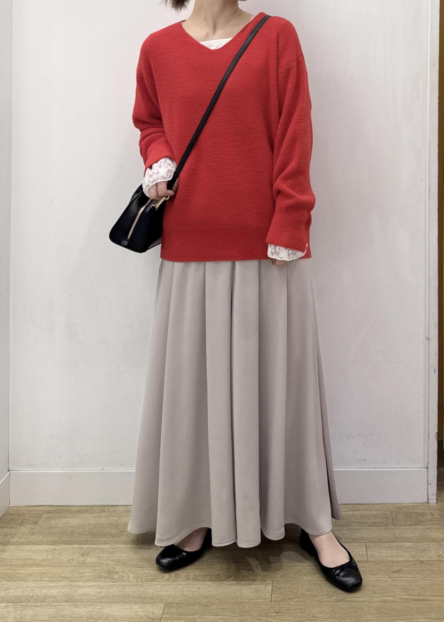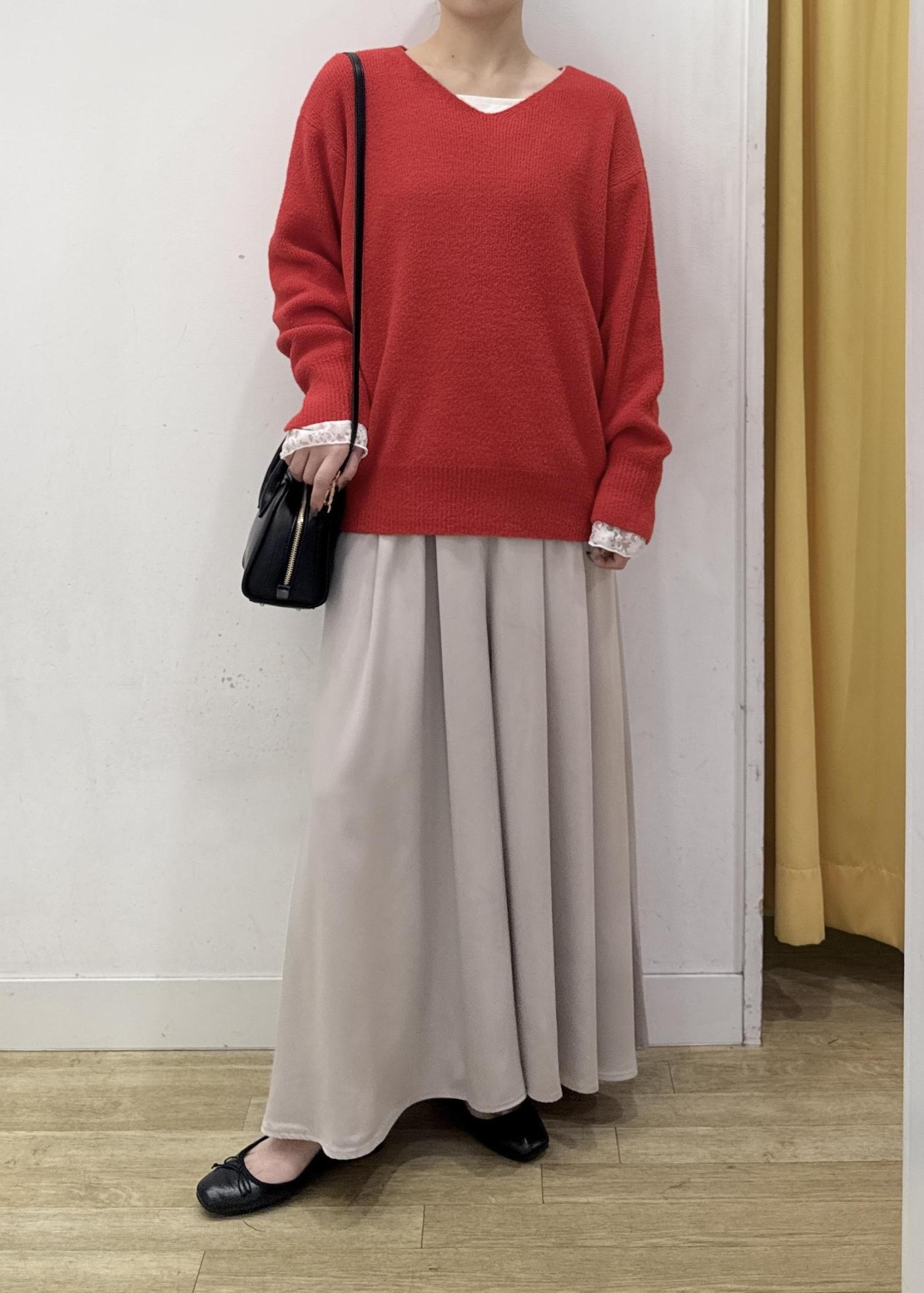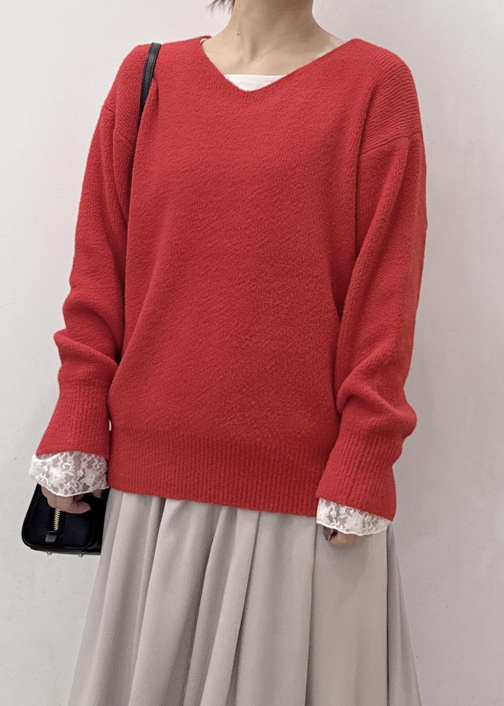 キレイなレッドカラーは、ふわふわのニットで柔らかい雰囲気をプラス!
