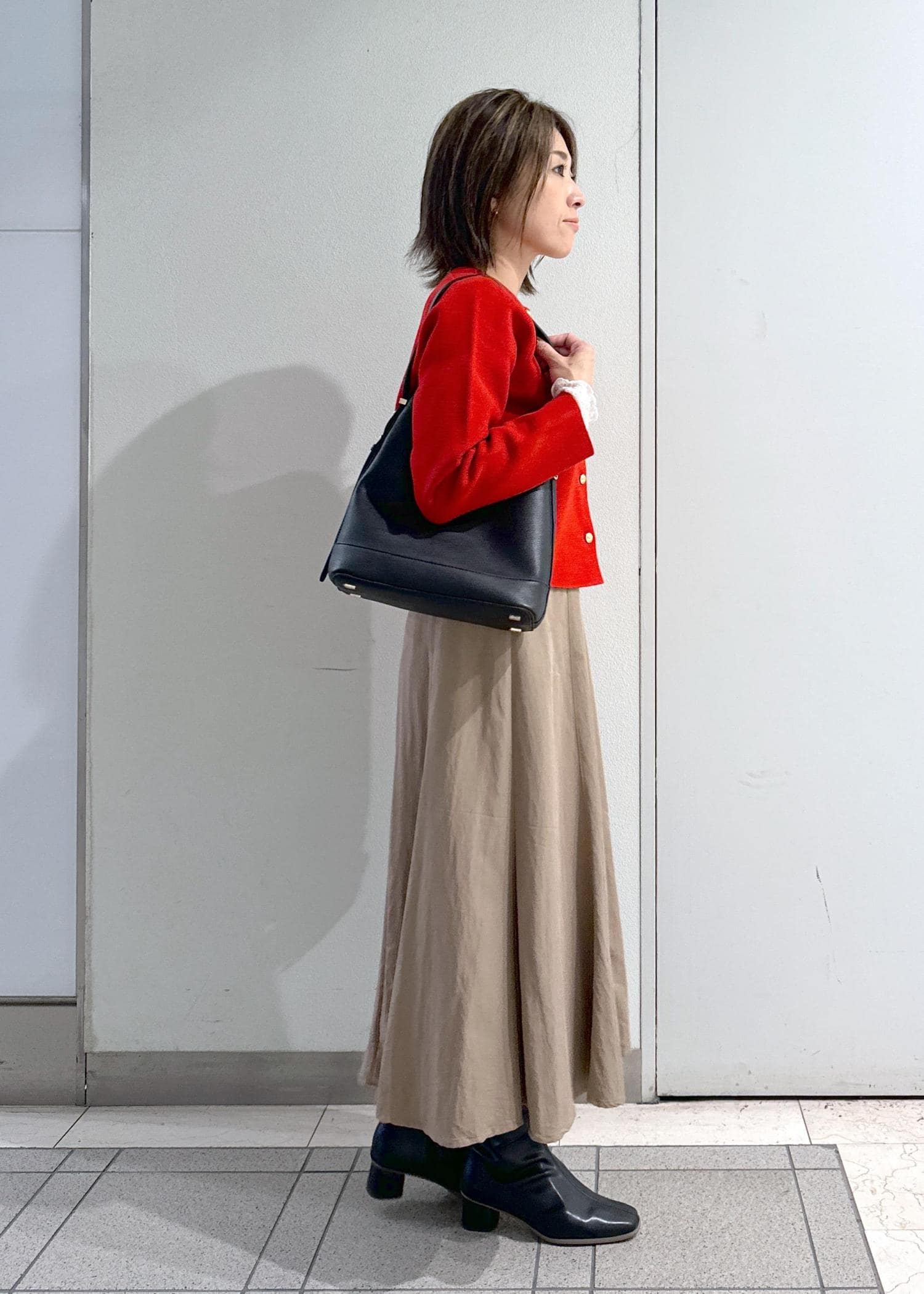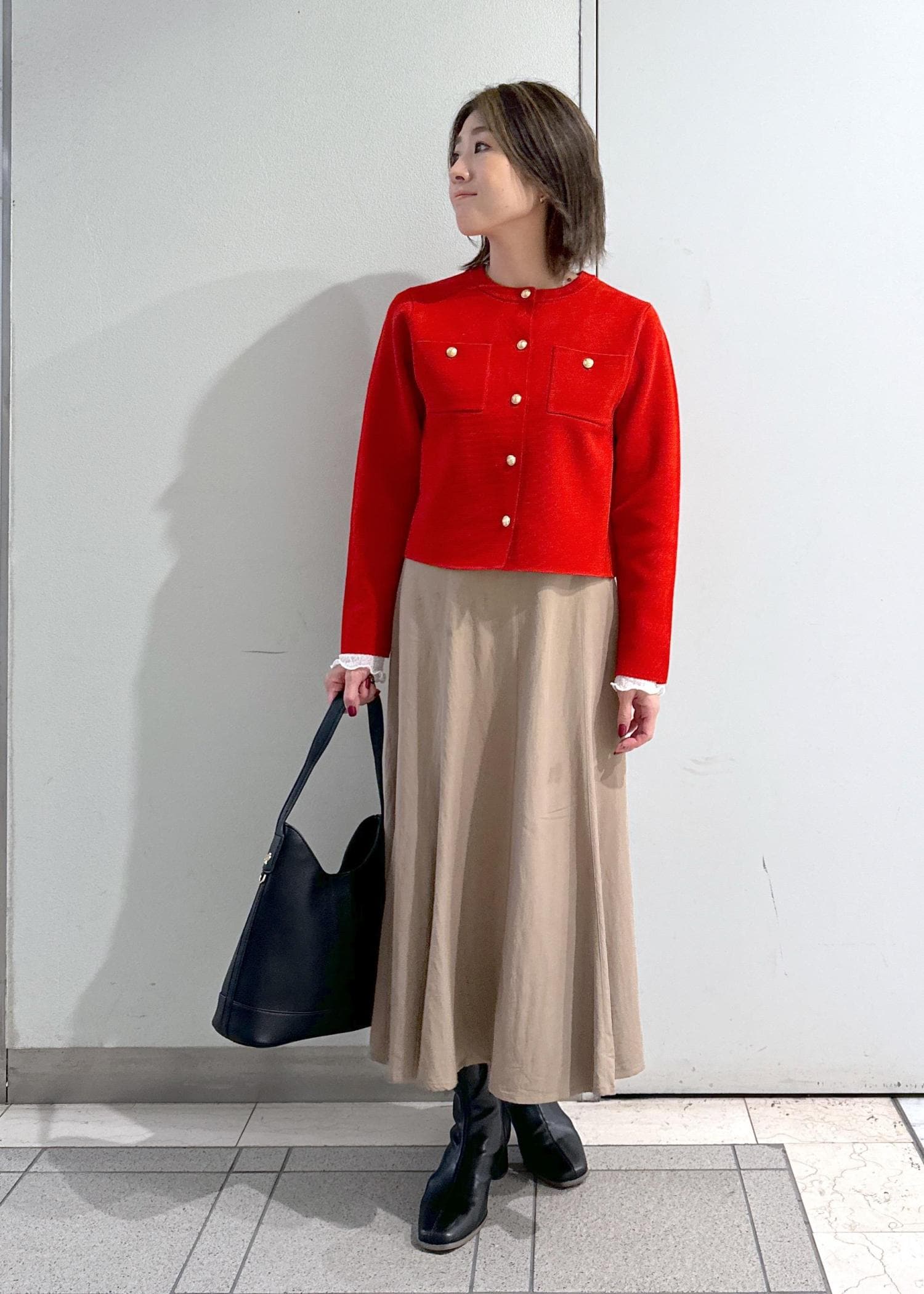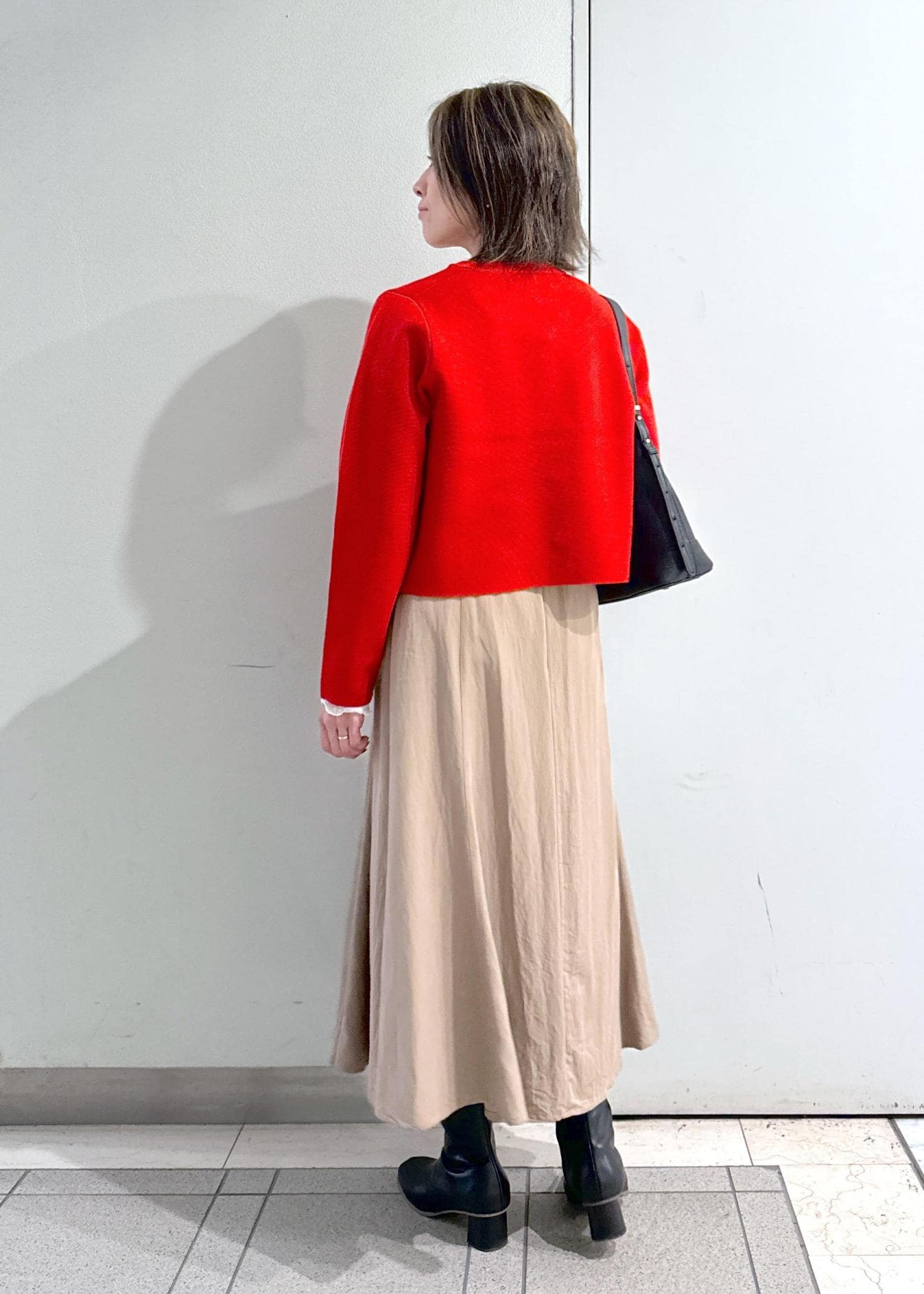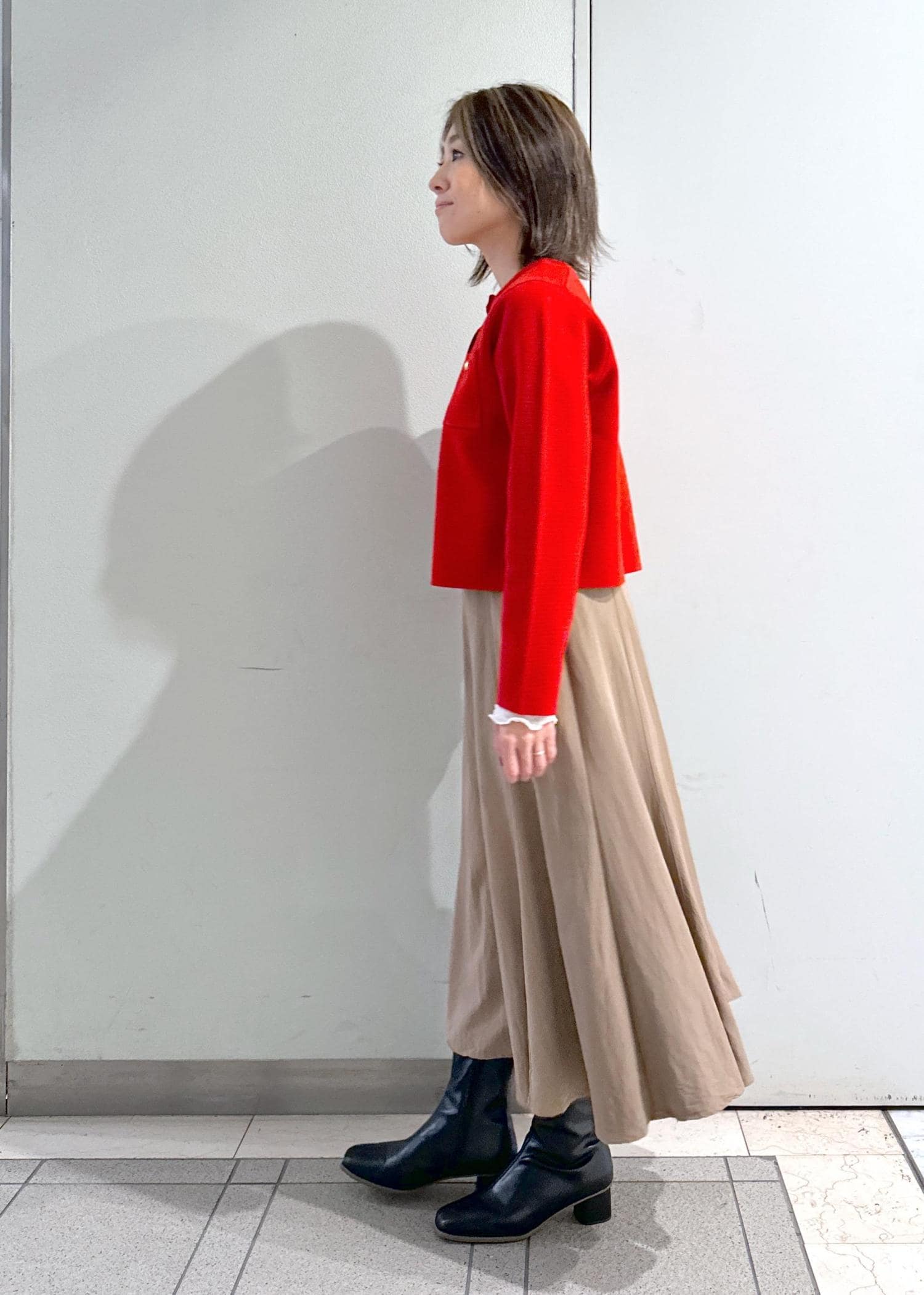 フレアシルエットで着丈は足首が少し見える位の長さ、上品な印象です。 -