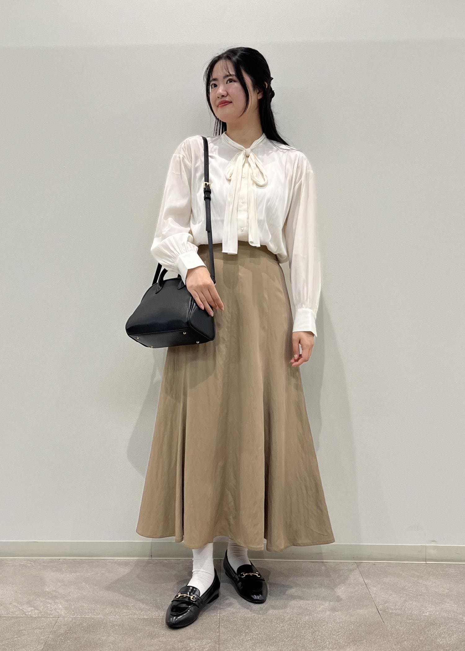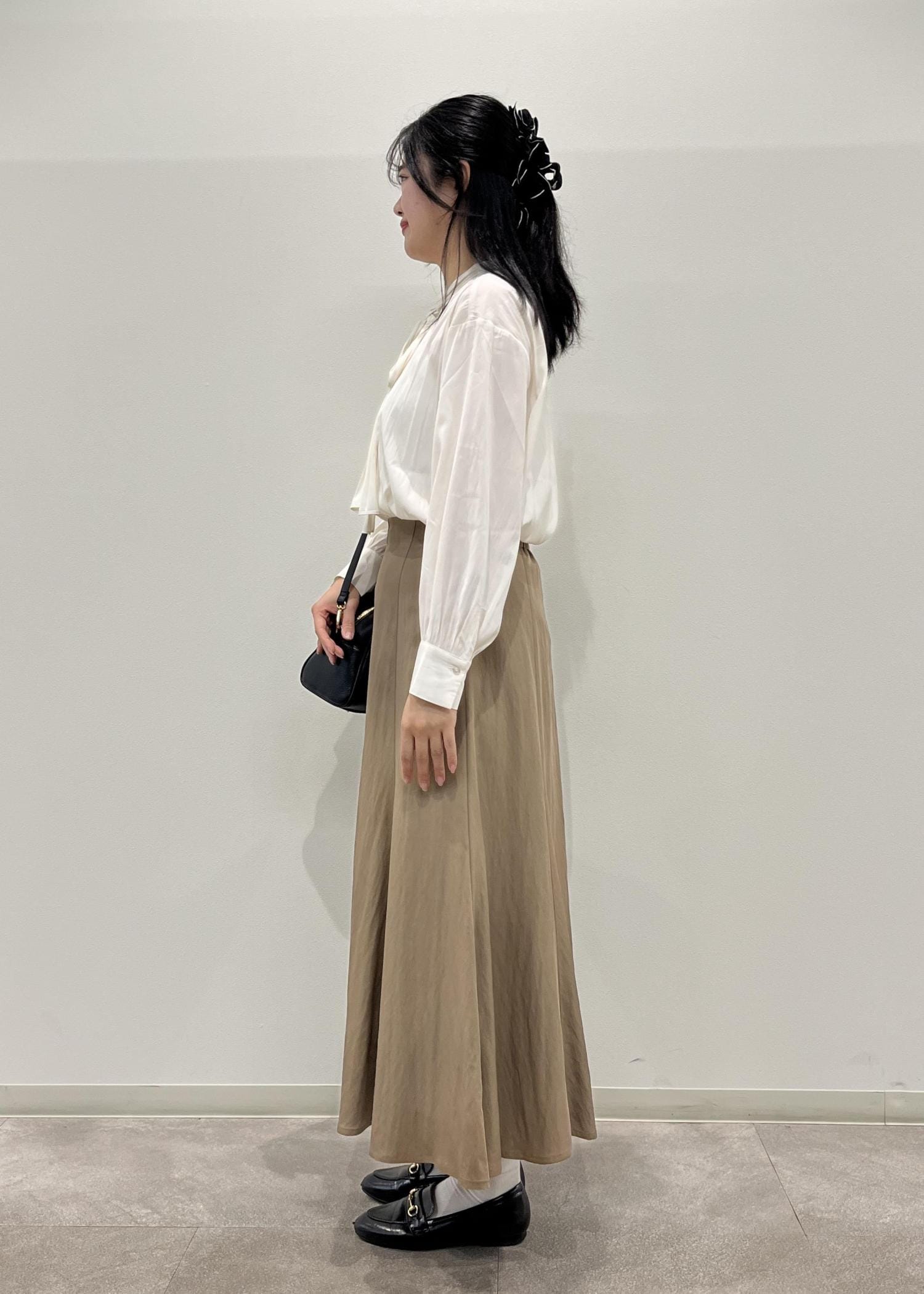 素材はレーヨンナイロンで軽めなのでフェミニンコーデだけでなくカジュアルコーデにも合わせやすいです。 -