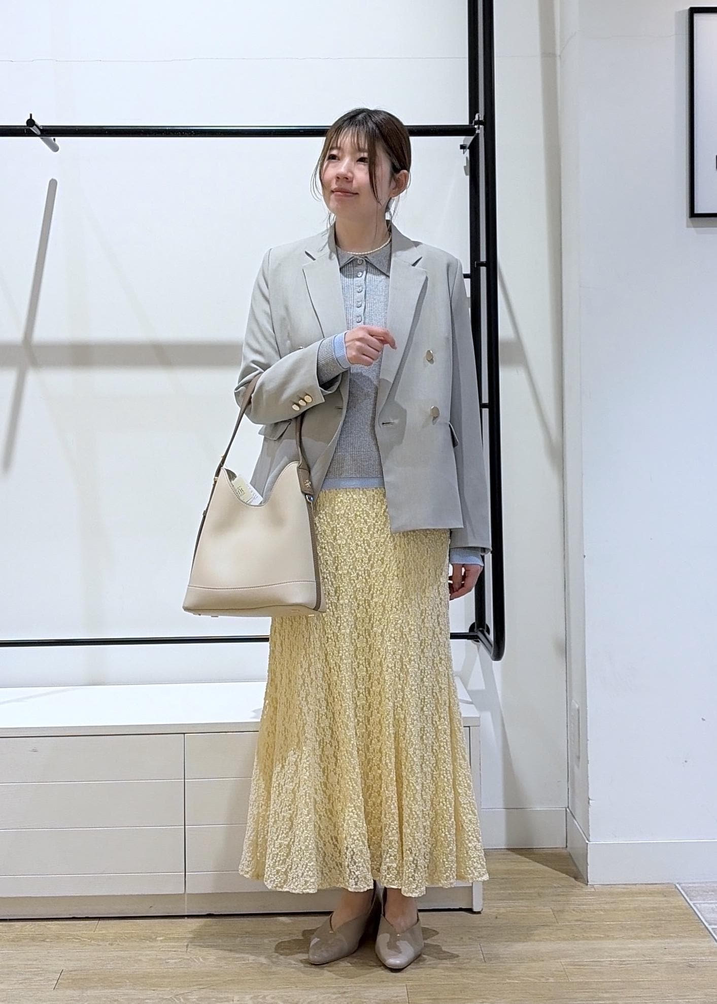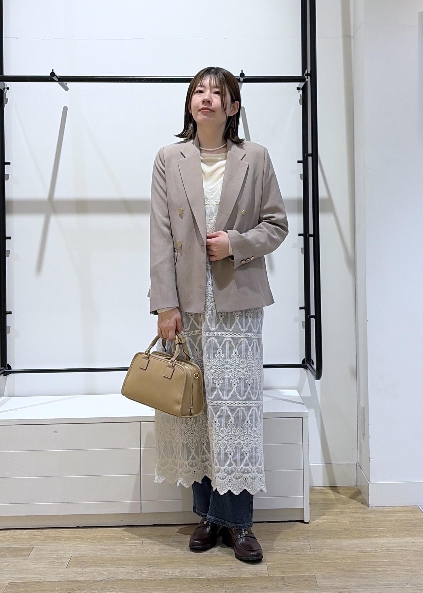 シャツの青色が優しい色なのでレイヤード使いしやすいです◎