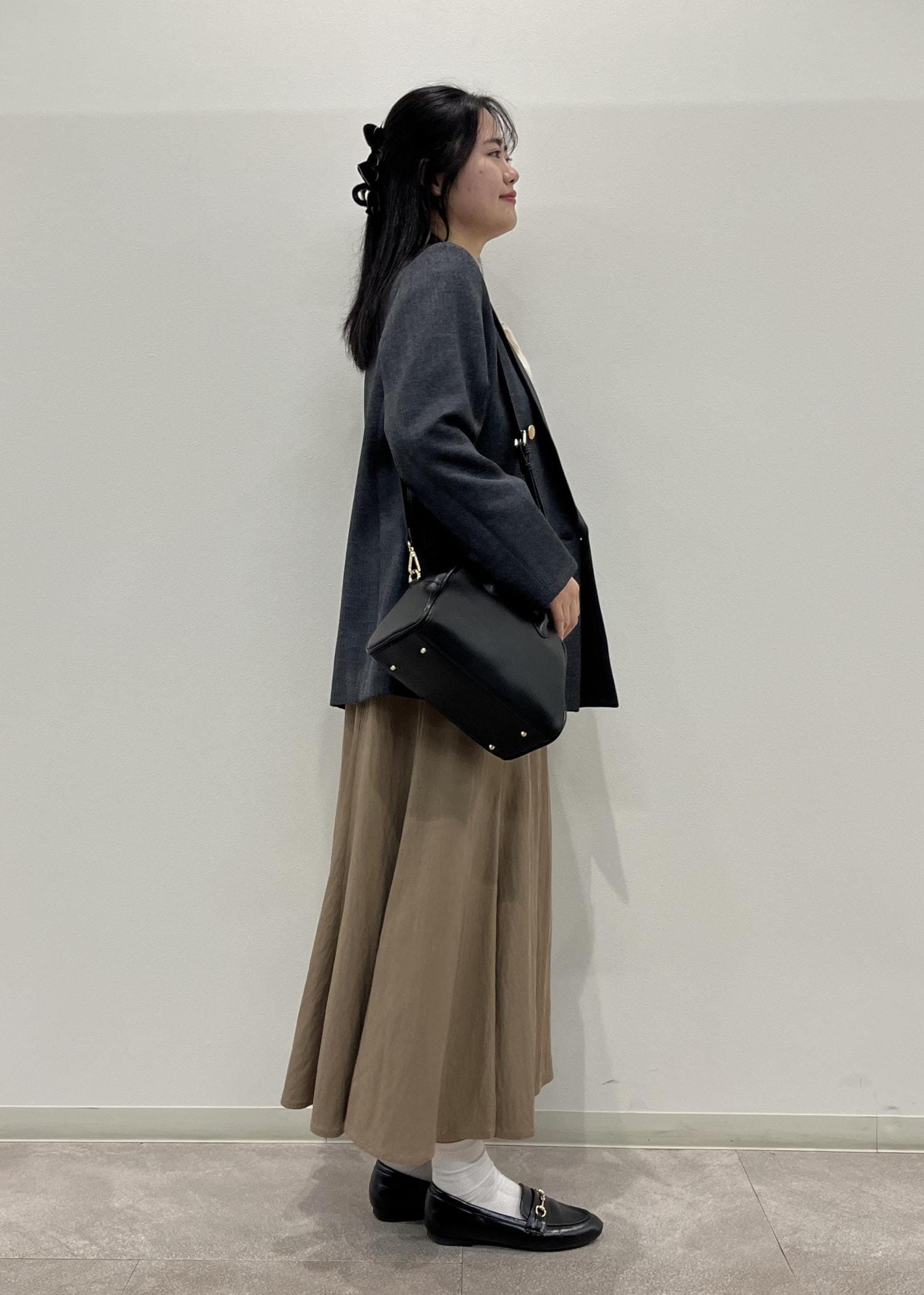 素材はレーヨンナイロンで軽めなのでフェミニンコーデだけでなくカジュアルコーデにも合わせやすいです。 -