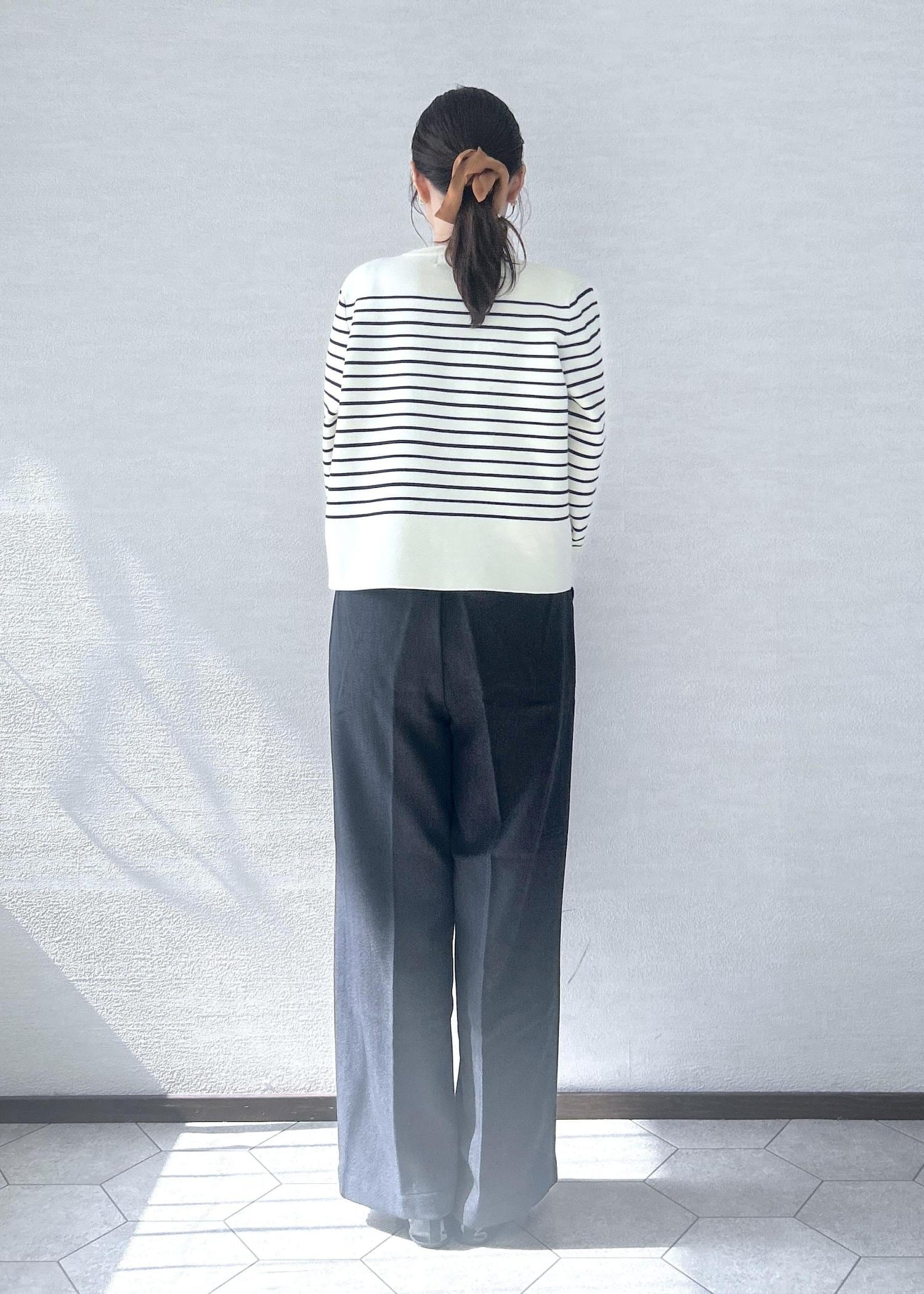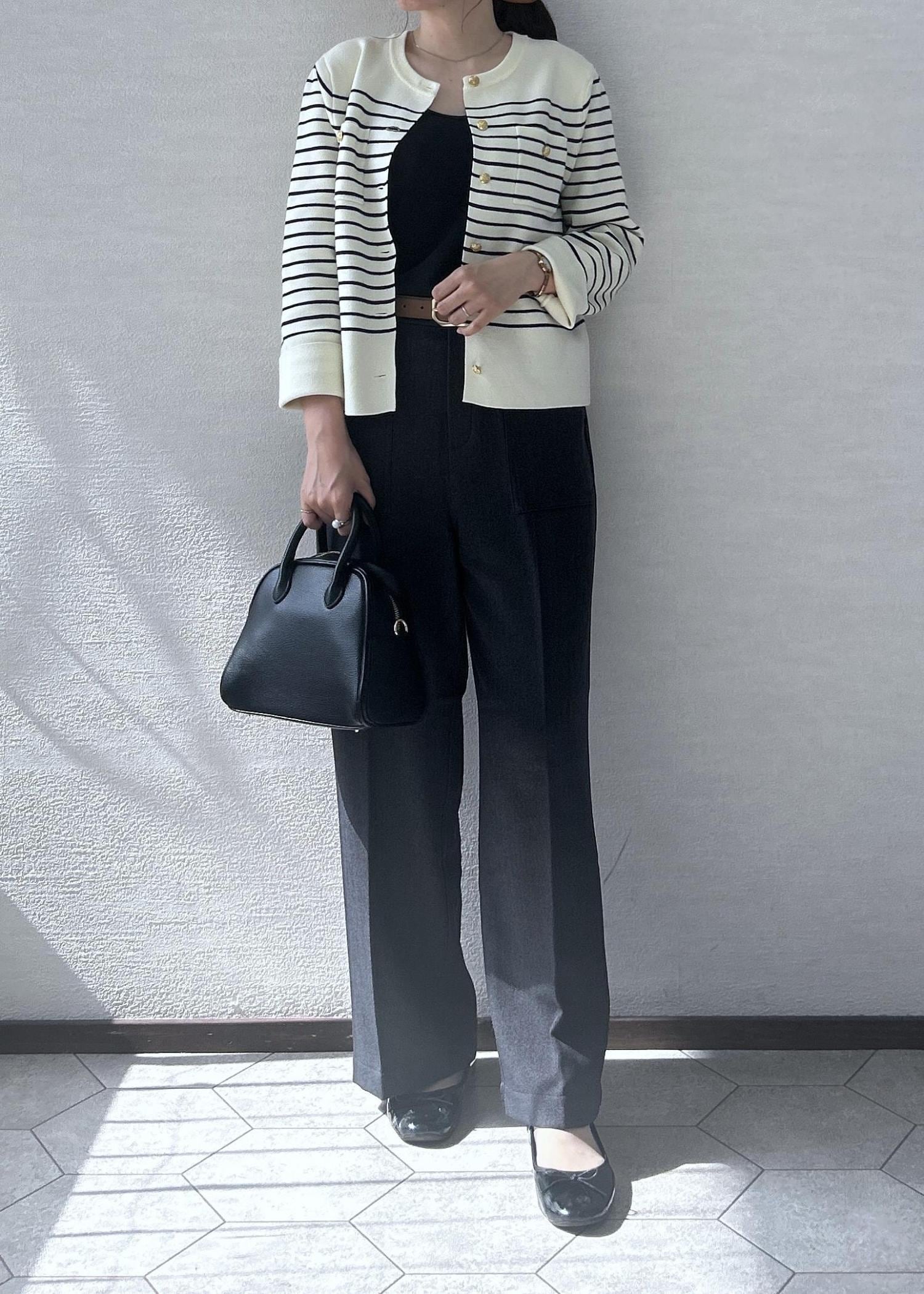 ジャケット見えするミラノリブカーディガンはオンオフで着られるデザインです!