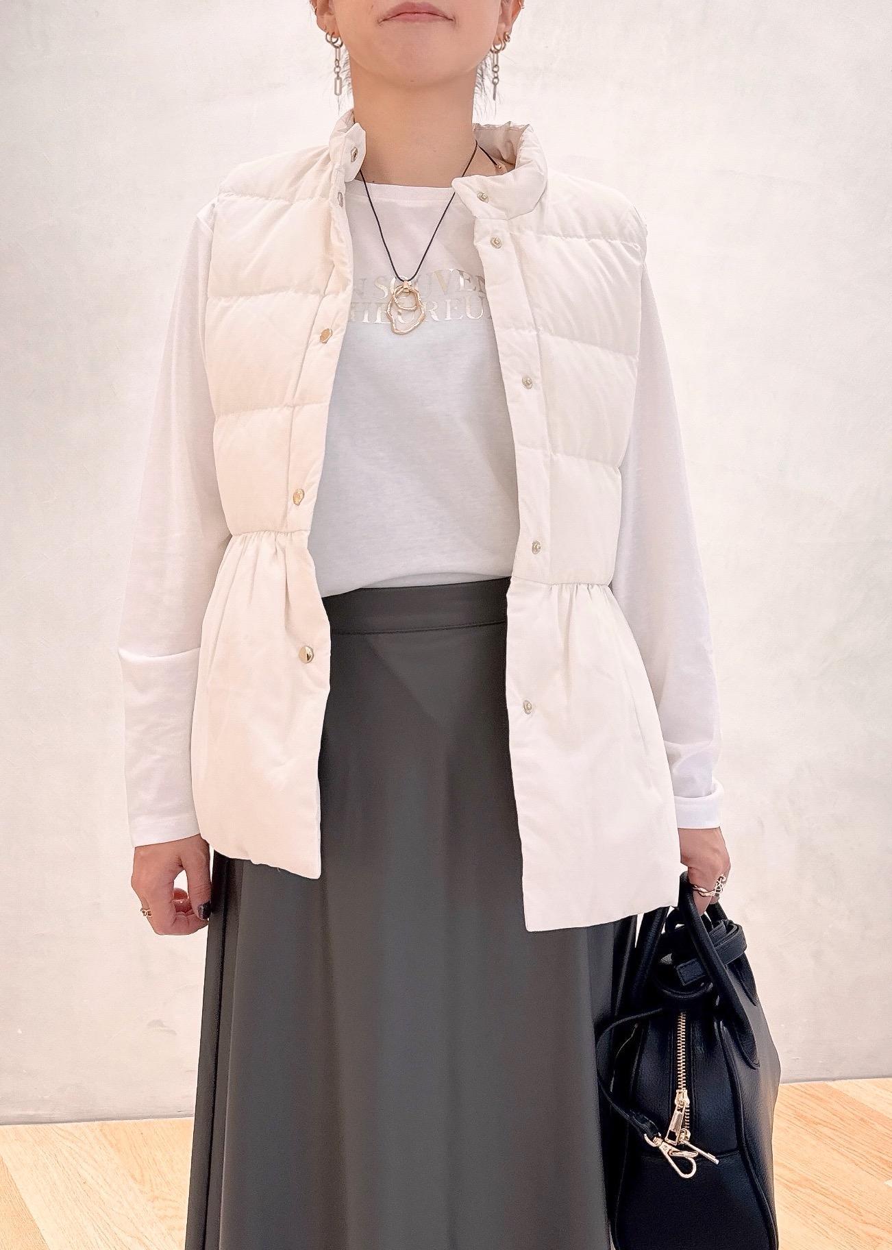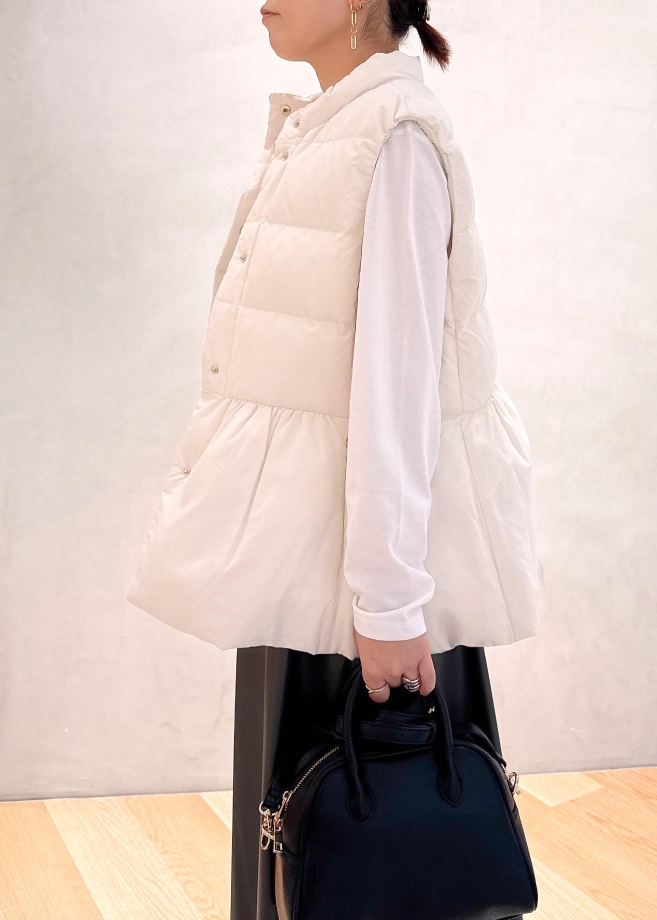ROPÉ PICNIC【GREEN DOWN/グリーンダウン】ペプラムダウンベストオフホワイト / F¥7,997レビュー旬のふんわりとしたペプラムデザイン。