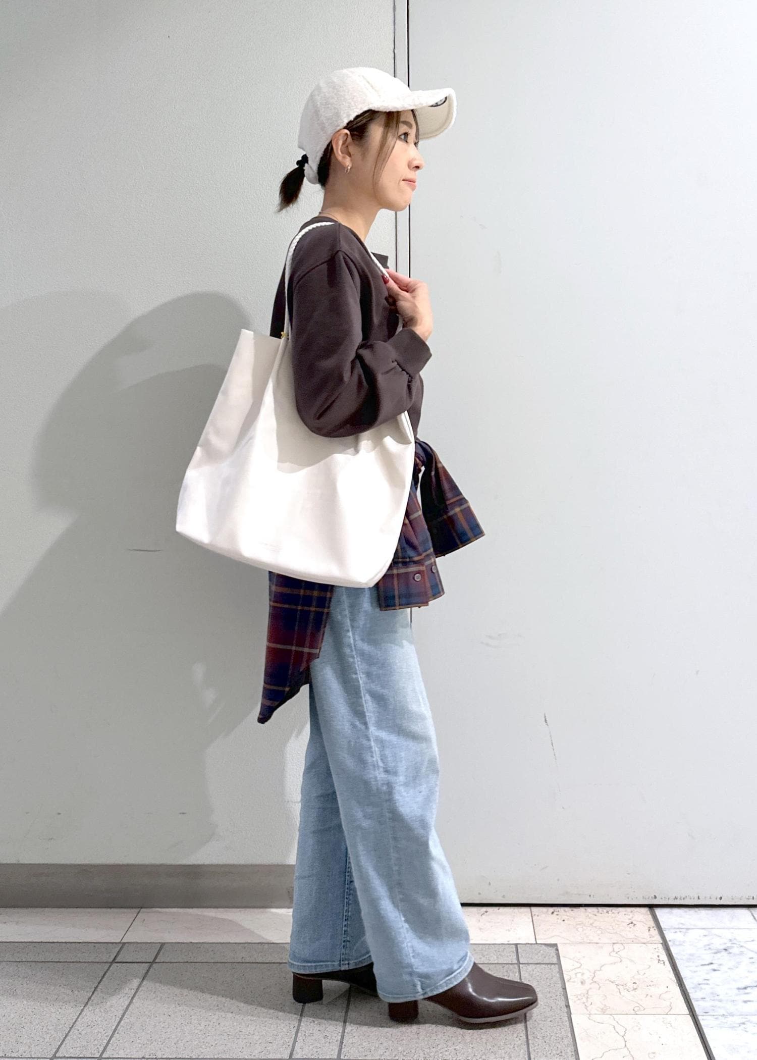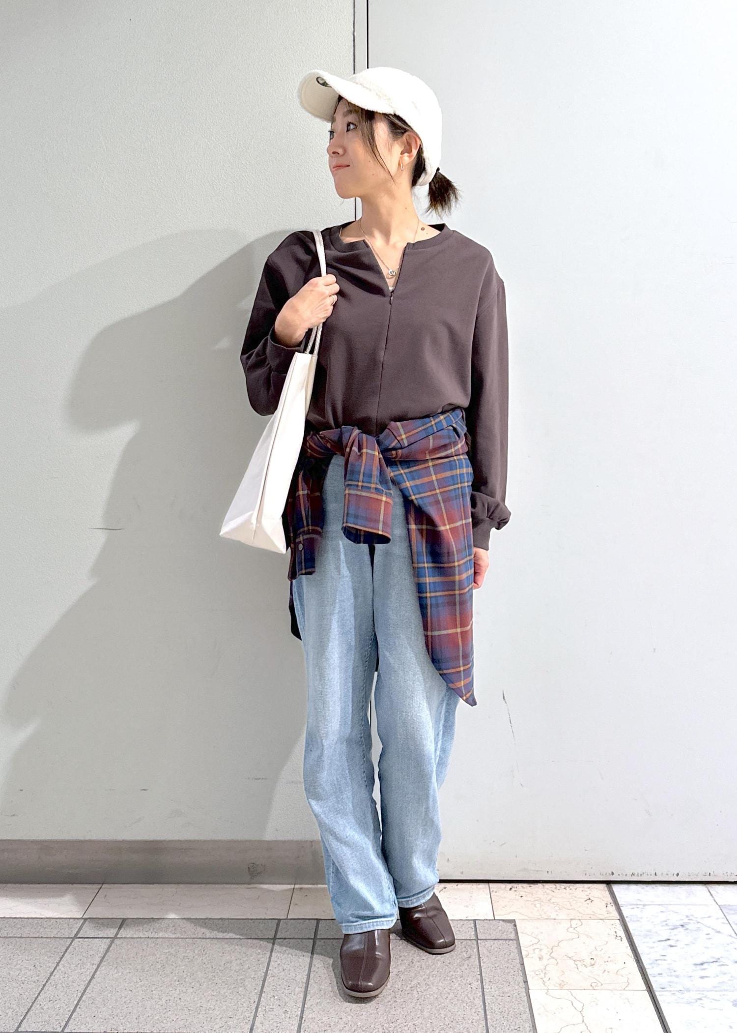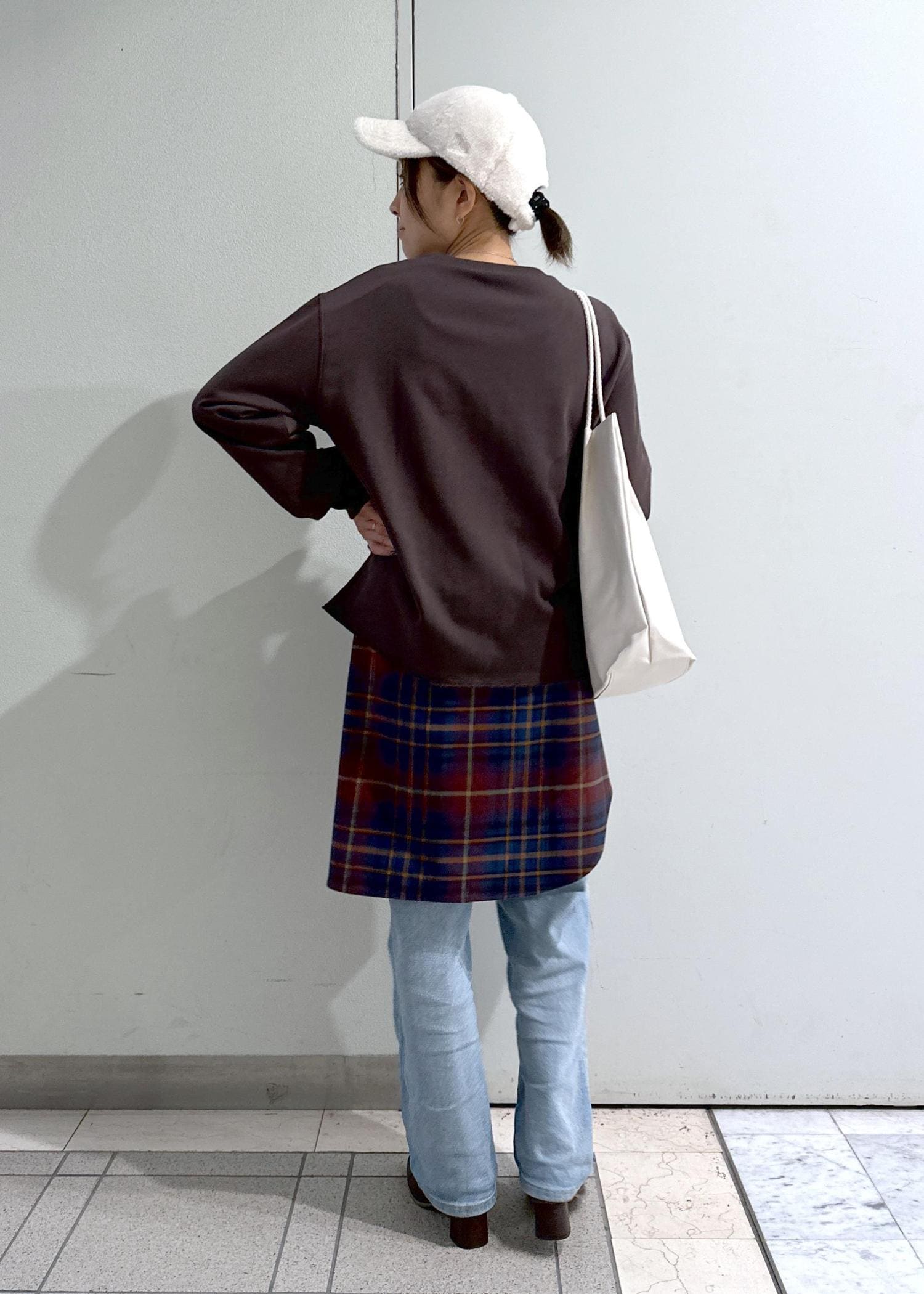 着丈もスッキリとしているので、スニーカーやフラットシューズの合わせもオススメです。 -