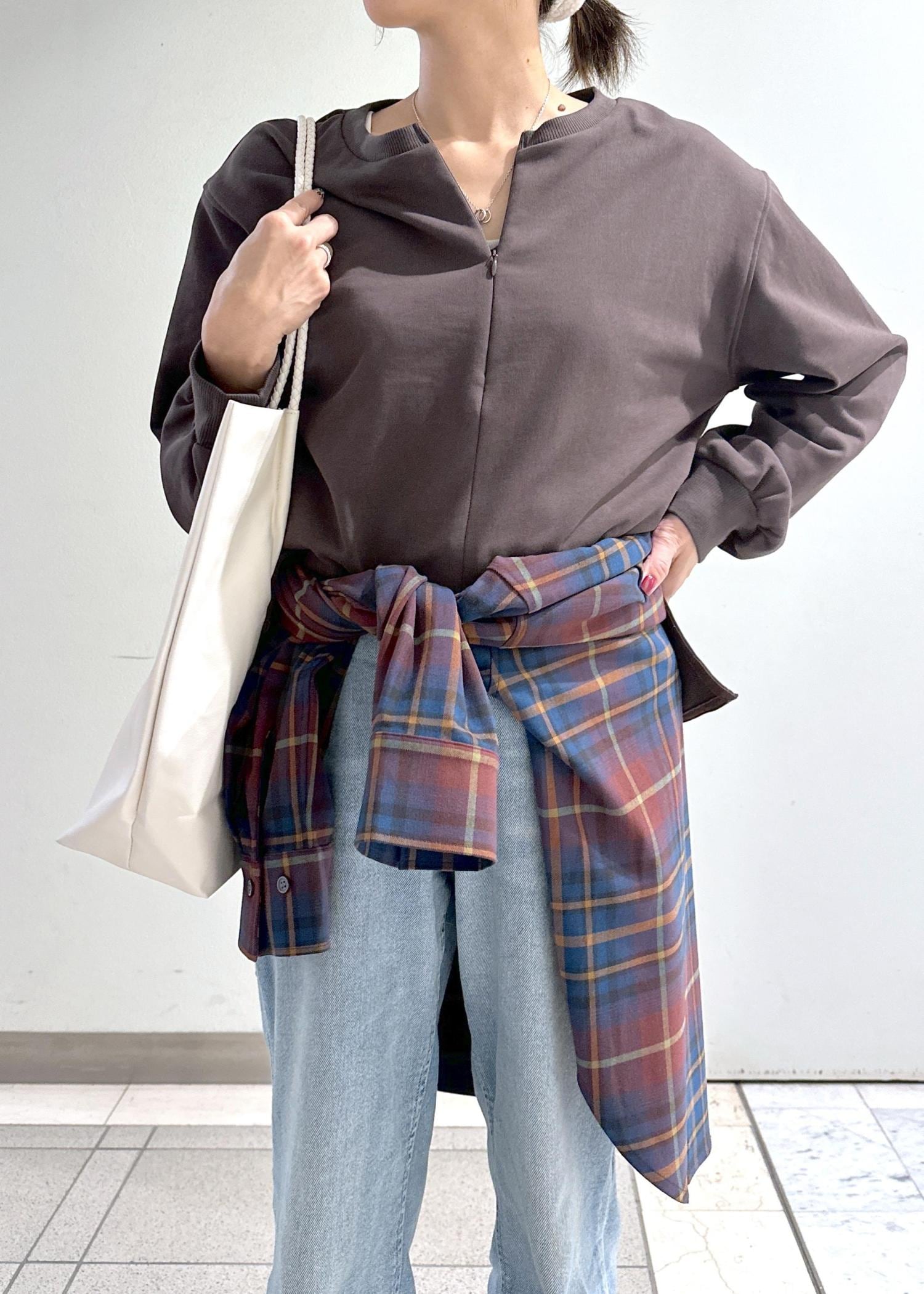 着丈はお尻が隠れる長さで、袖丈は手の甲が隠れます。 -