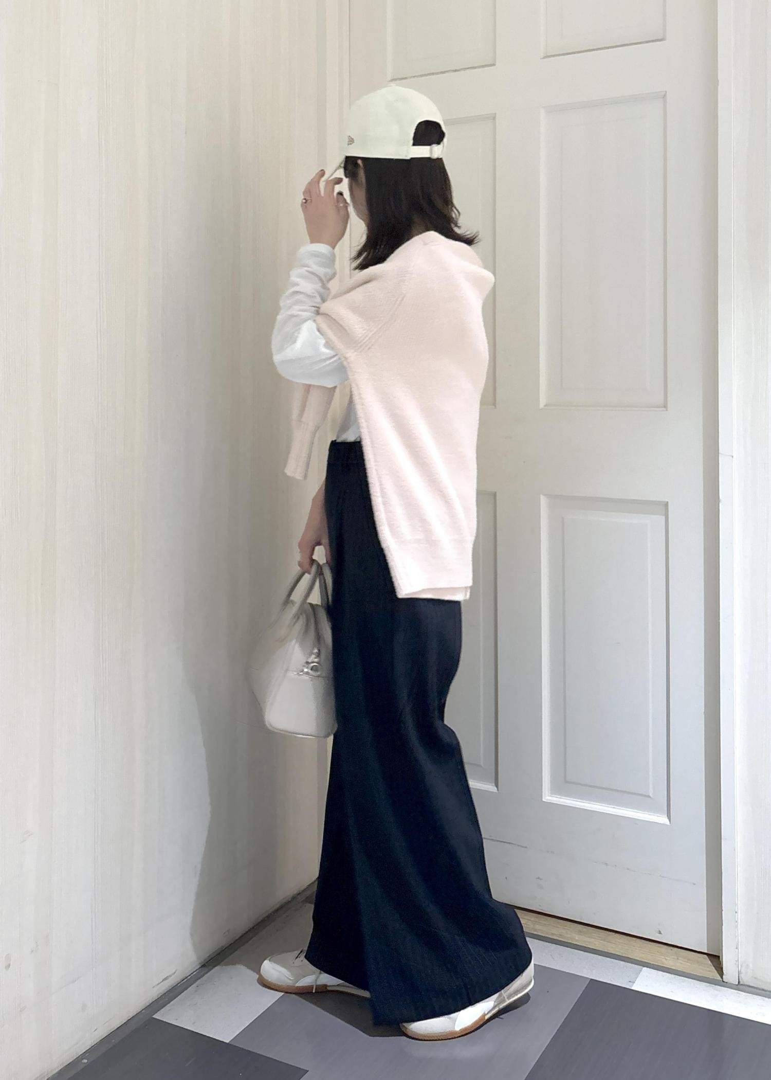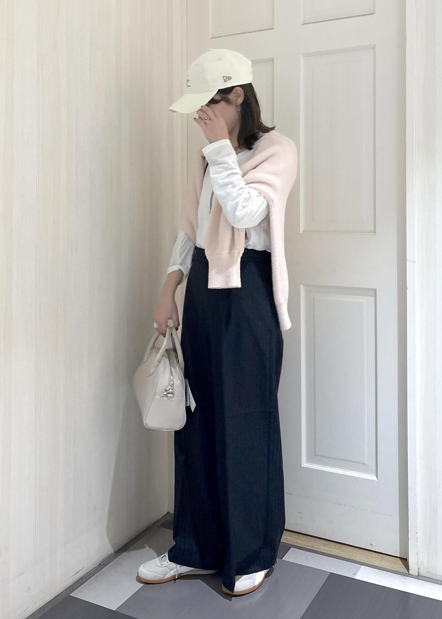 パンツはフレアのワイドパンツでスタイルアップ◎