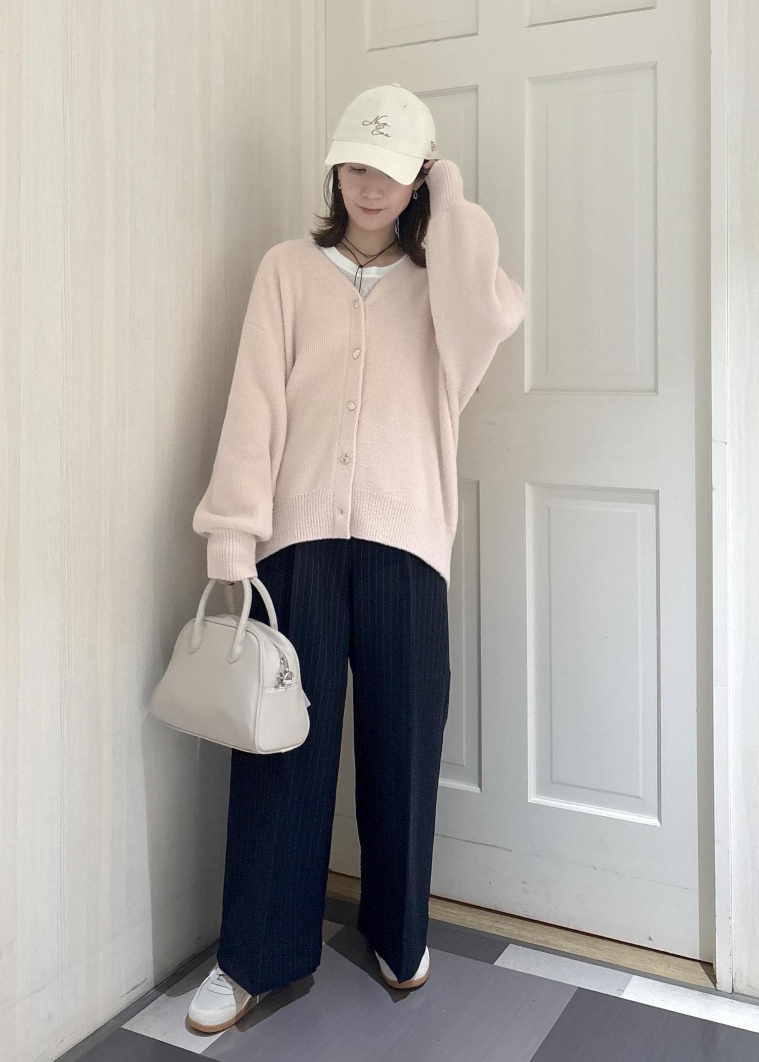 首元も浅めなVネックなので、ニットカーディガンで胸元が寂しくなりがちなのがお悩みの方におすすめです! -