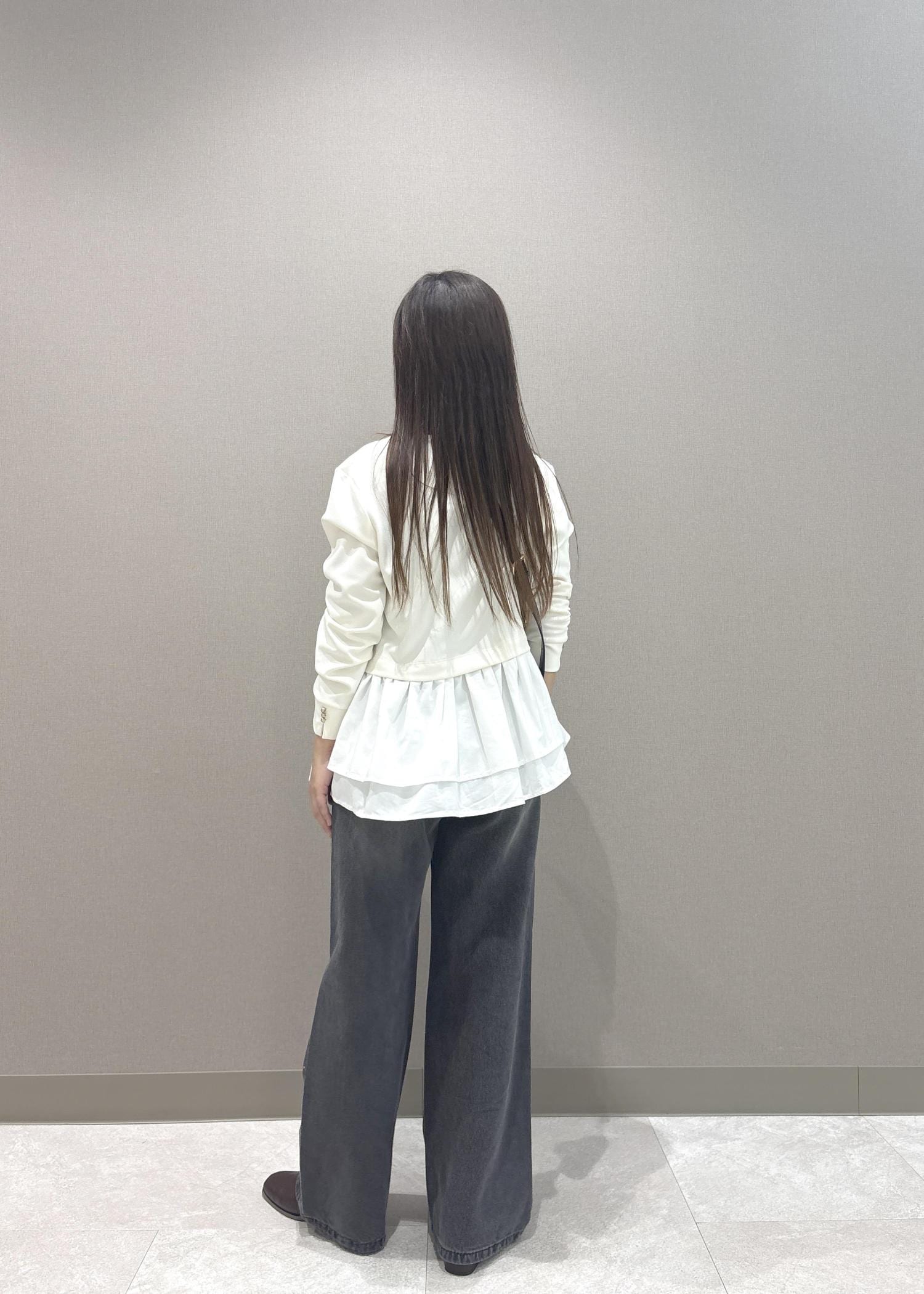 少し裾がフリルっぽく甘めですが、モノトーンで甘すぎない感じにしました。