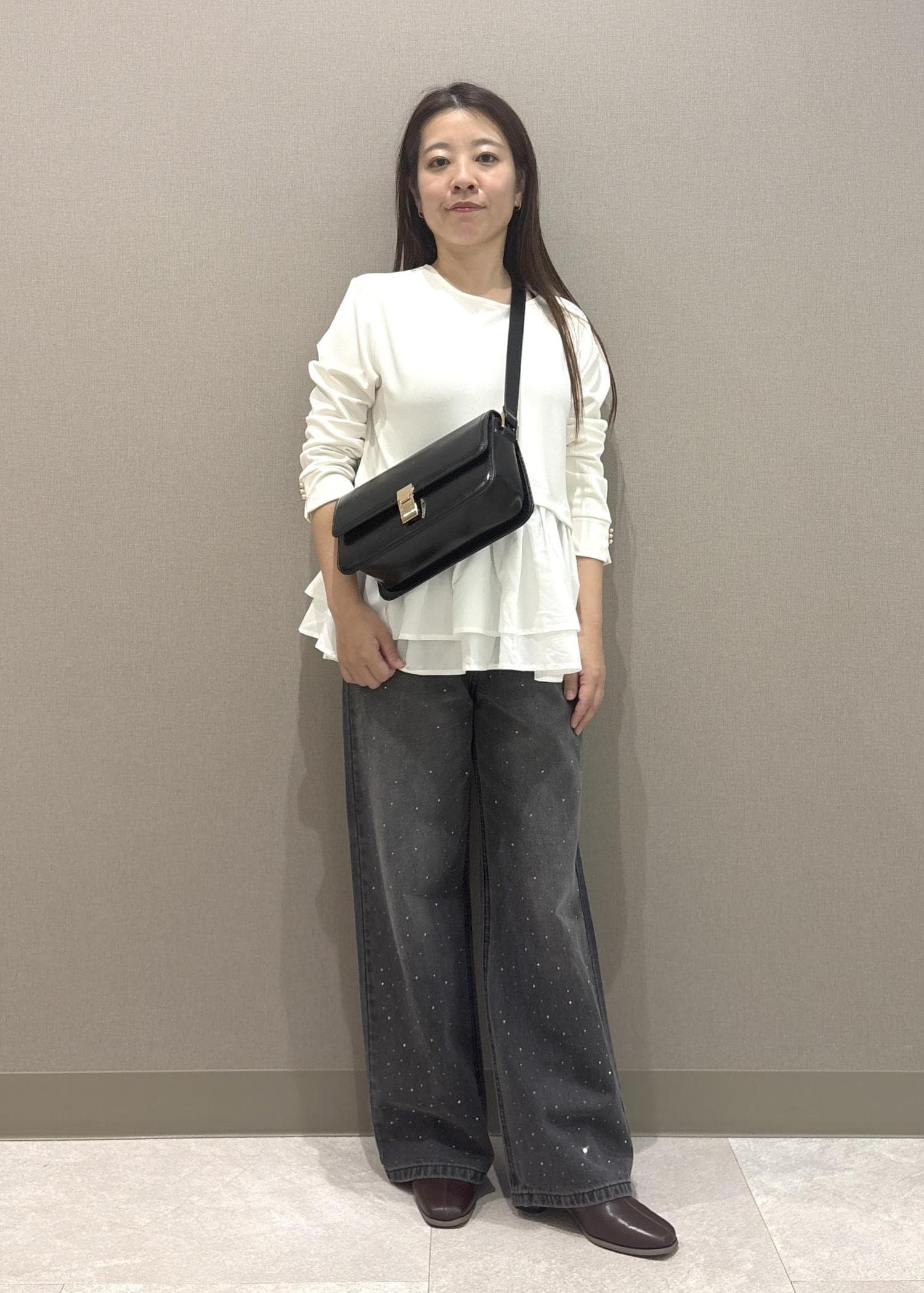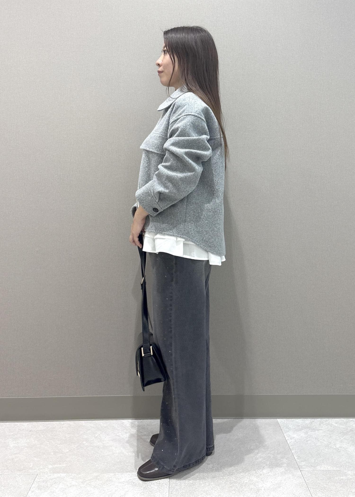 155cmMサイズ着用で、ヒールを合わせてちょうどいいので、少し丈長めです。 -