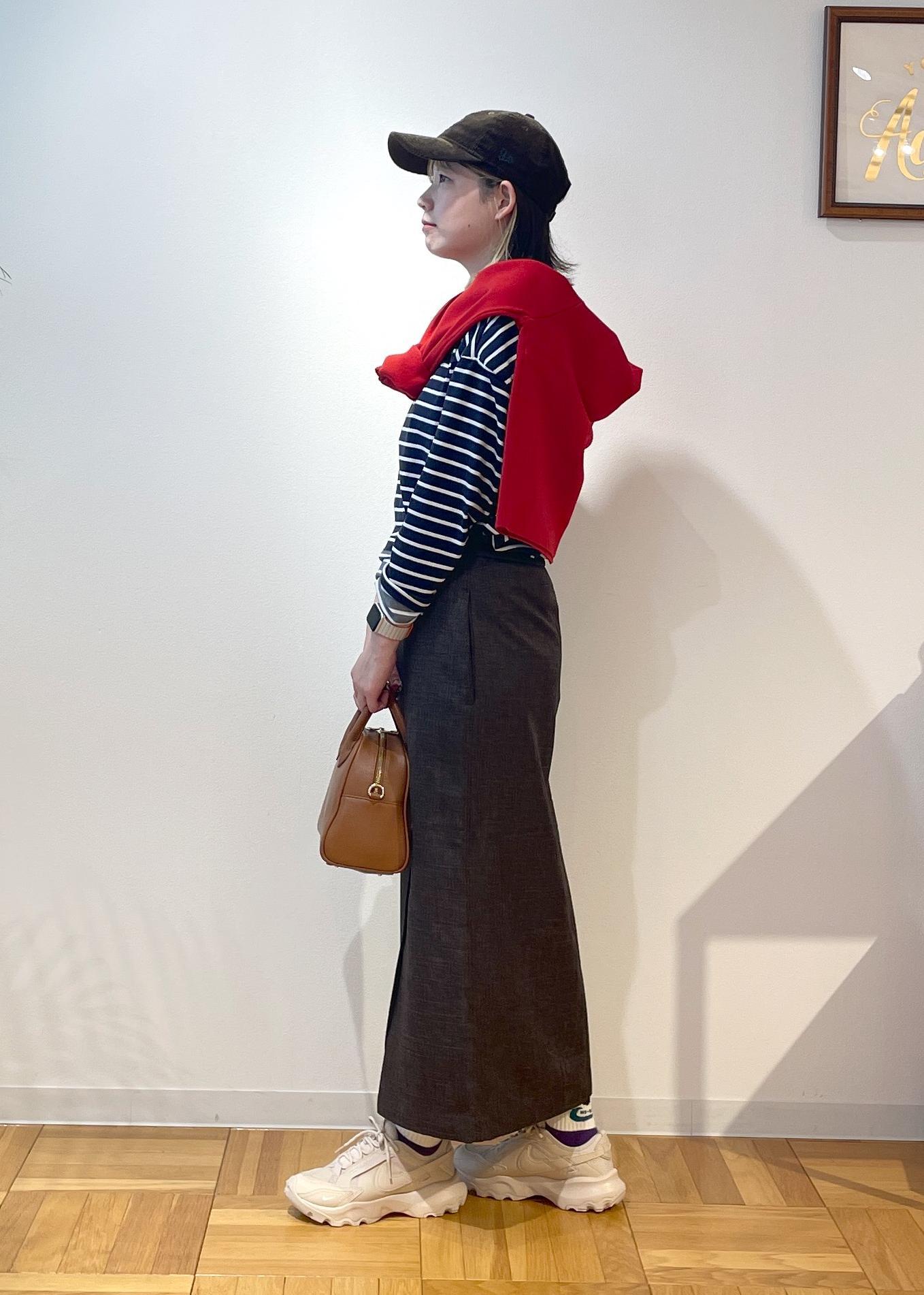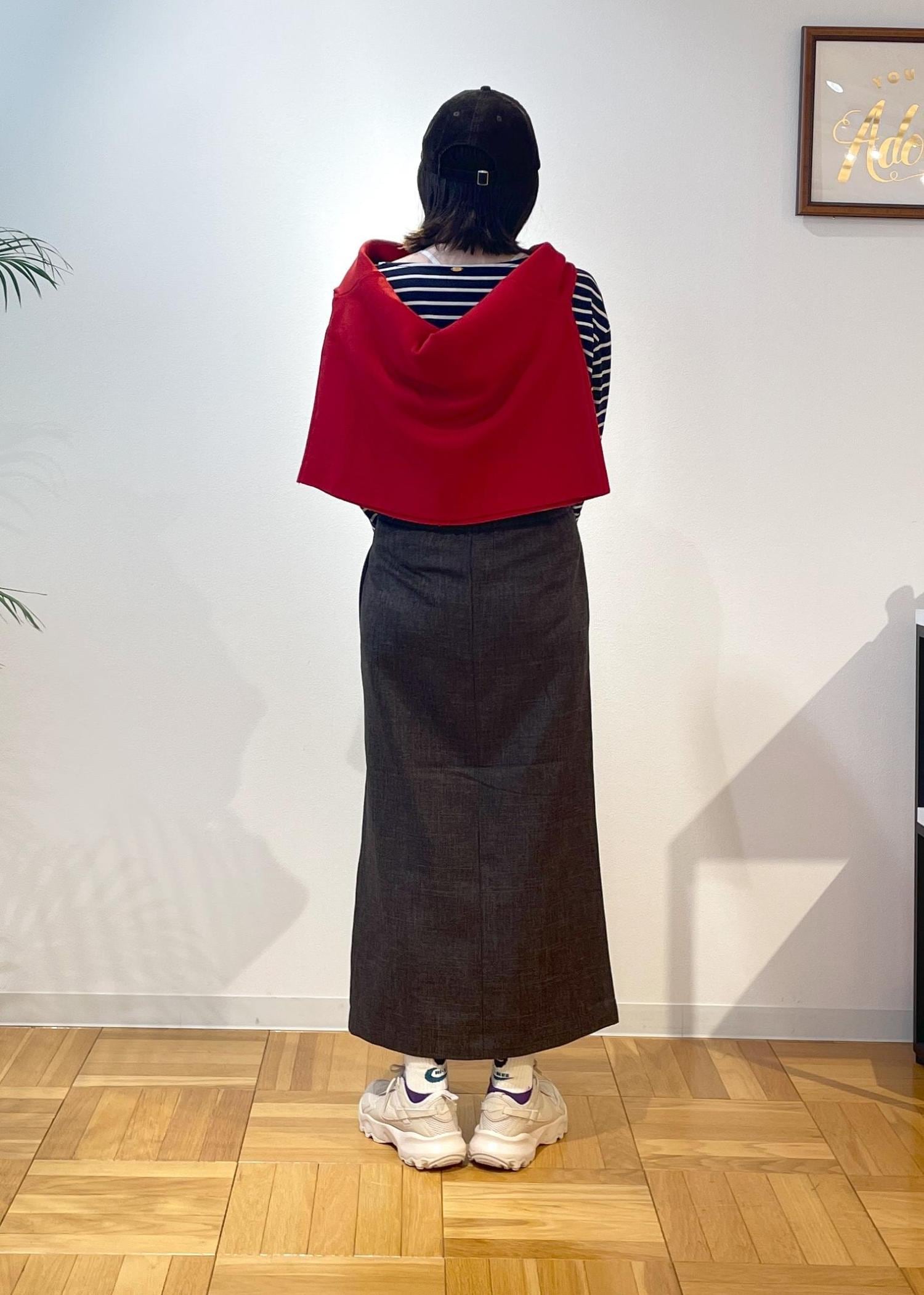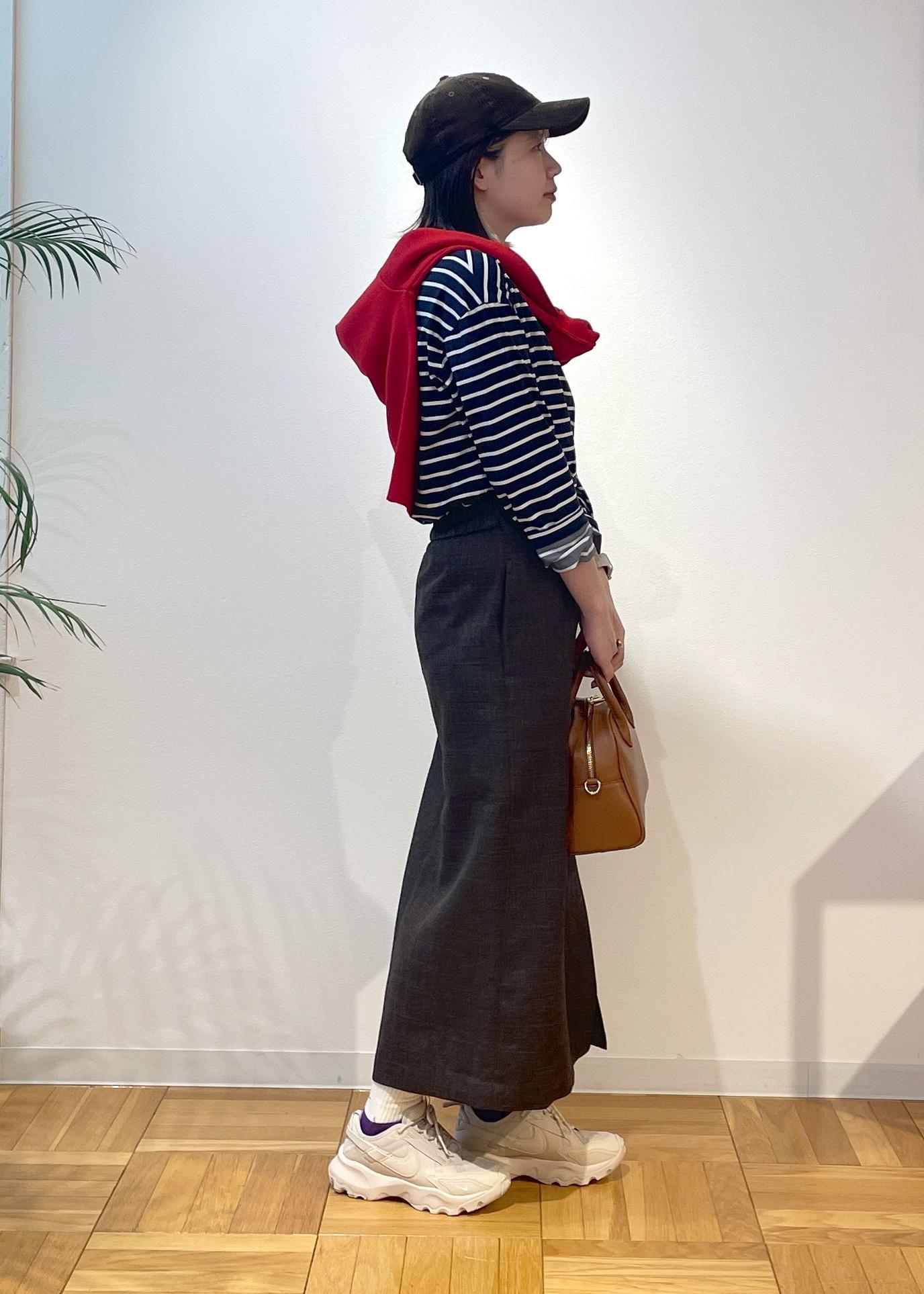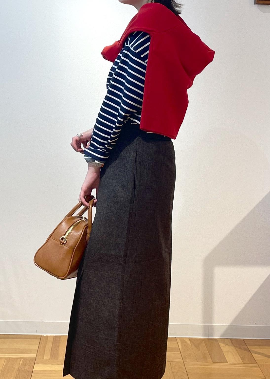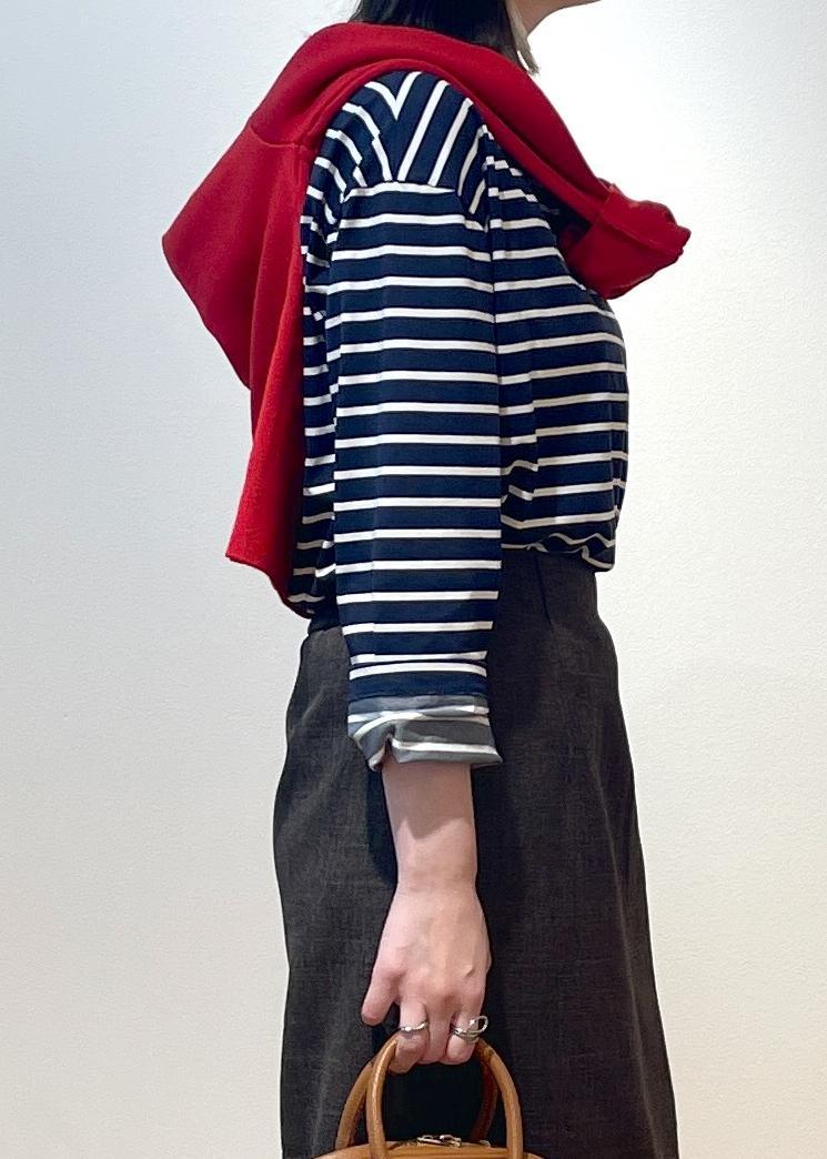 キレイめな形のスカートですが、オフで大人カジュアルに着たい!と思いボーダー柄と合わせてみました◎