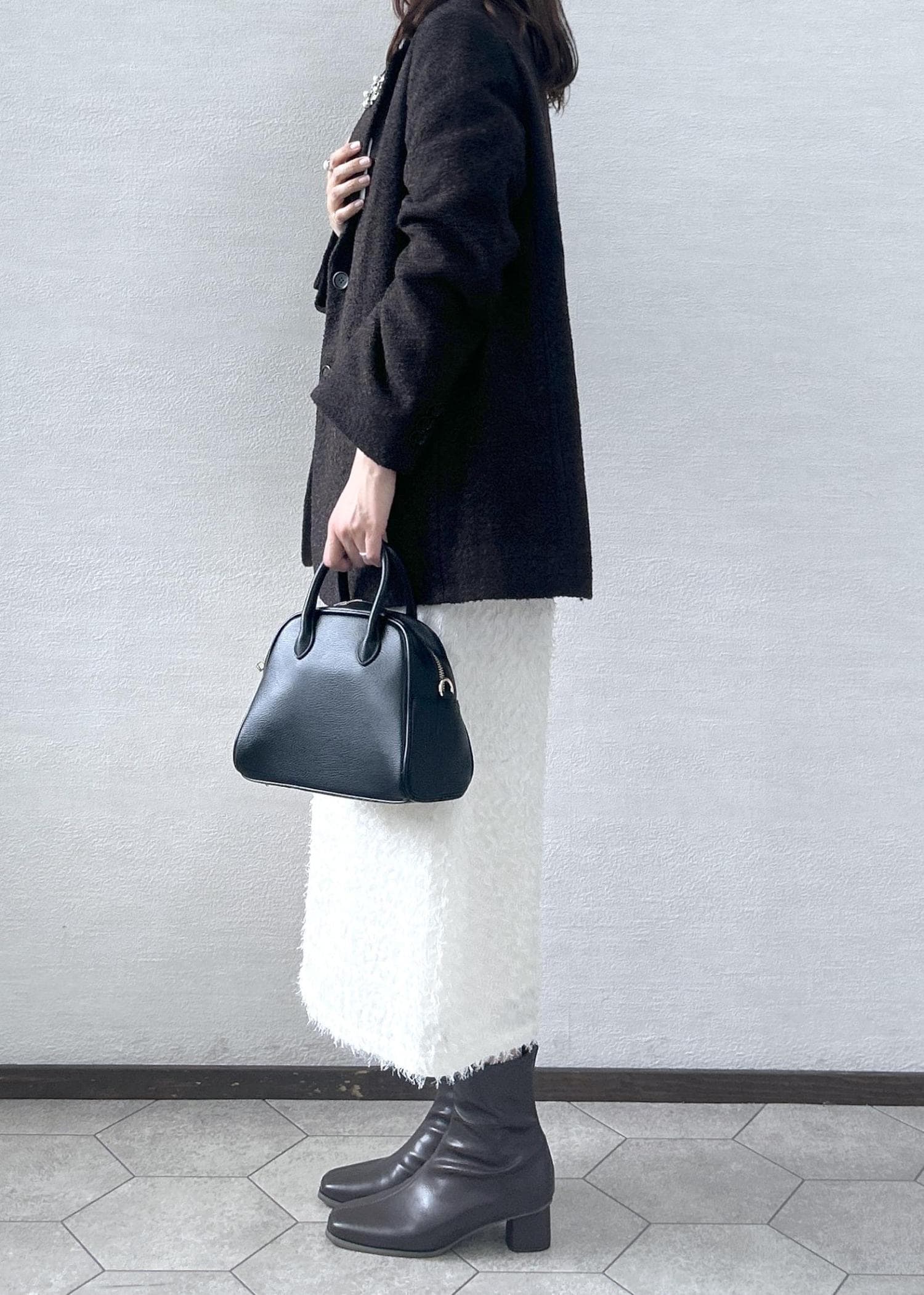 丈は足首がすっきり見える長さですので、ブーツと合わせてもバランス良いです。 -