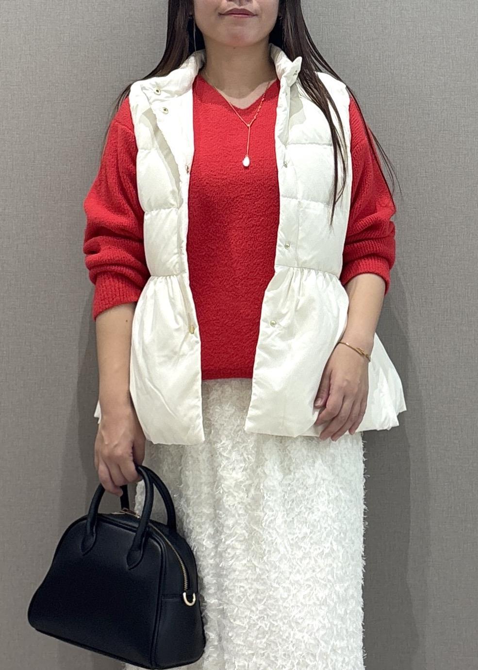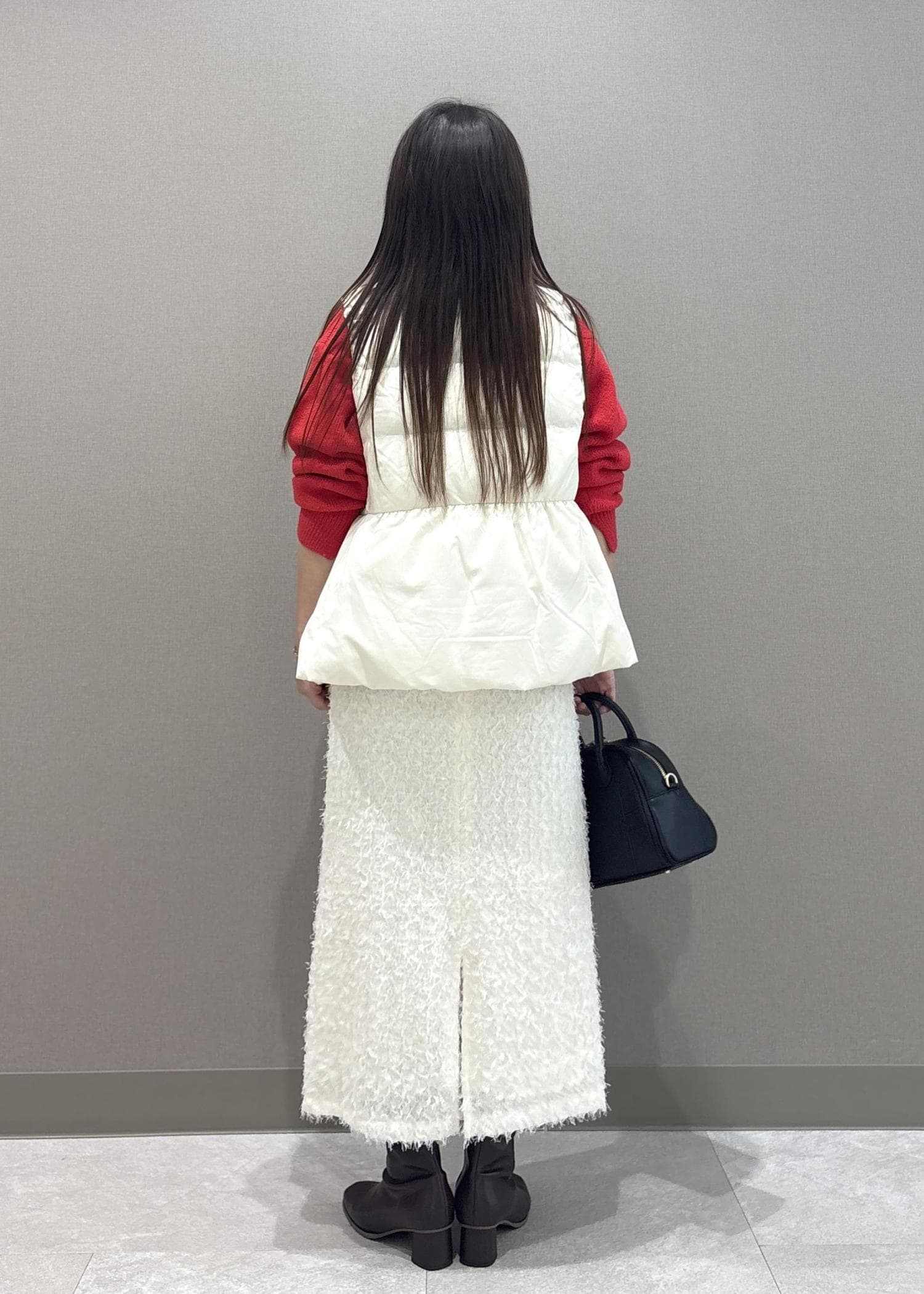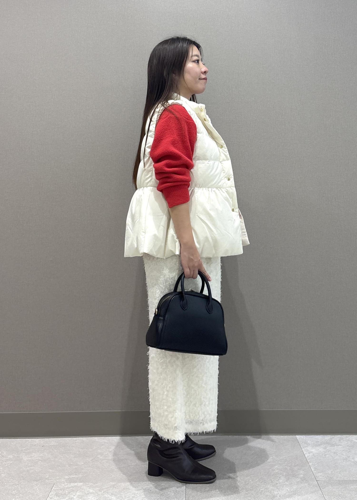 ペプラムデザインなので、ダウンベストでもカジュアル過ぎない印象になっています。 -