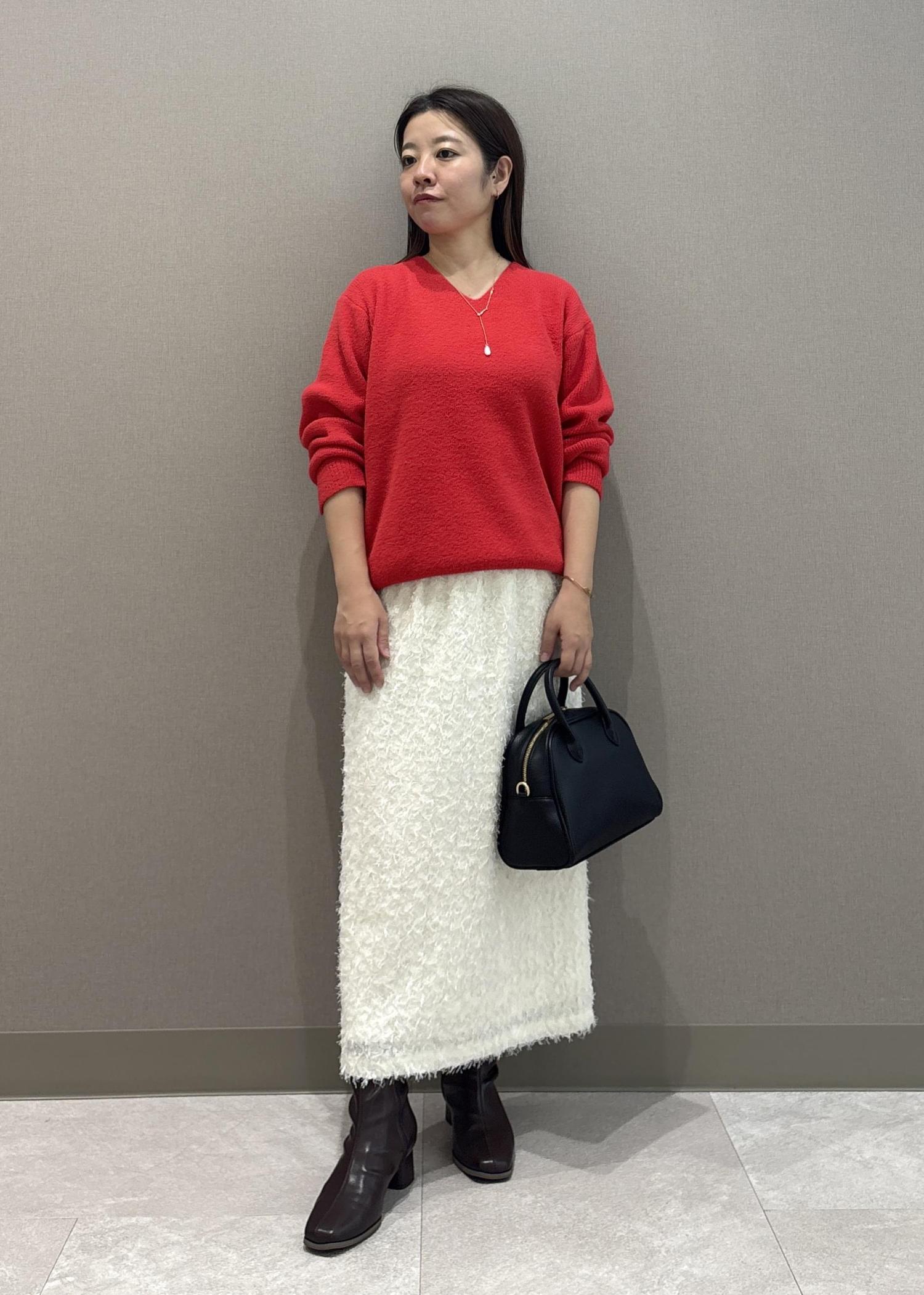 ゆったりしていますが、Vネックなのでスッキリ見せが叶います。 -