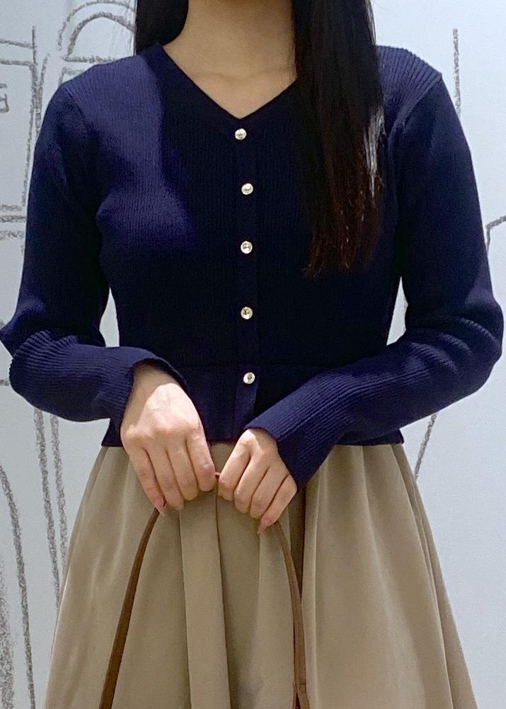 ニット生地が体にピタッとフィットするので、体のラインが出やすいです。 -