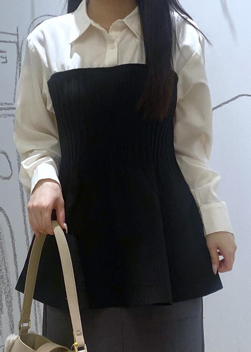 ROPÉ PICNICシャツドッキングペプラムニットブラック / F¥5,995レビュードッキングされてるので1枚でオシャレに決まるアイテムです♪