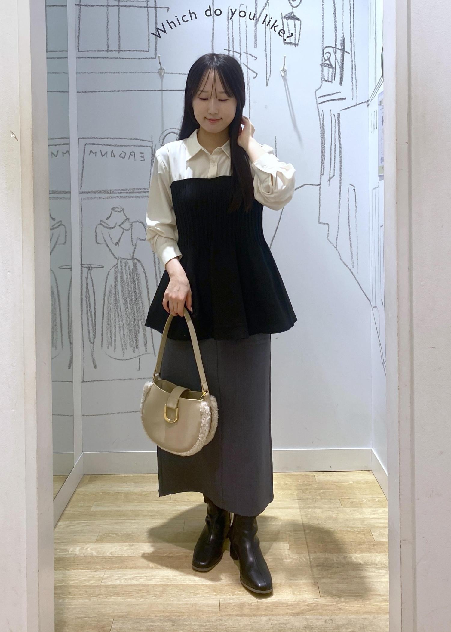 ペプラムシャツにタイトスカートを合わせることで大人っぽいお姉さんコーデにしました。