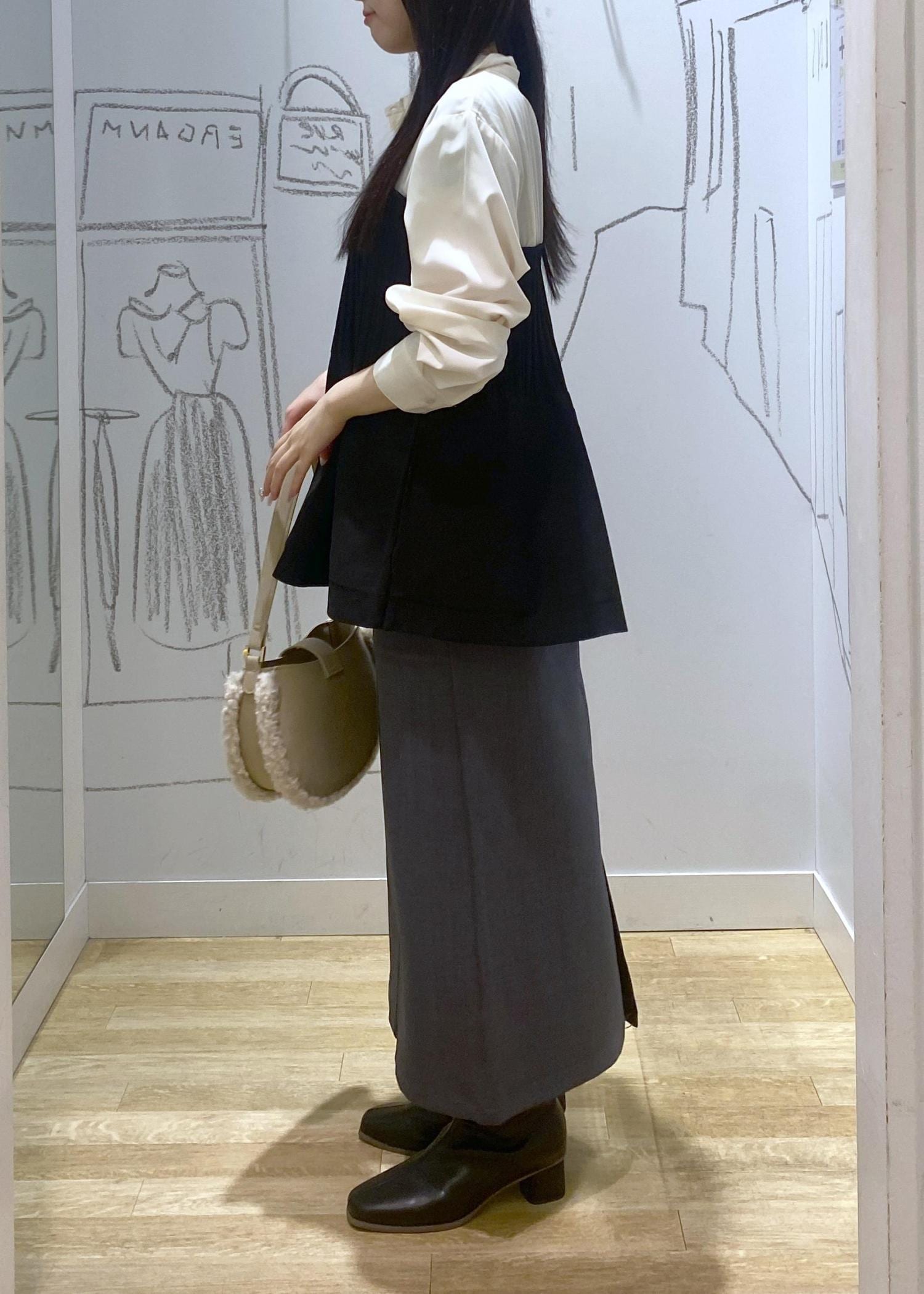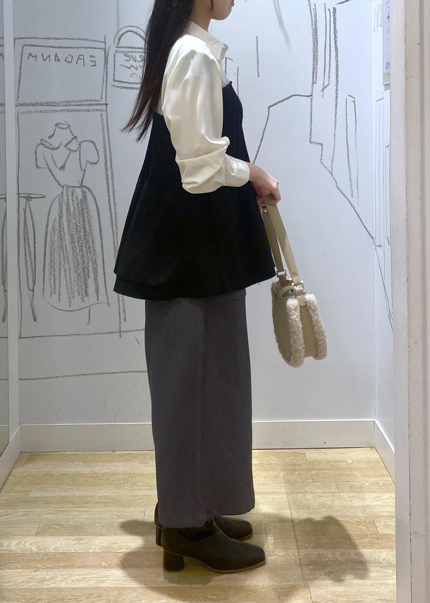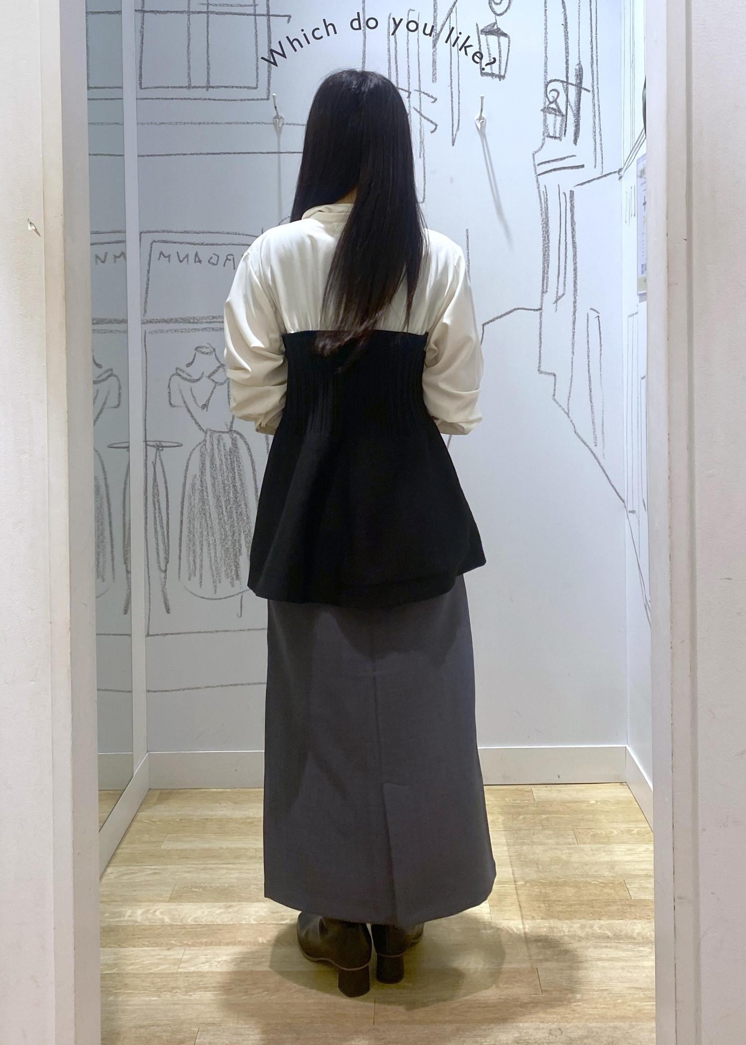 タイトスカートを履くと骨盤が気になる方は裾が広がっているペプラムと合わせていただくと腰回りが隠れてスタイルアップにもなります♪