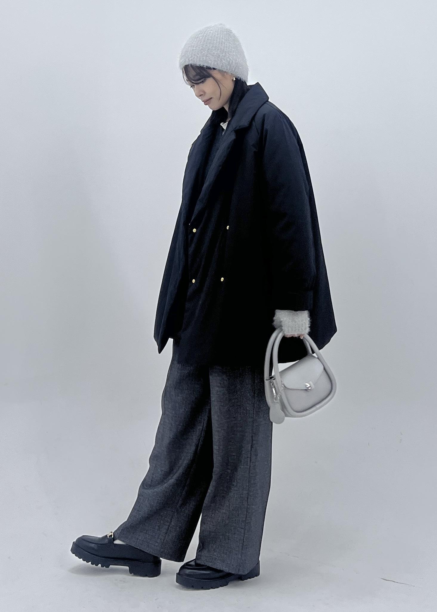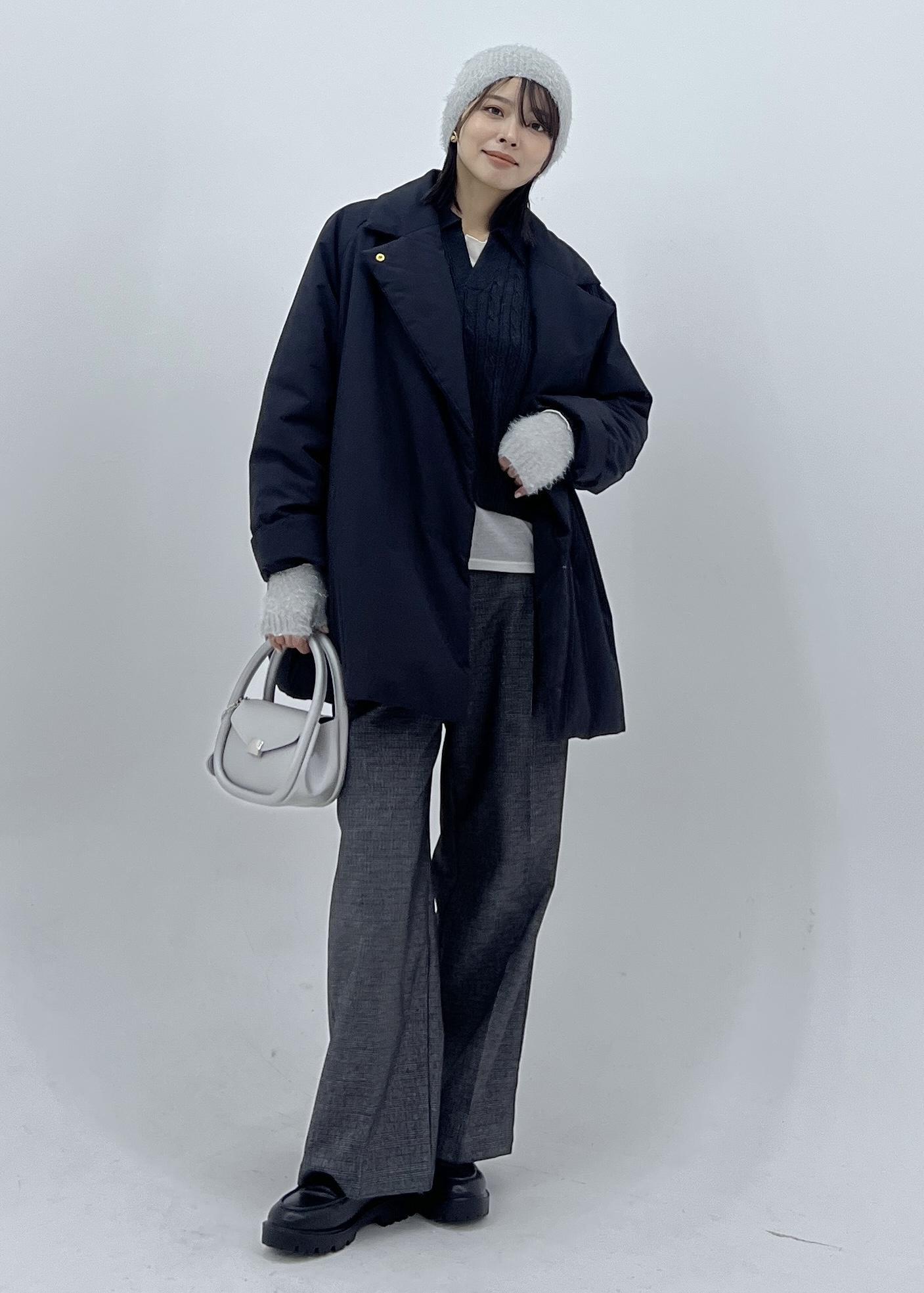 軽く羽織りやすい中綿アウターはゆったりシルエットで、冬ニットの上からも羽織りやすいアイテム。
