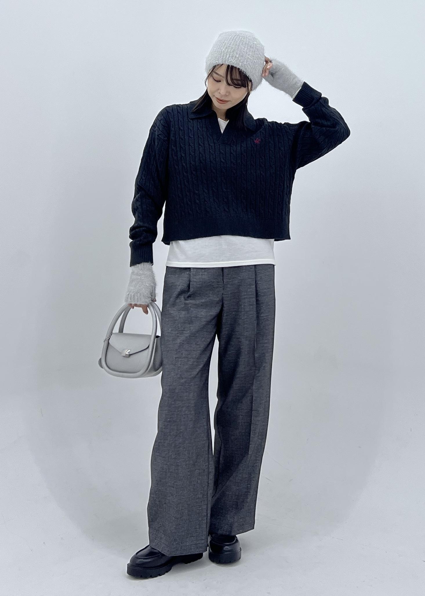 NEW!ROPÉ PICNIC【BEVERLYHILLS POLO CLUB・新色追加】ケーブル編みクロップドスキッパーニットチャコール / F¥5,995レビュー柔らかいレーヨン、ポリエステル混合のニット生地で、チクチク感なく着やすい素材感。