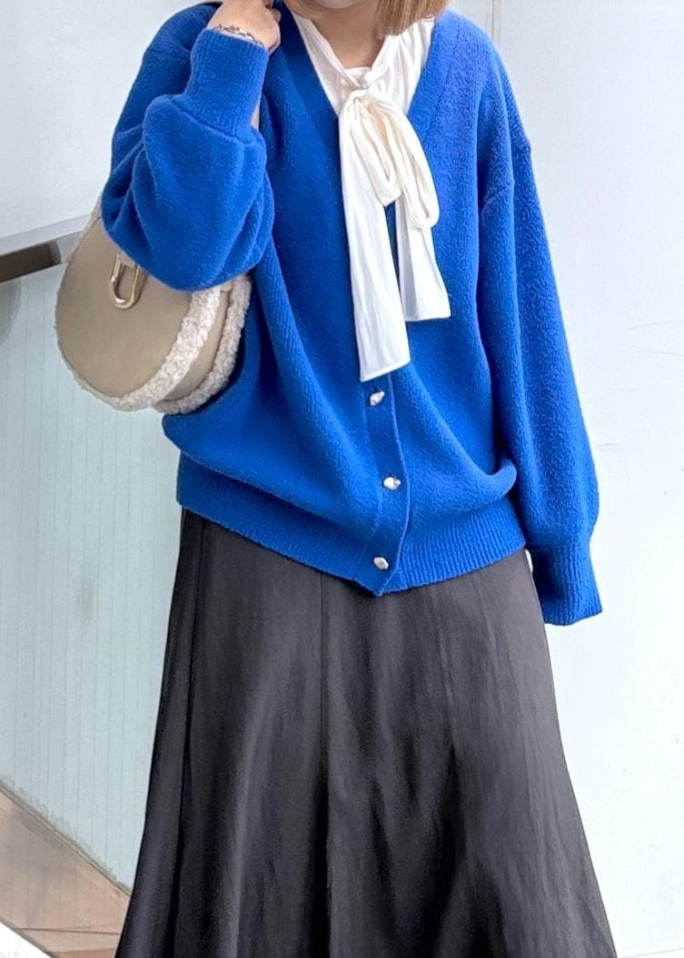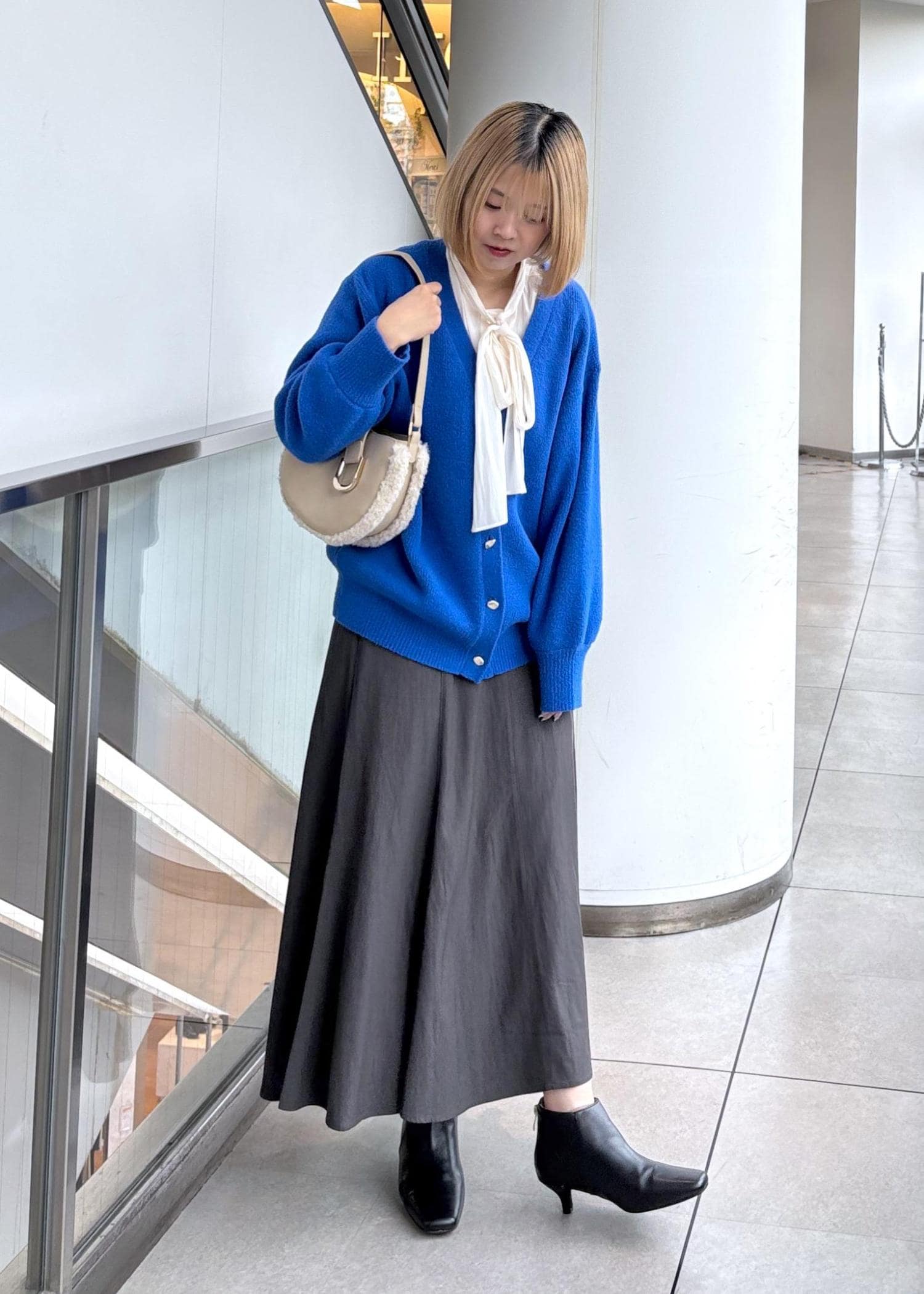 人気のスフレニットシリーズのカーディガンを使用した綺麗めコーデにしてみました☺︎