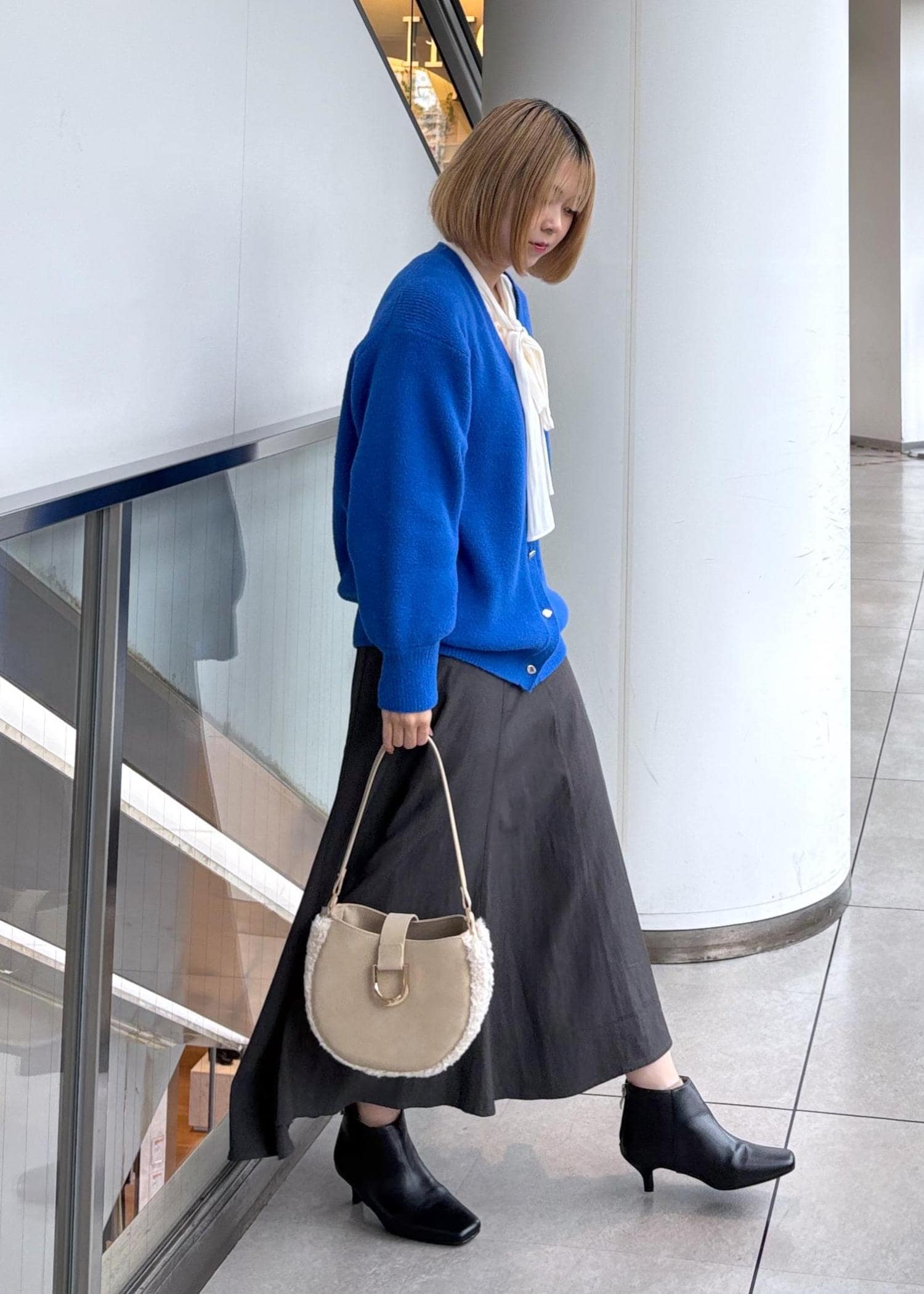バッグは、ふわふわのボアが季節感を出してくれるので、これから秋冬コーデにも合わせやすいデザインです☺︎