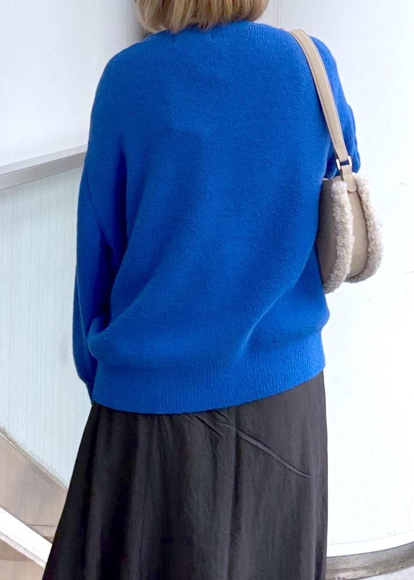 こちらのカーディガンは丈が長めなので、腰回りをカバーしてくれるサイズ感です。
