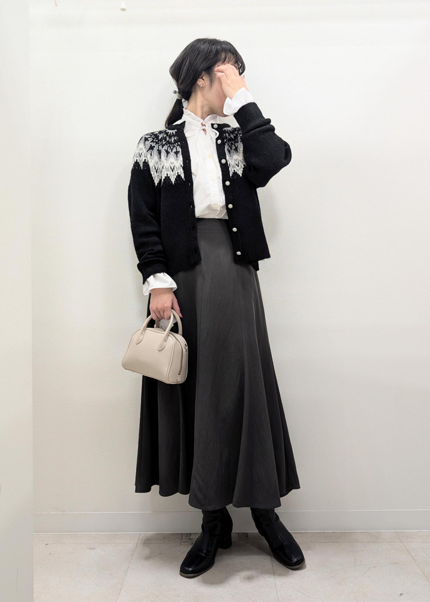アイラインスカートなら甘さ控えめで大人っぽさのあるコーデに◎。