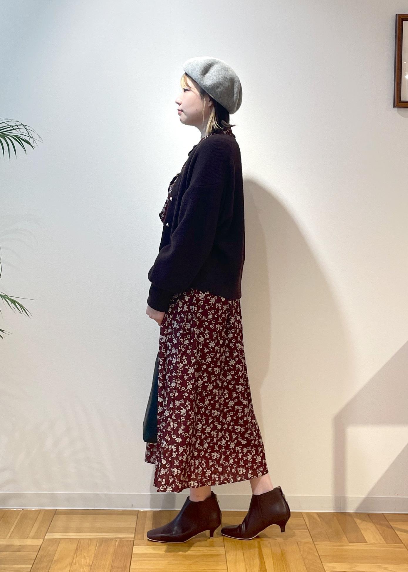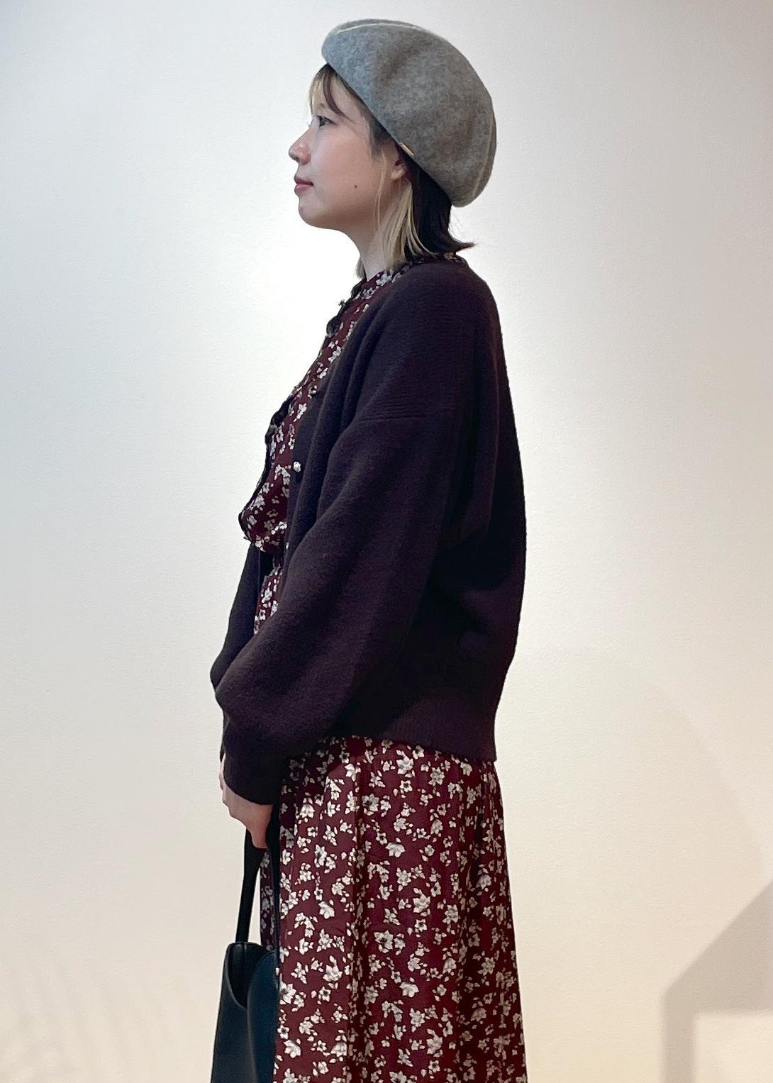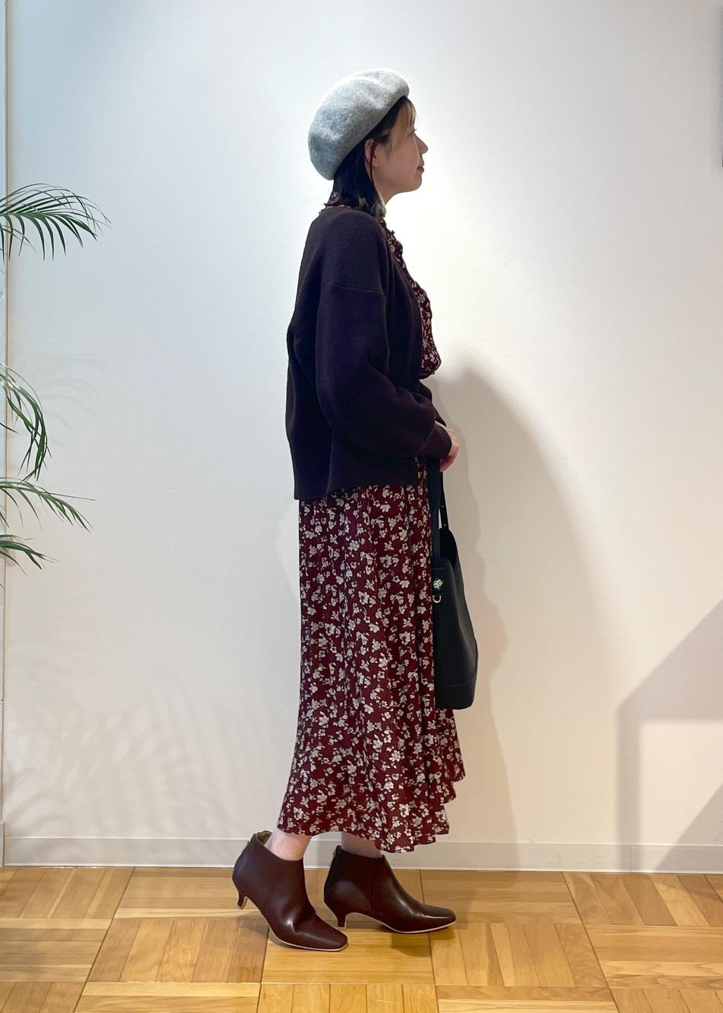 若干赤みのかかったブラウンなので、カーディガンをブラウンに合わせても統一感があってオススメです♩