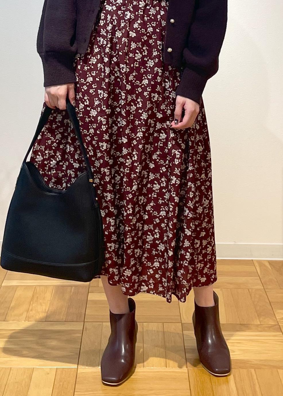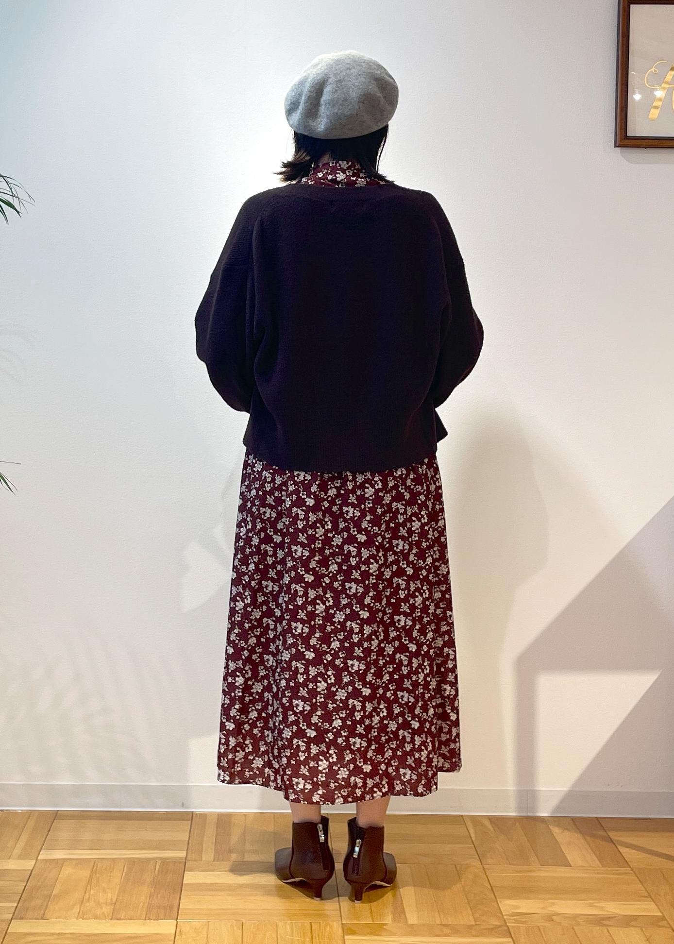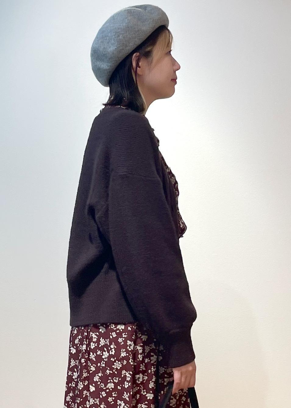 若干赤みのかかったブラウンなので、カーディガンをブラウンに合わせても統一感があってオススメです♩