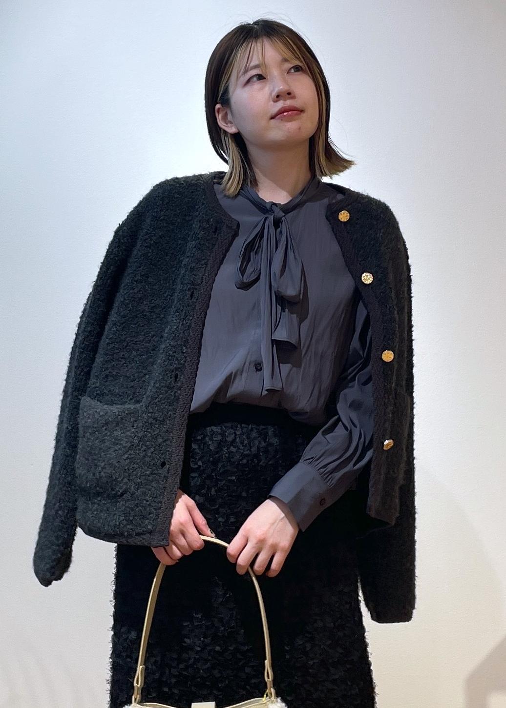 金ボタンがアクセントになるので、とめて着用もオススメです! -