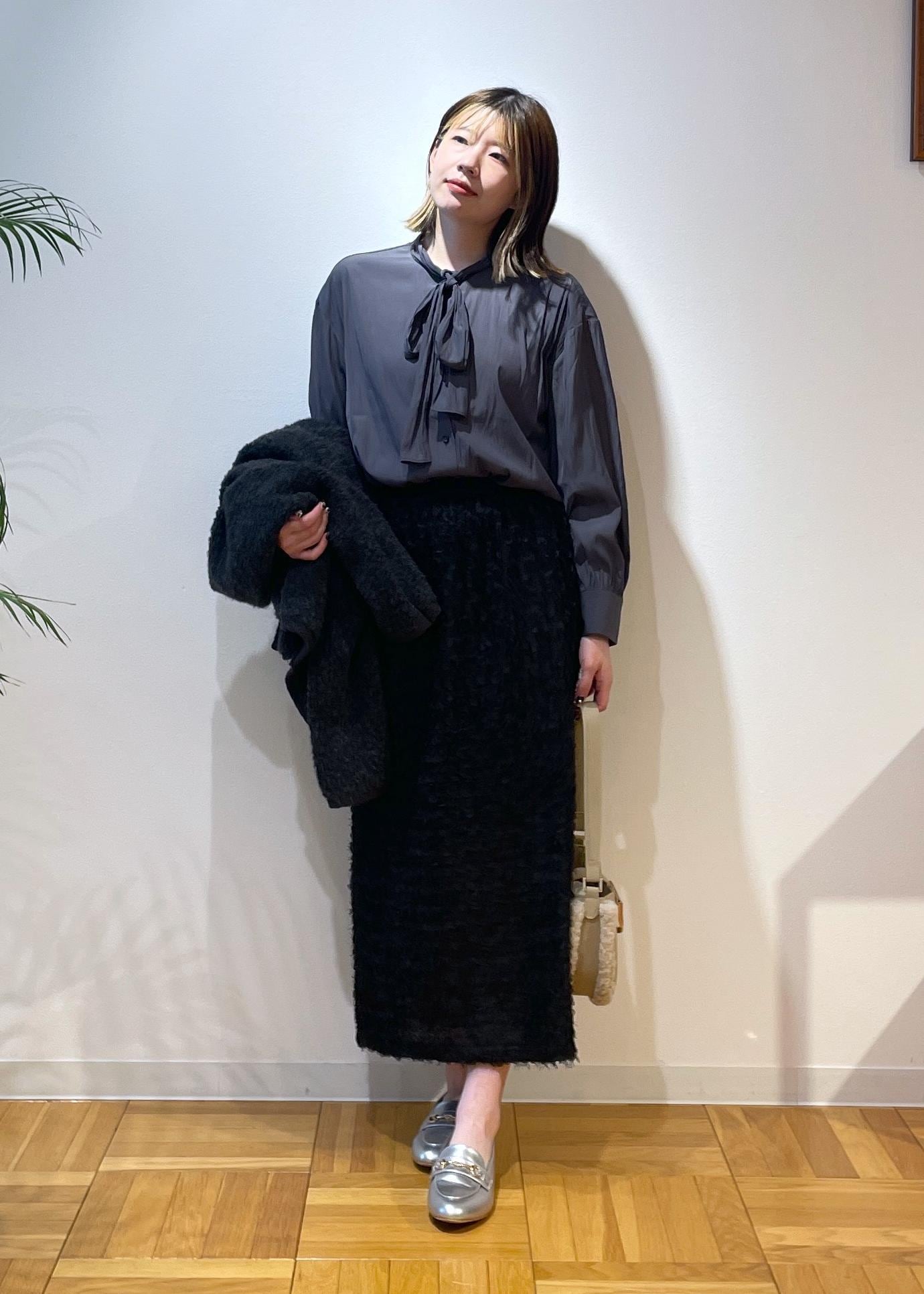 ROPÉ PICNICカッセンリボンブラウスチャコール / F¥4,499レビューハリ感のないトロンと落ちるシルエットなのでキレイめにも、カジュアルにも合わせやすいです◎